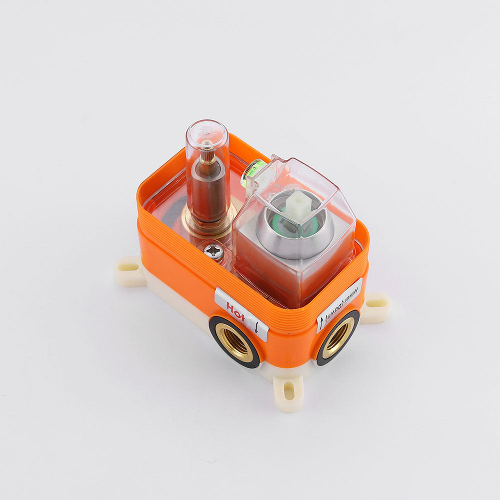 • Valve Installation with Threaded 1/2″ MIP, Plastic Protection Cover, and Installation Level and Depth Indicator