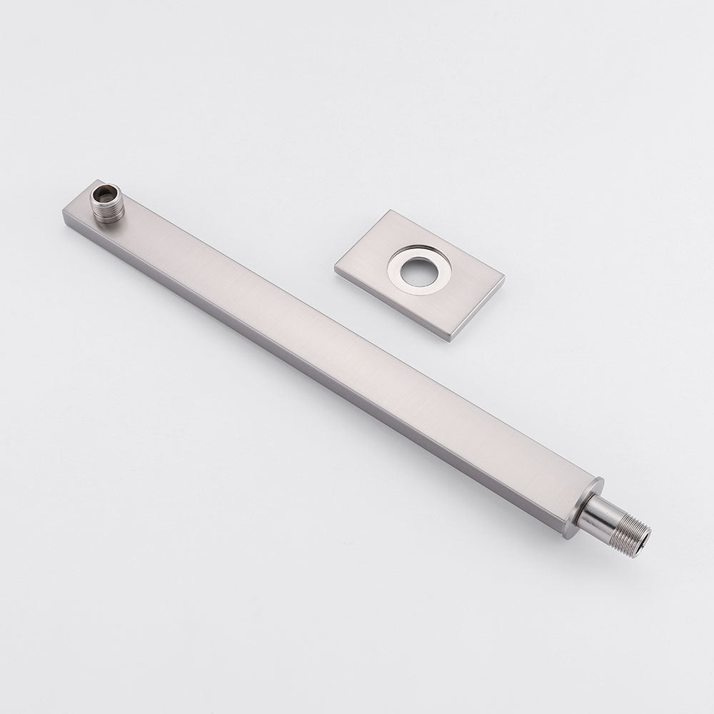 • Rectangular 17″ Long Wall Mount Shower Arm w/ Wall Cover Plate