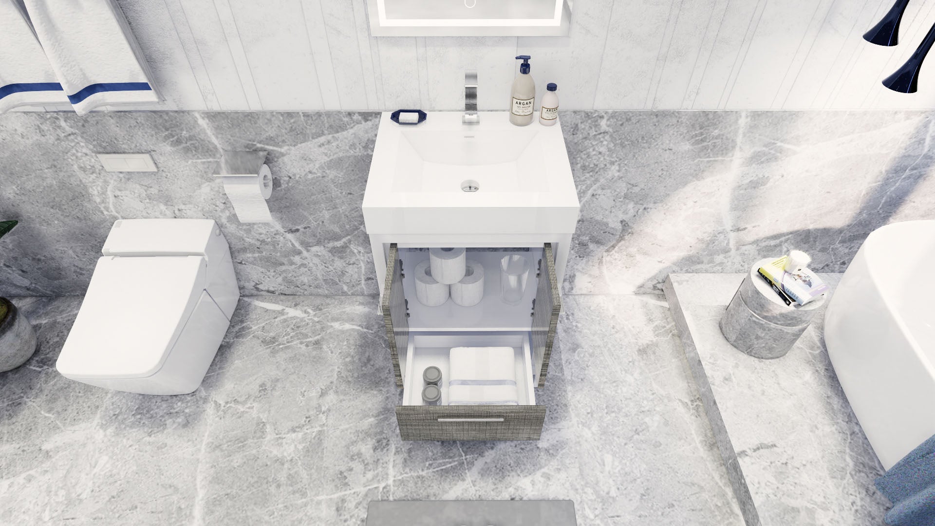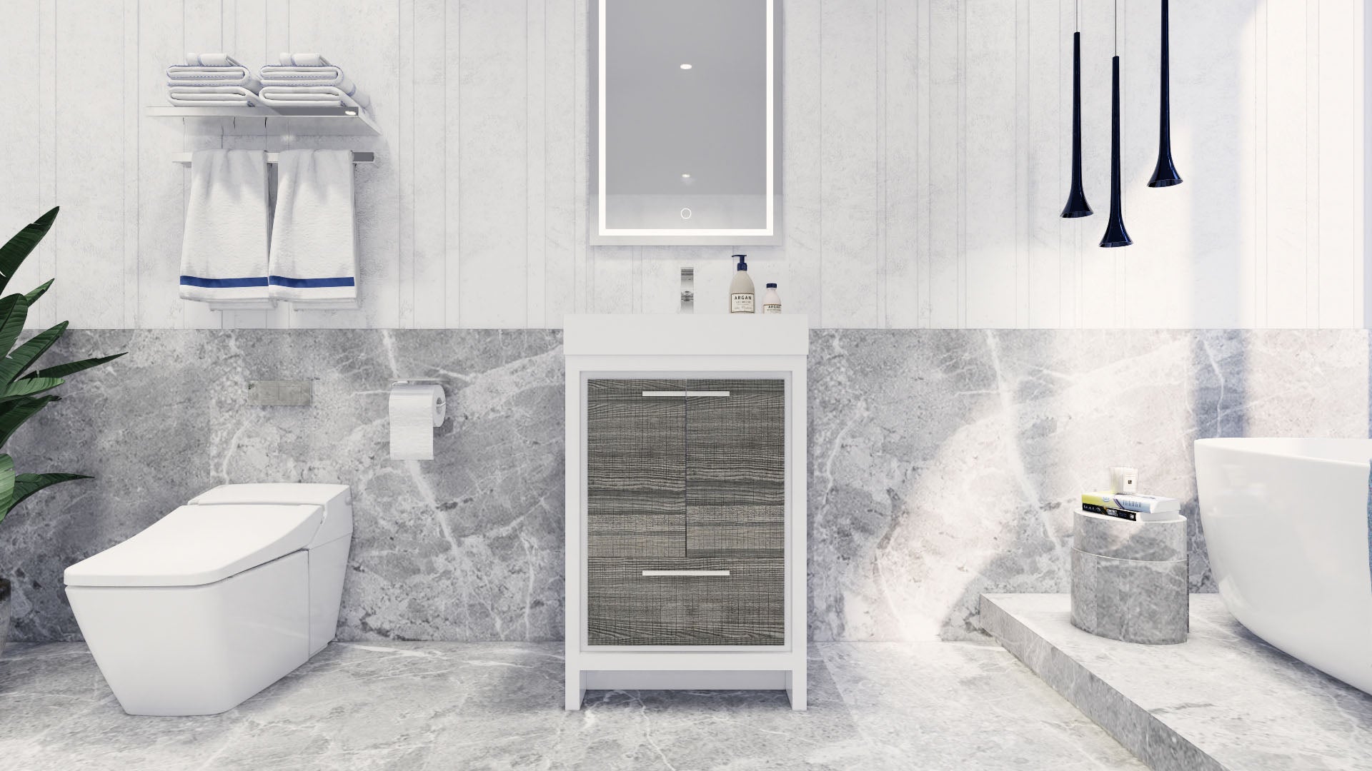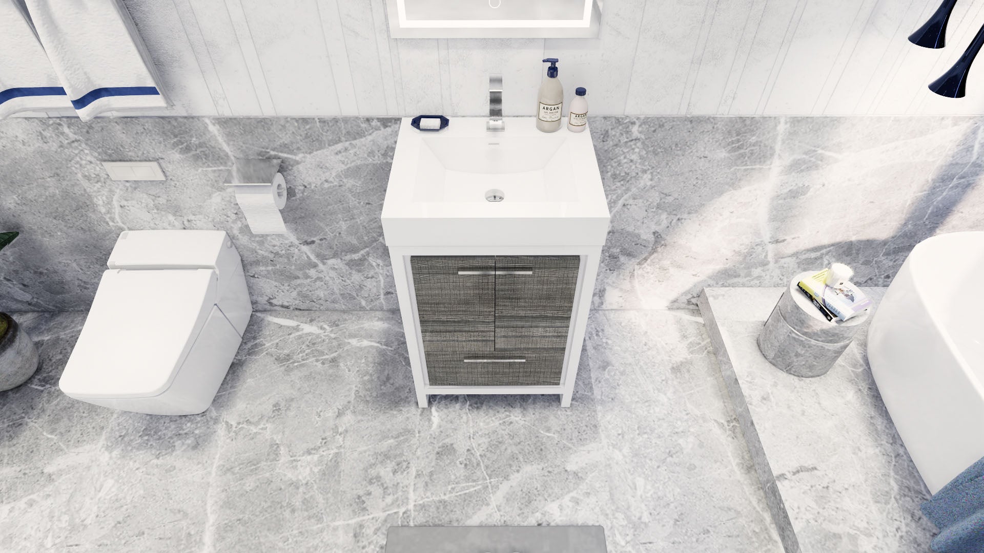 Azure 24" High Gloss Ash Gray Freestanding Vanity with Reinforced Acrylic Sink