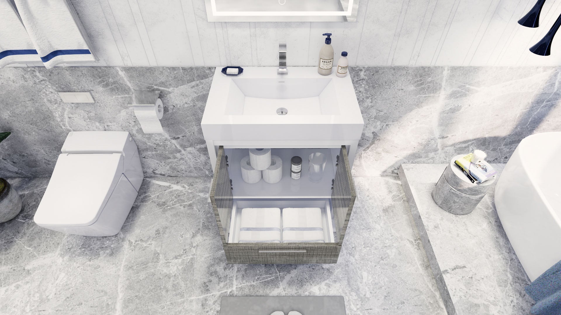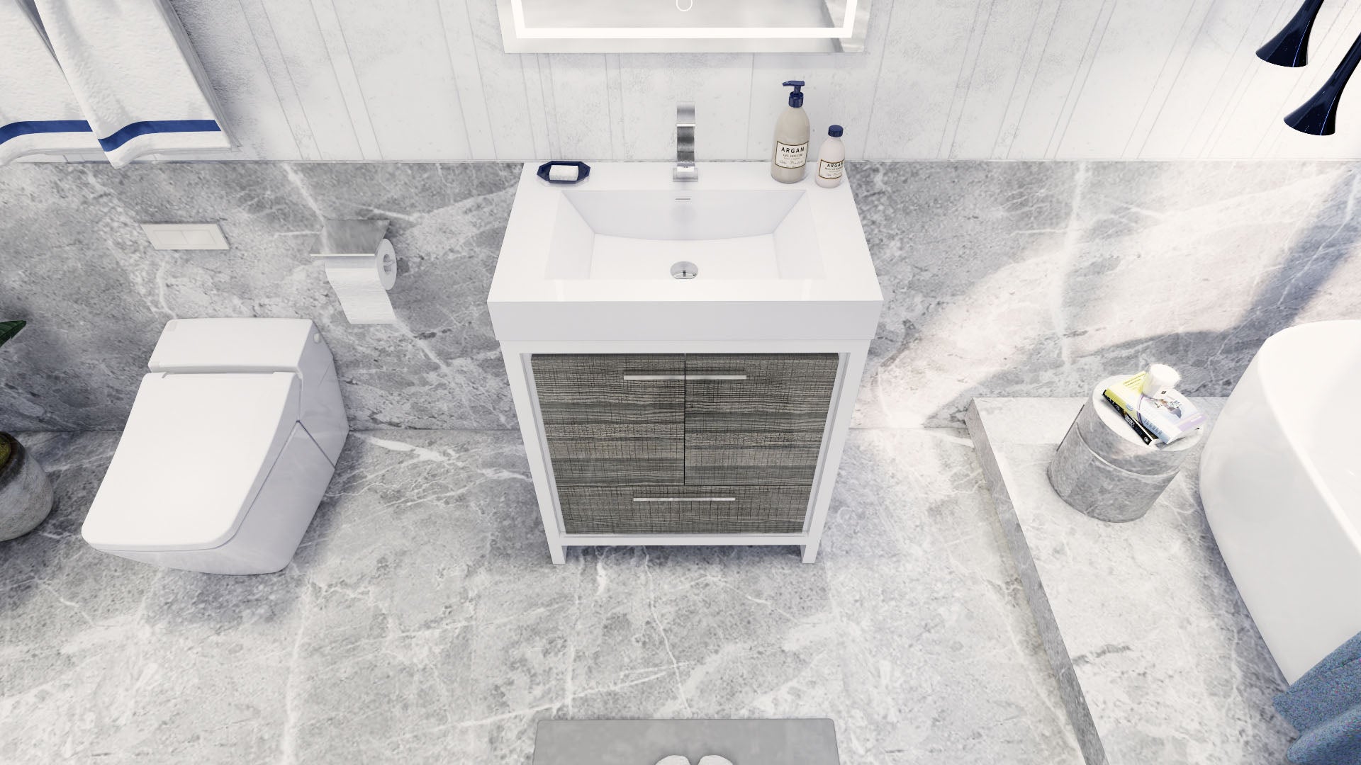 Azure 30" High Gloss Ash Gray Freestanding Vanity with Reinforced Acrylic Sink