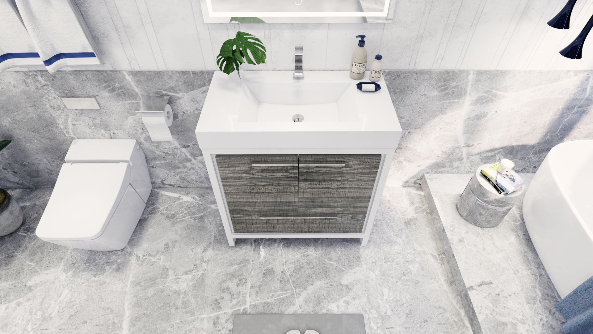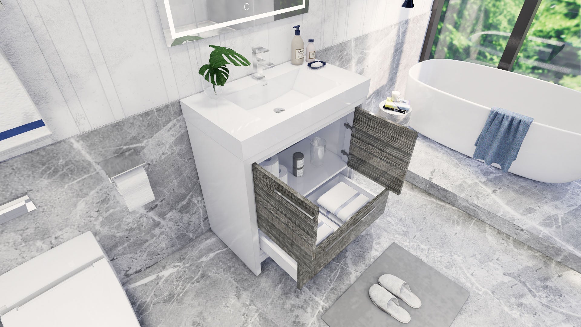 Azure 36" High Gloss Ash Gray Freestanding Vanity with Reinforced Acrylic Sink