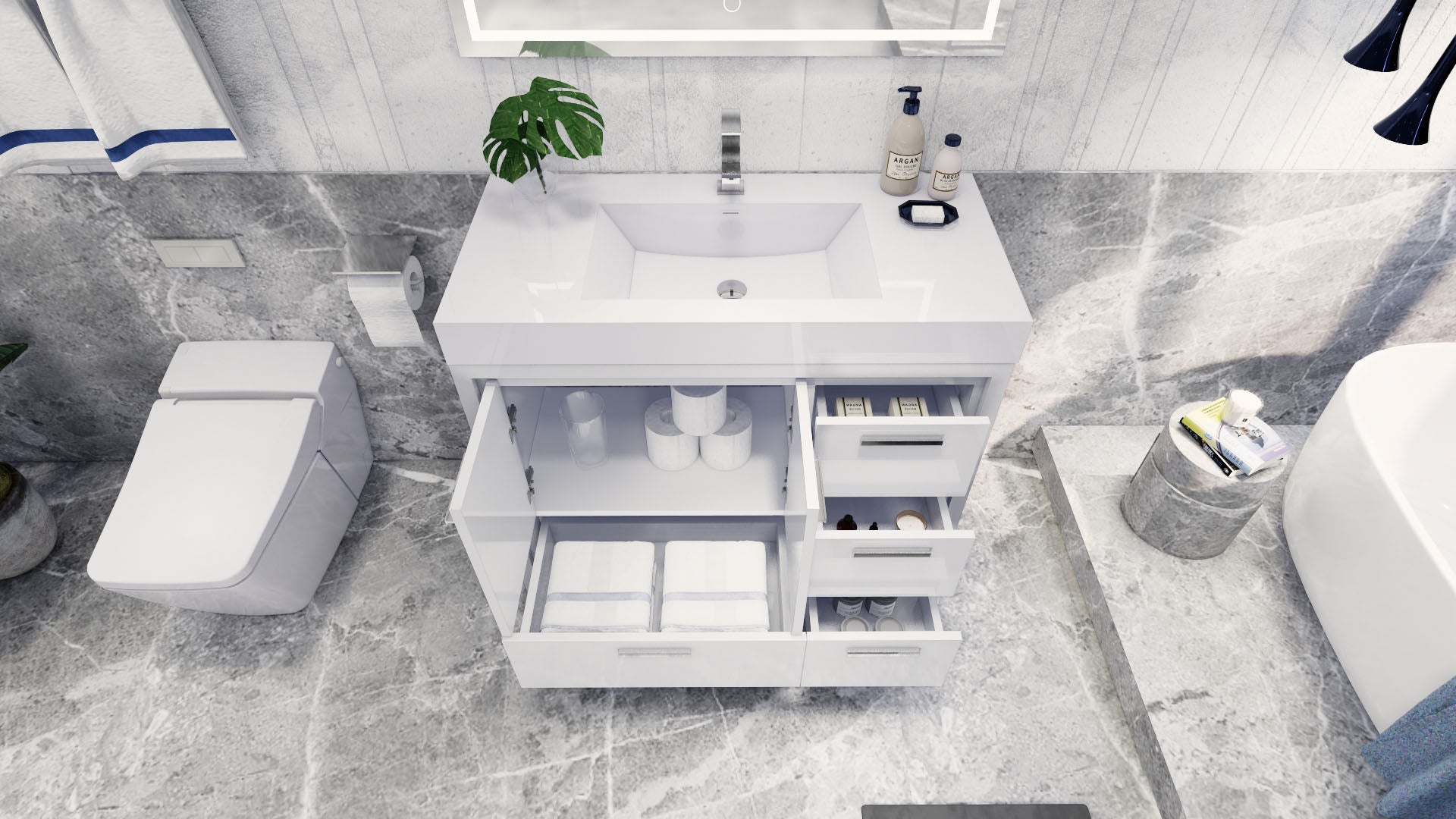 Azure 42" High Gloss White Freestanding Vanity with Reinforced Acrylic Sink (Right Side Drawers)