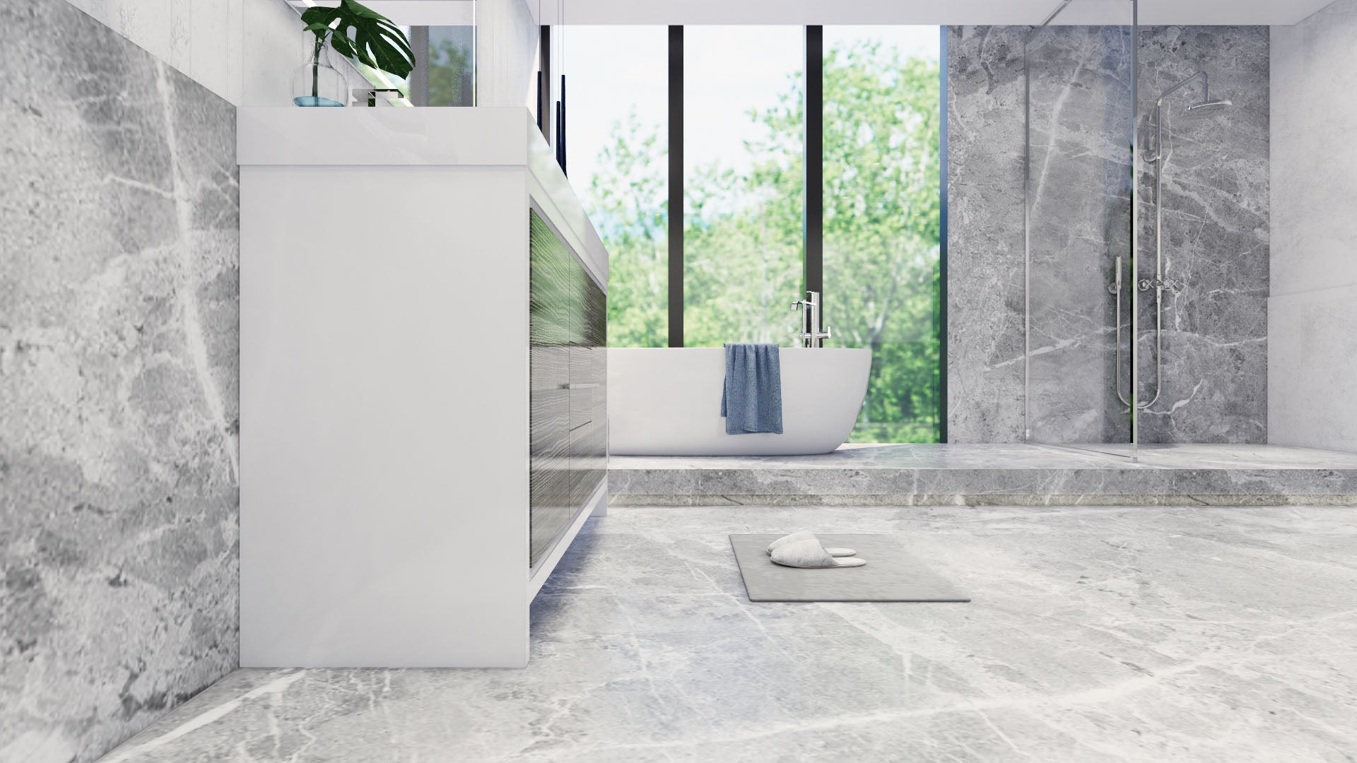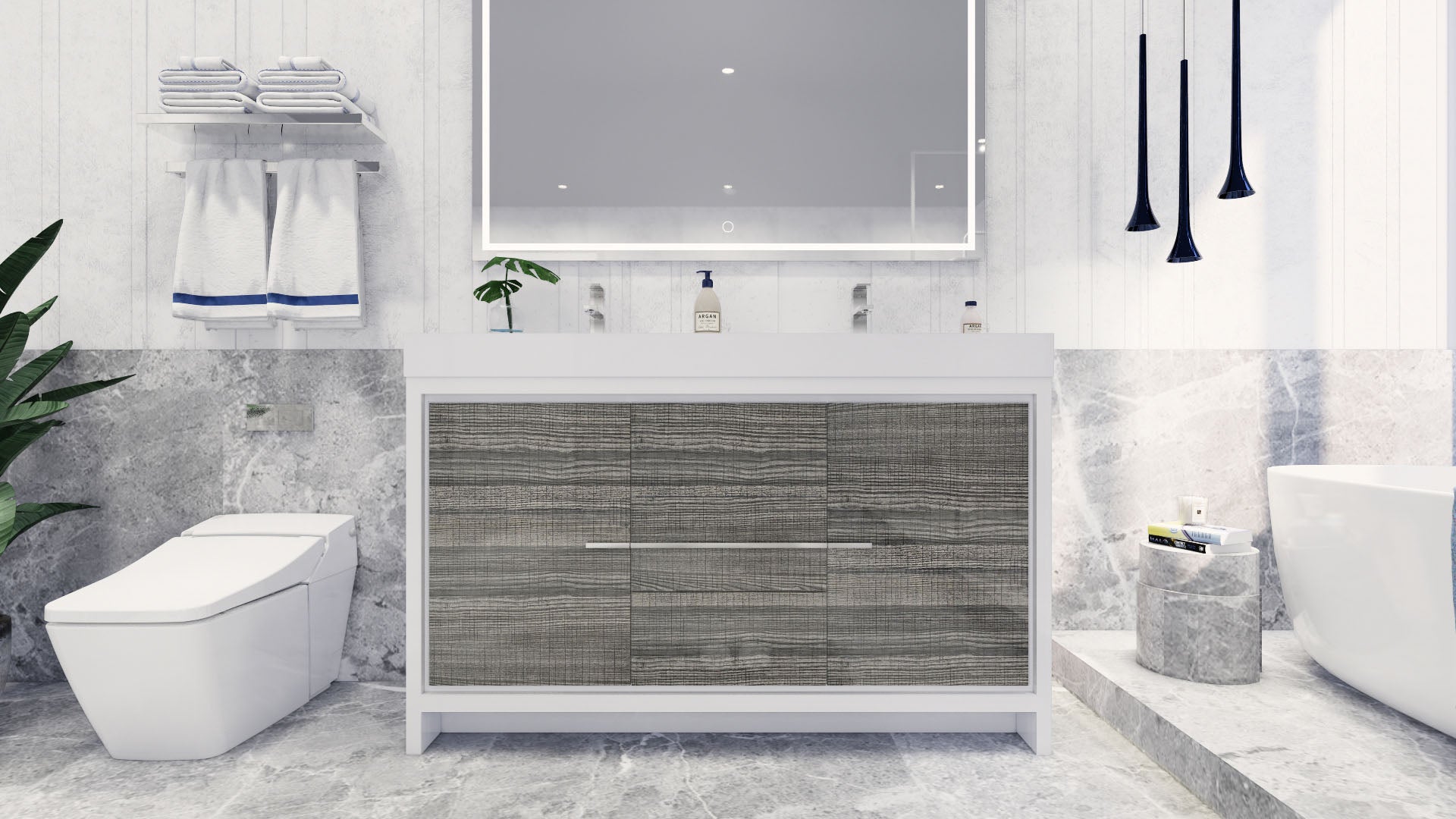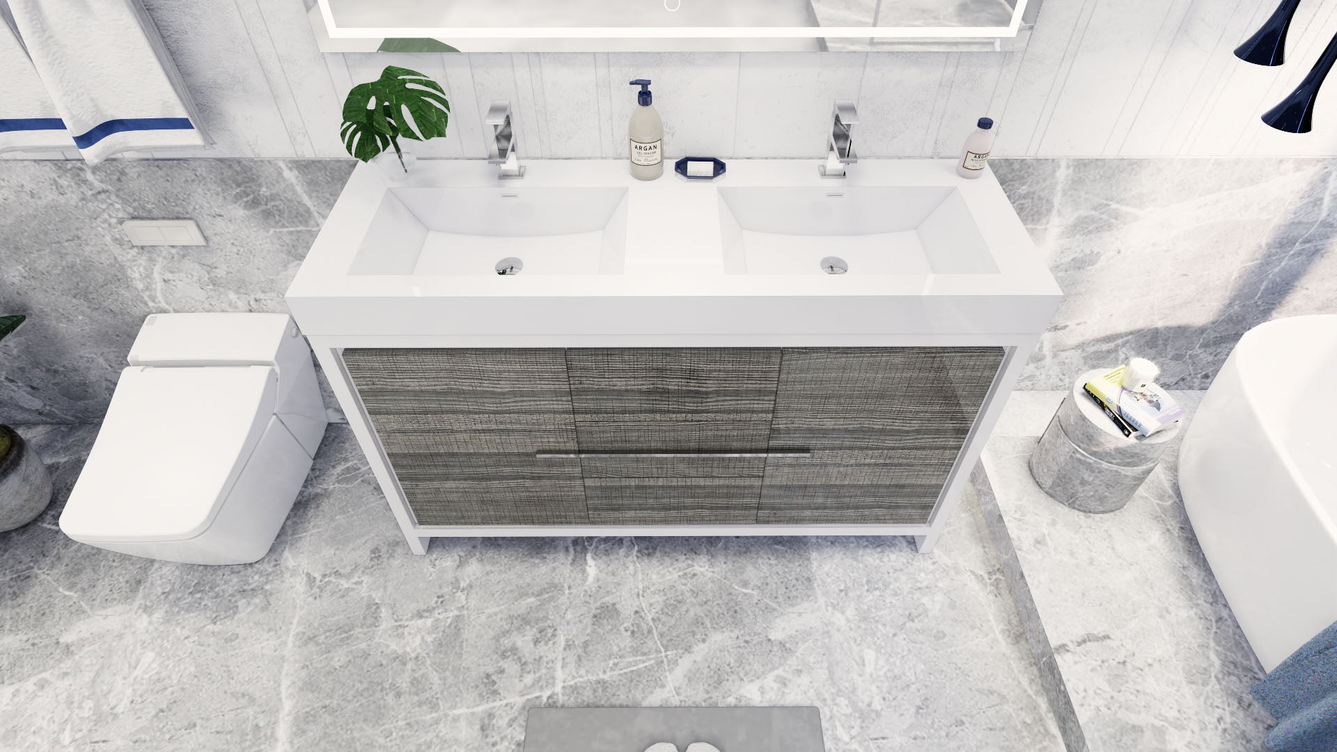 Azure 60" High Gloss Ash Gray Freestanding Vanity with Reinforced Acrylic Sinks