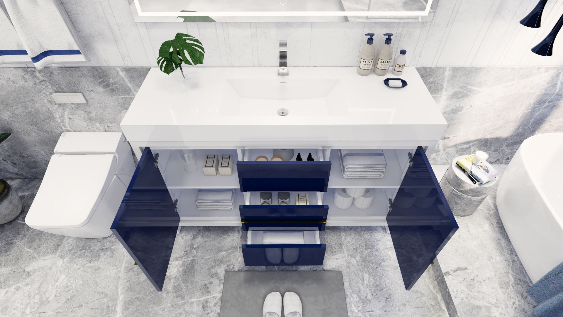 Azure 60" High Gloss Night Blue Freestanding Vanity with Reinforced Acrylic Sink