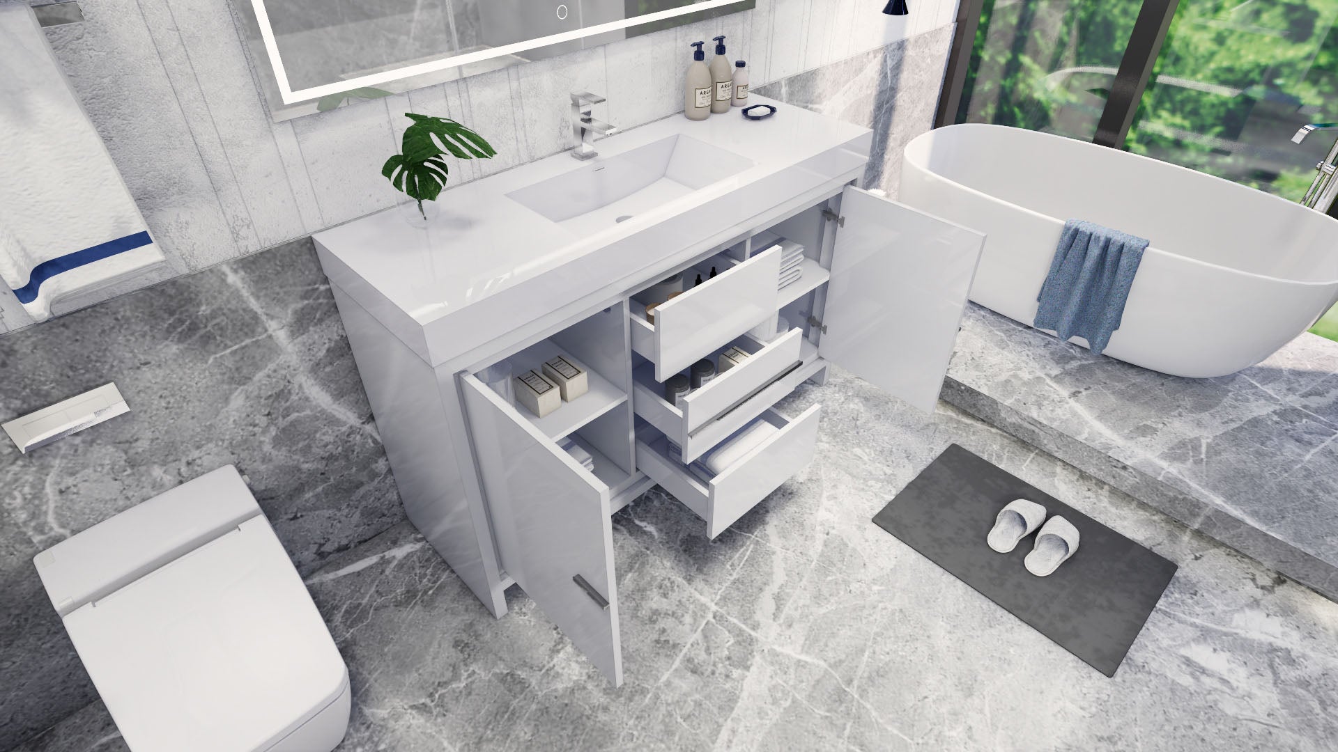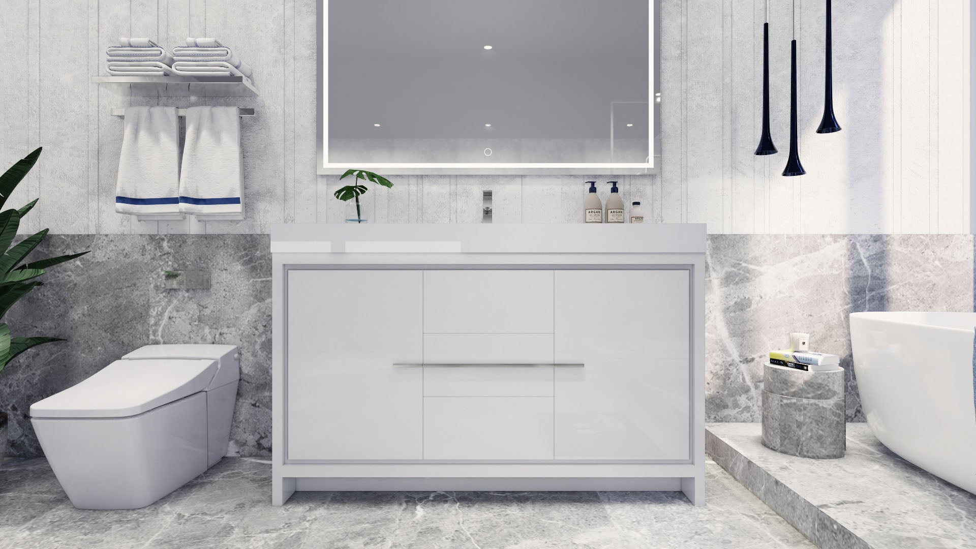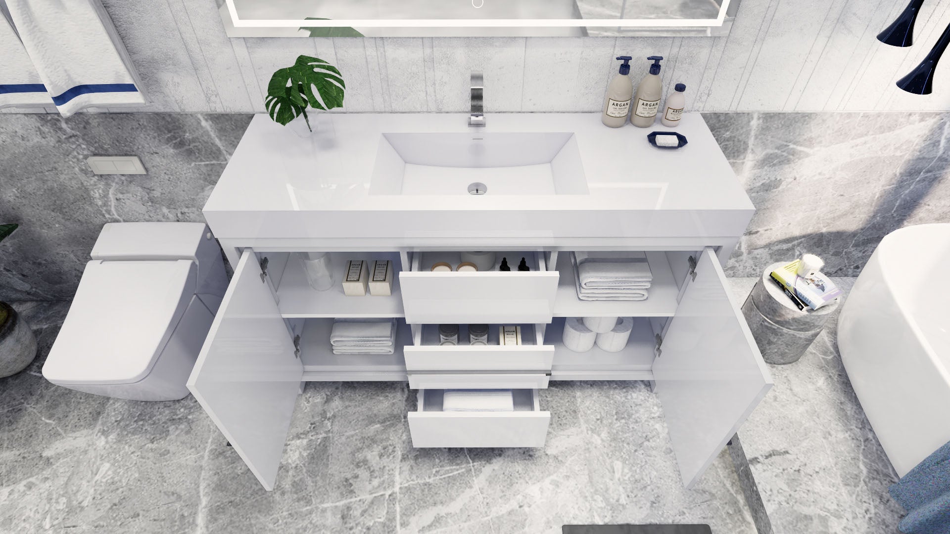 Azure 60" High Gloss White Freestanding Vanity with Reinforced Acrylic Sink