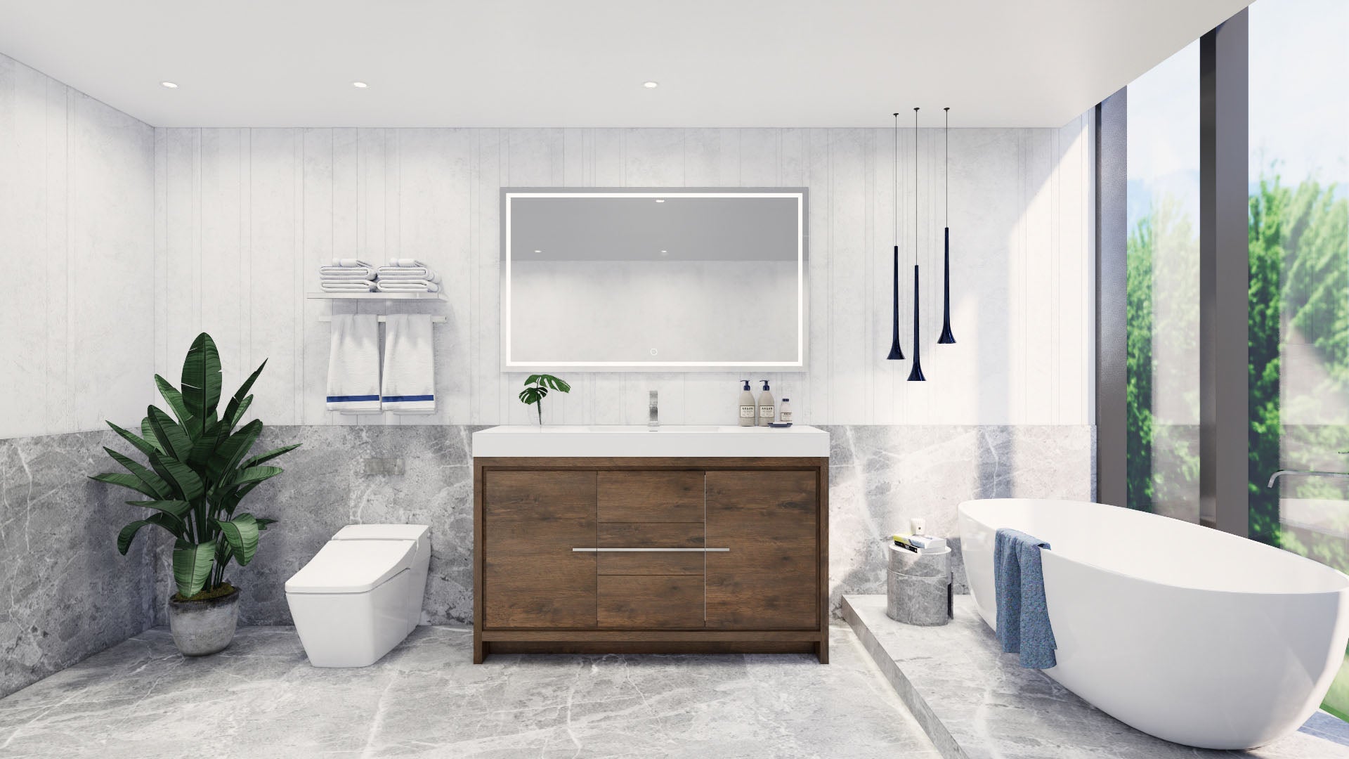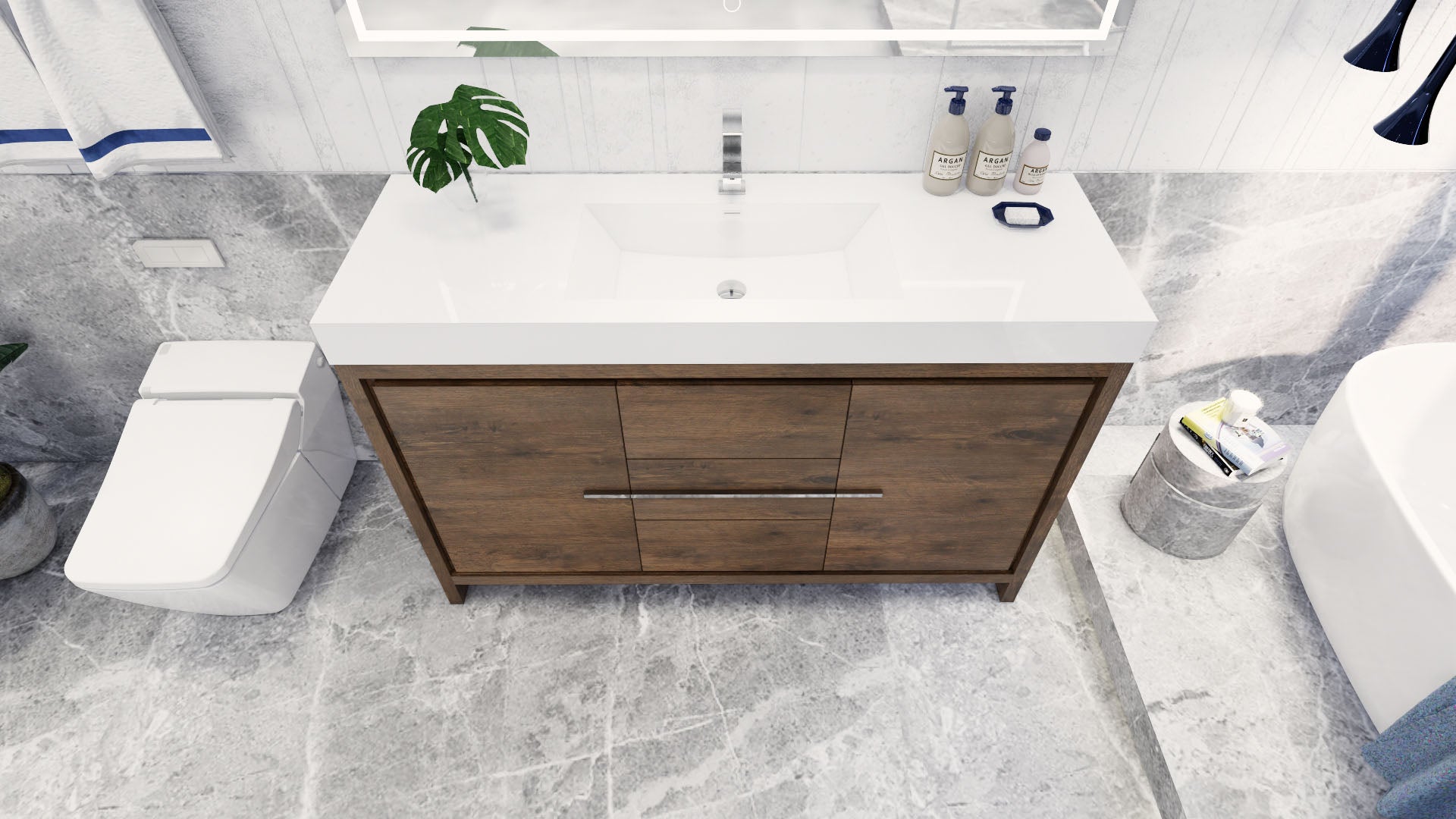 Azure 60" Rosewood Freestanding Vanity with Reinforced Acrylic Sink