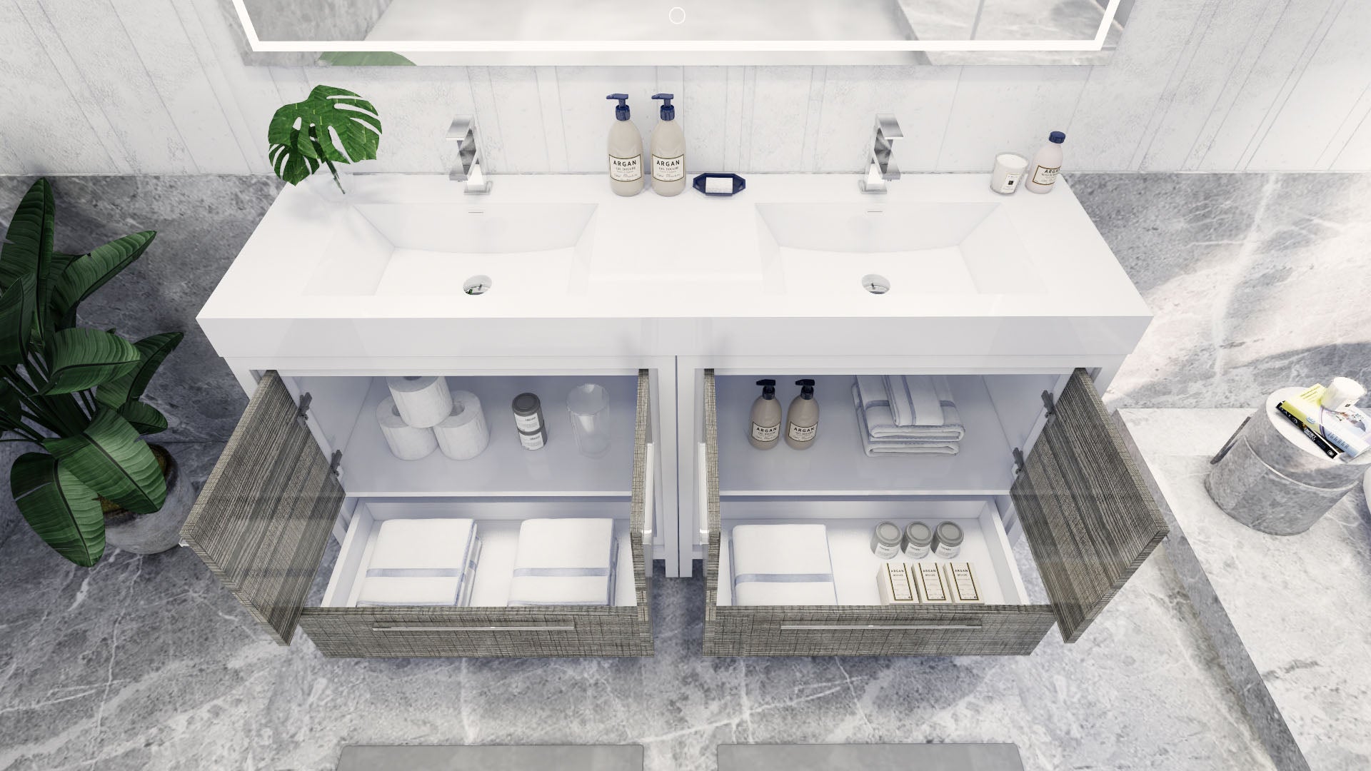 Azure 72" High Gloss Ash Gray Freestanding Vanity with Reinforced Acrylic Sinks