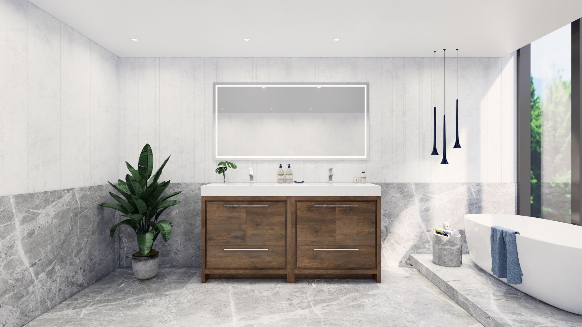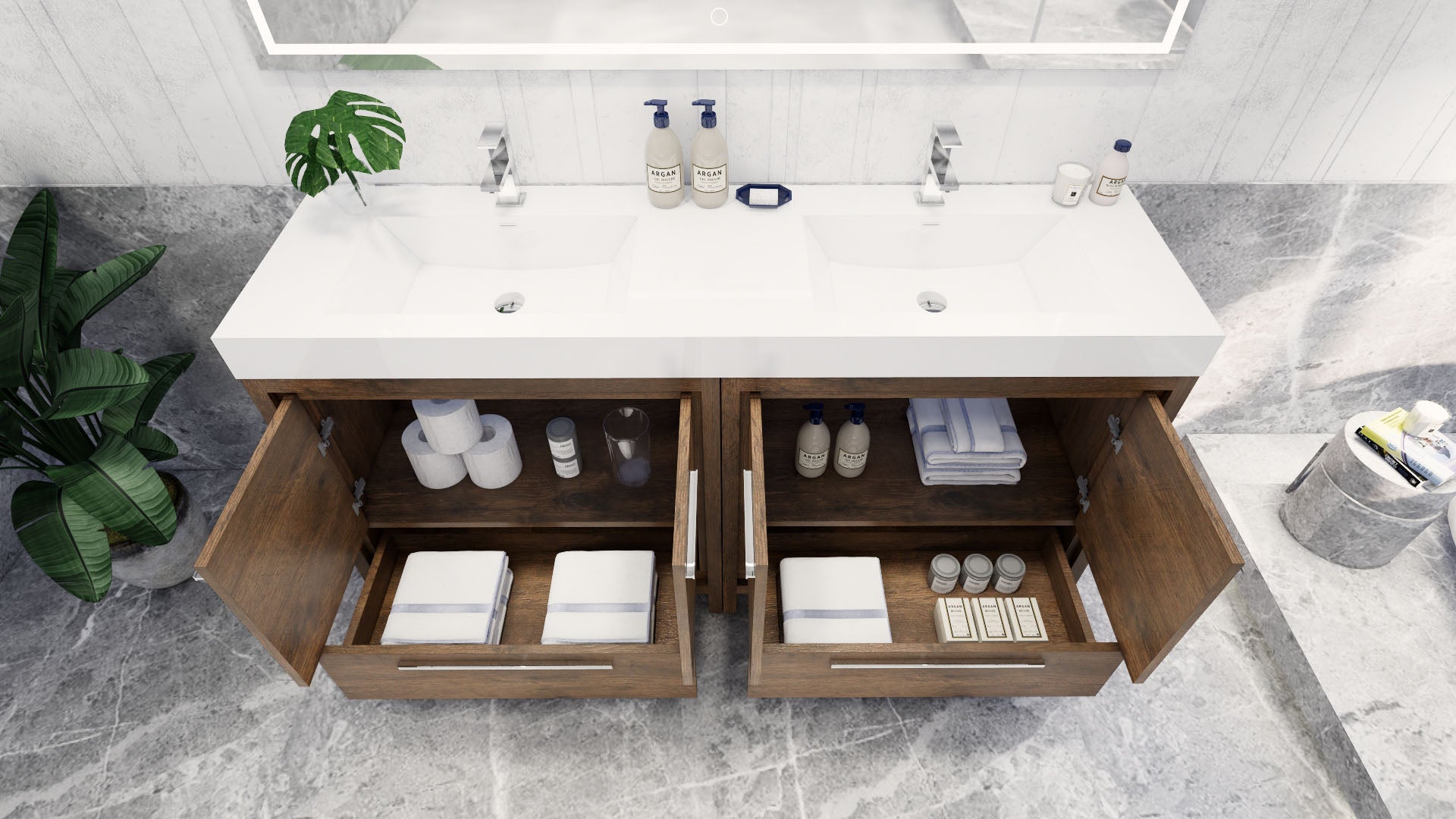 Azure 72" Rosewood Freestanding Vanity with Reinforced Acrylic Sinks