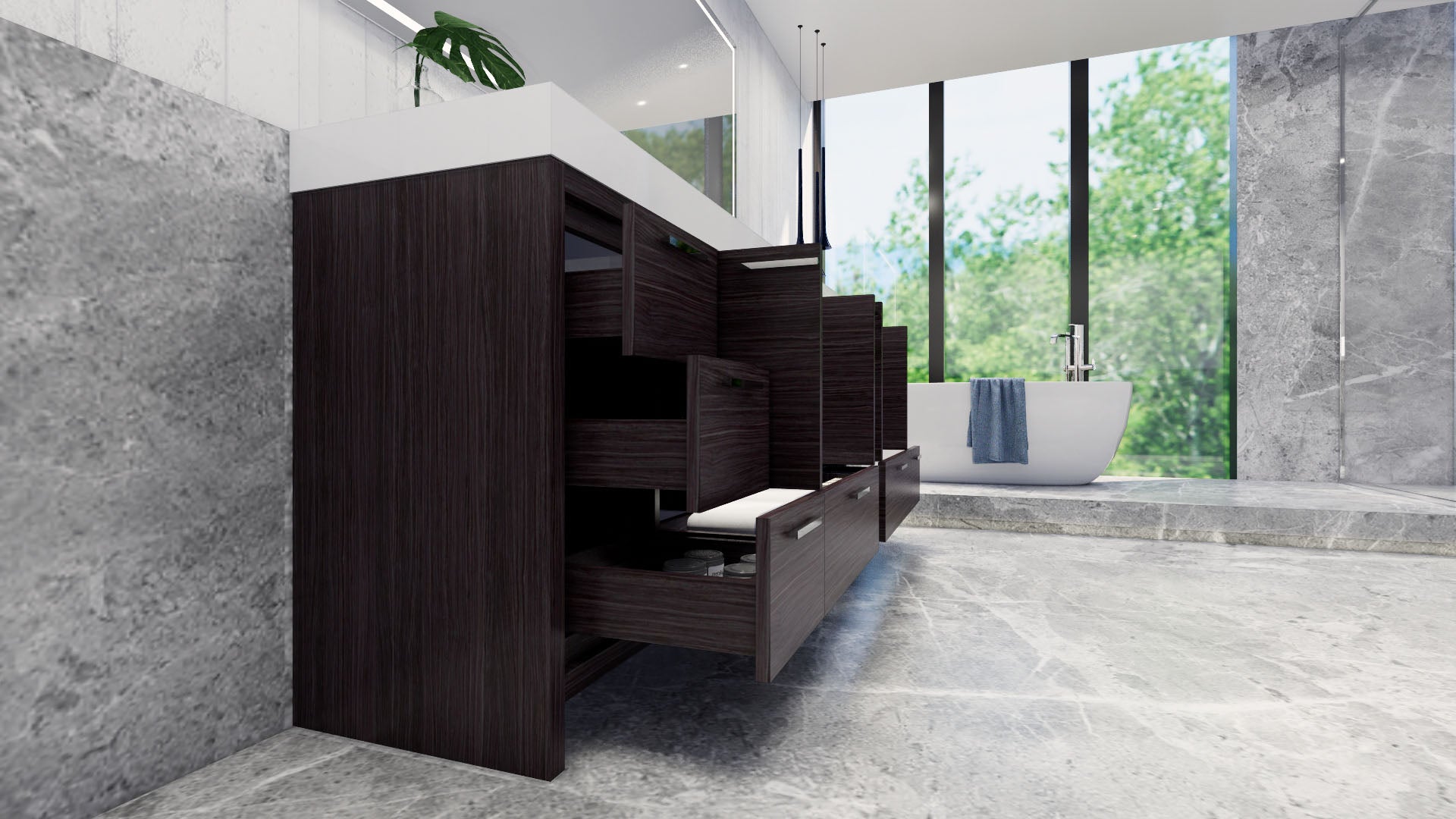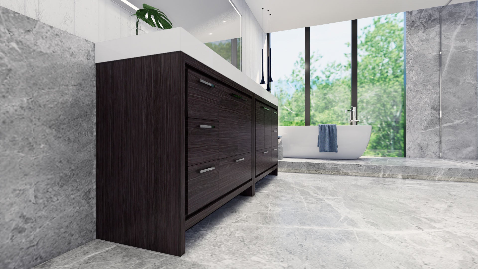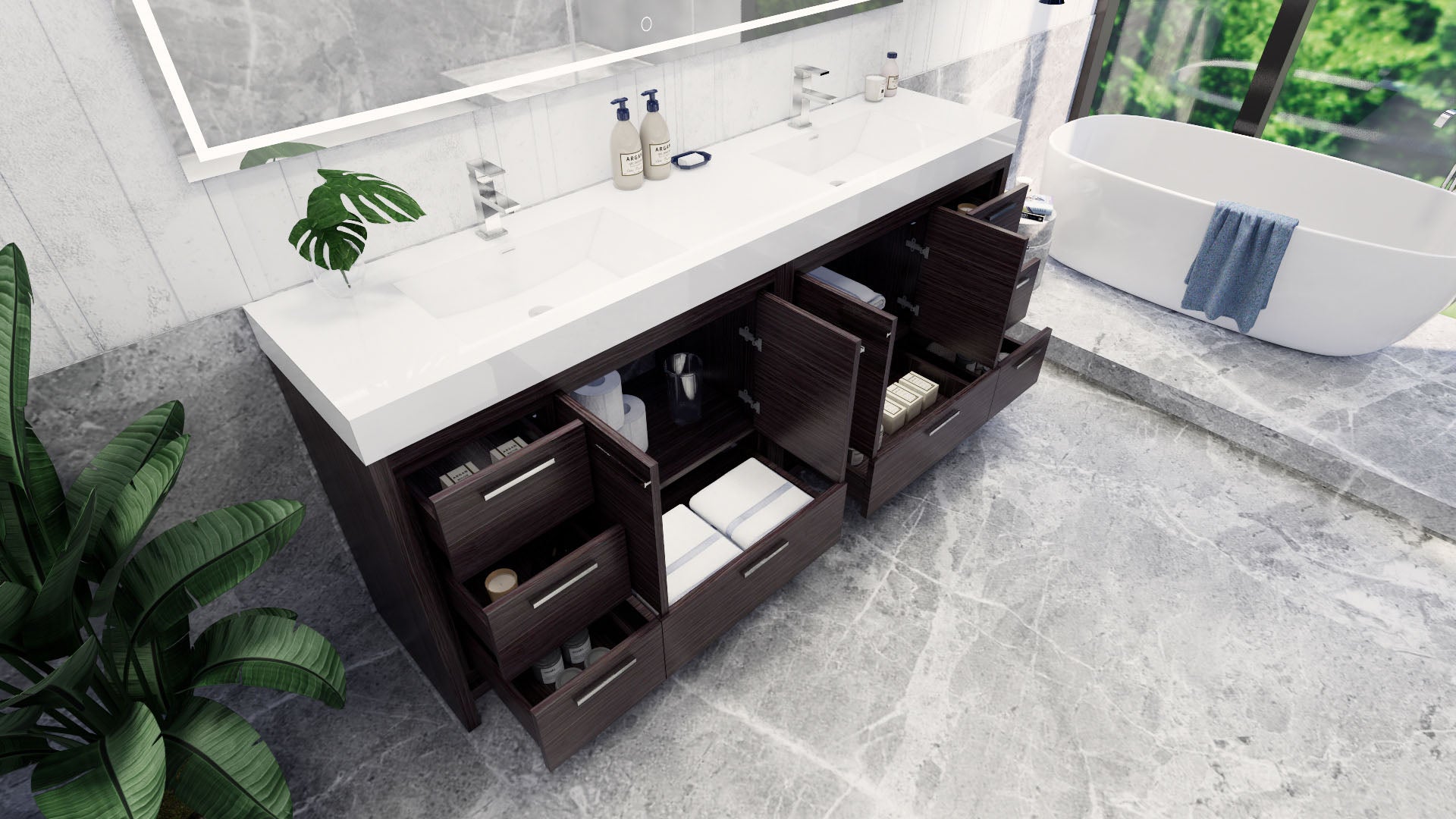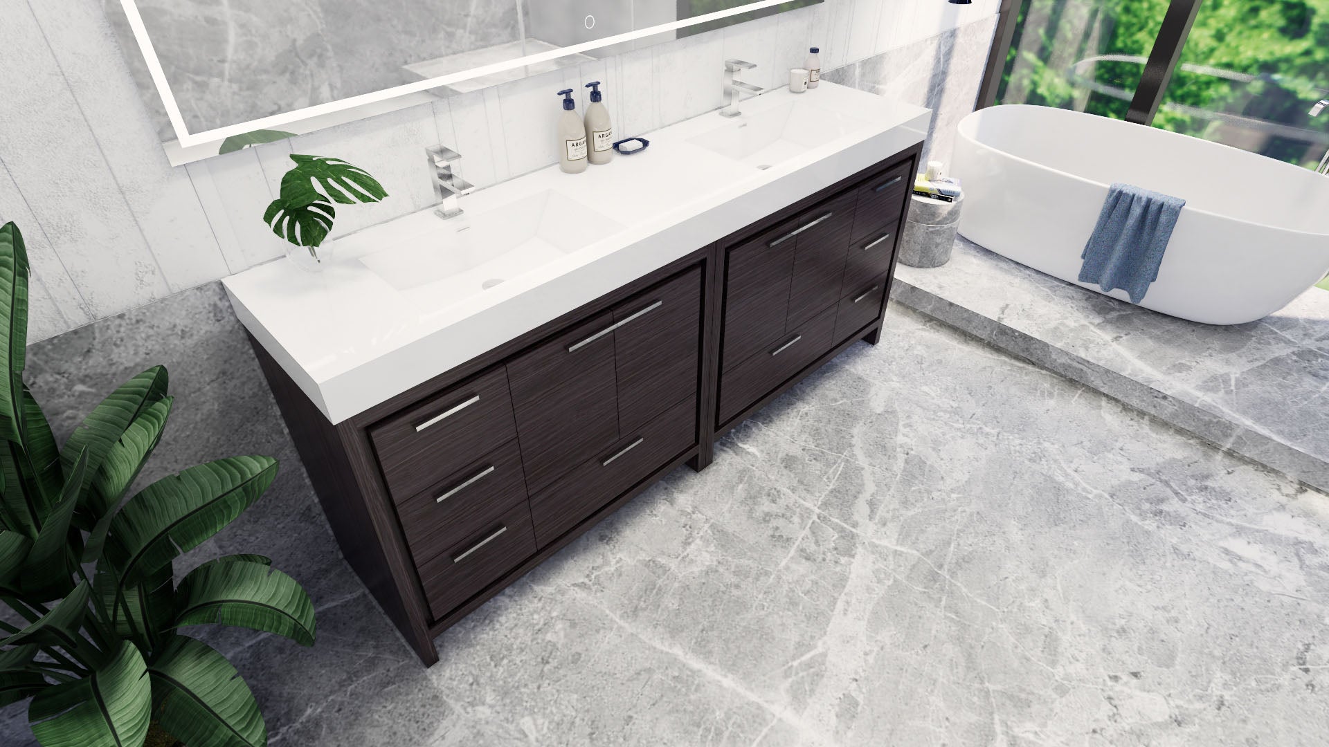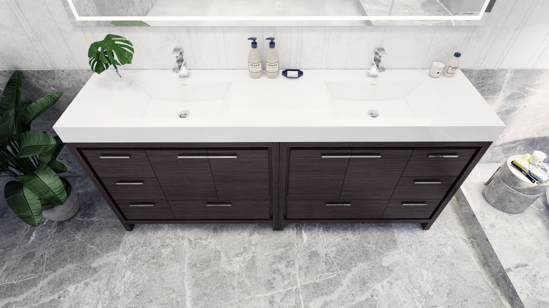 Azure 84" Dark Gray Oak Freestanding Vanity with Reinforced Acrylic Sinks