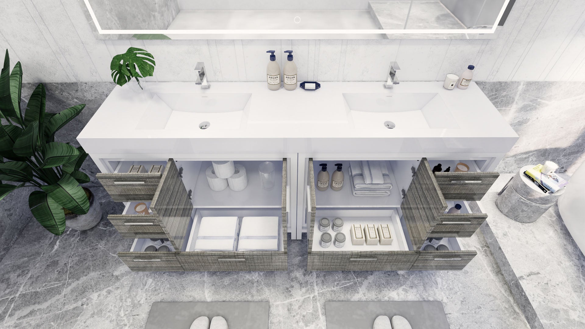 Azure 84" High Gloss Ash Gray Freestanding Vanity with Reinforced Acrylic Sinks