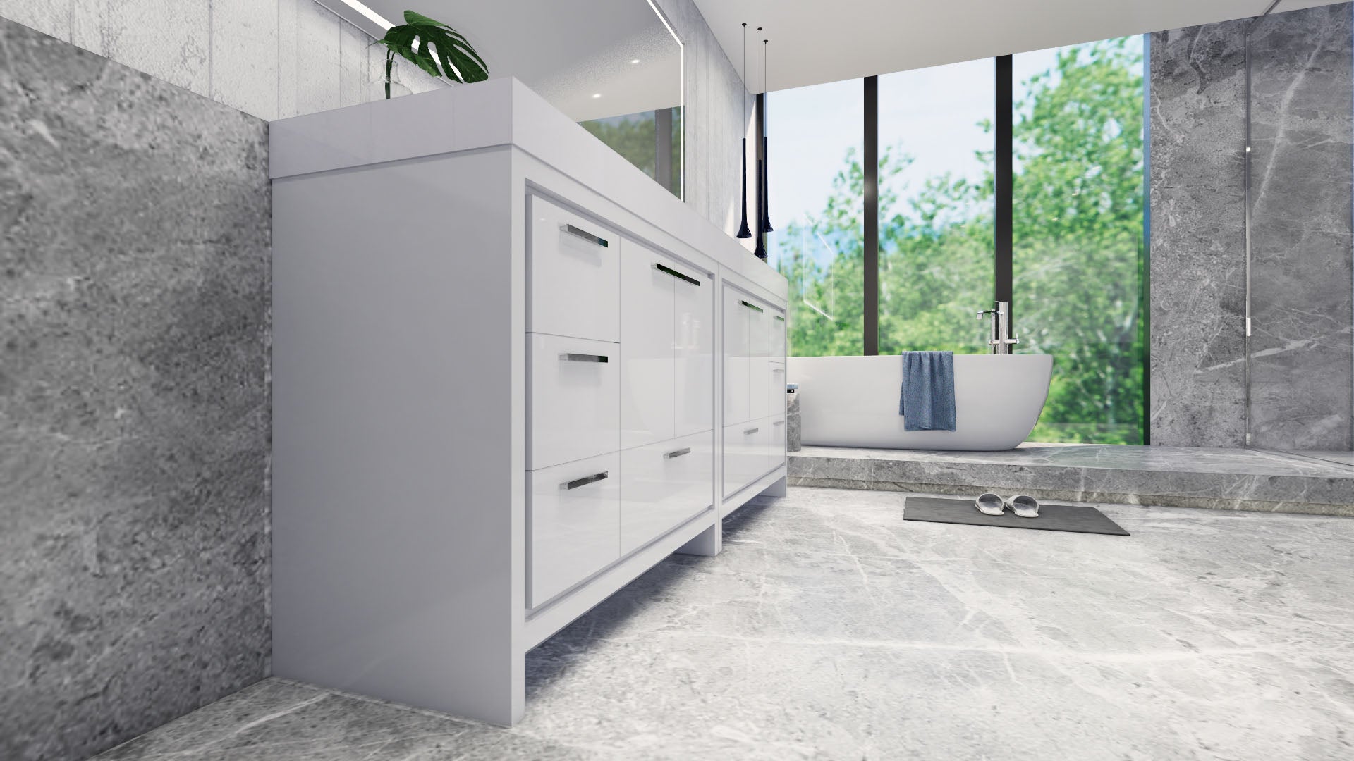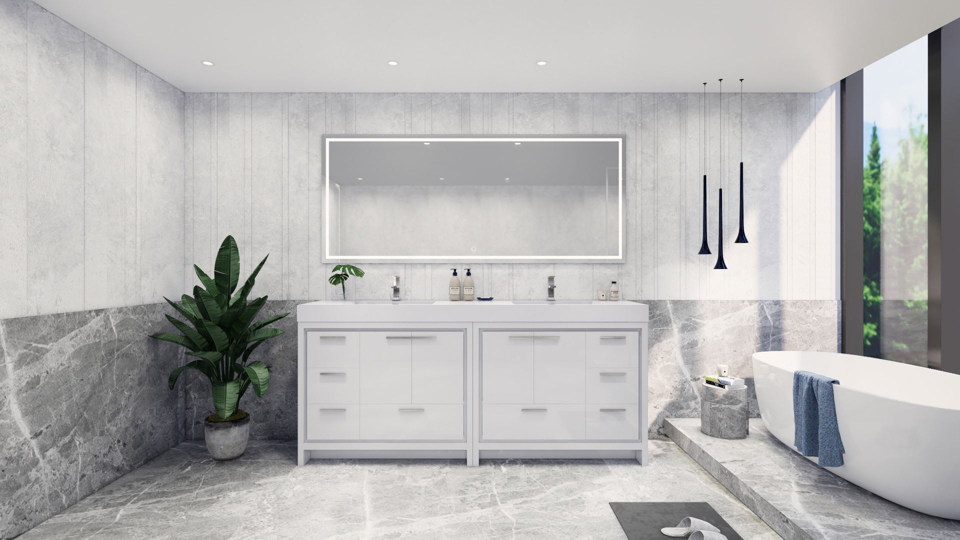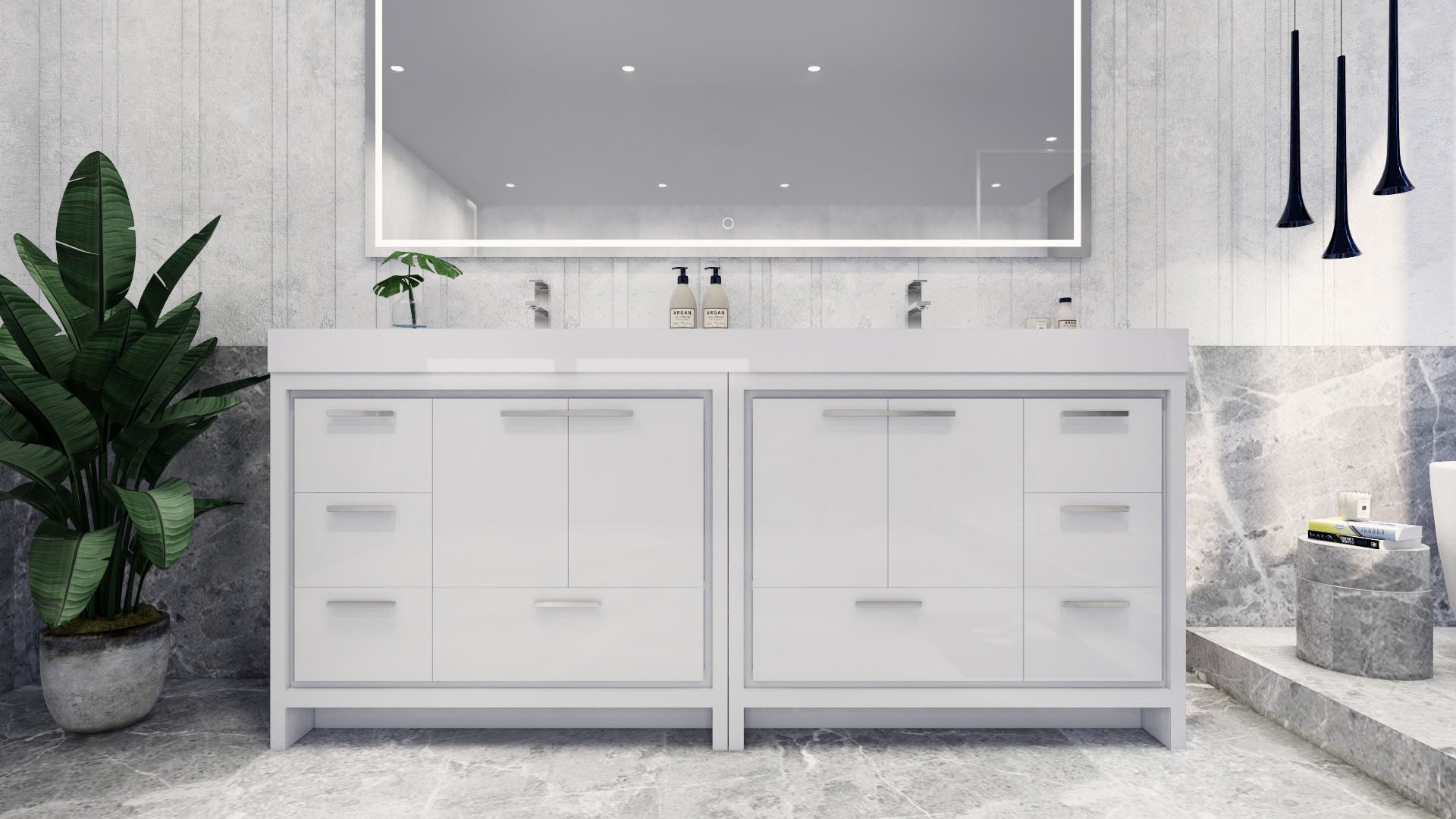 Azure 84" High Gloss White Freestanding Vanity with Reinforced Acrylic Sinks