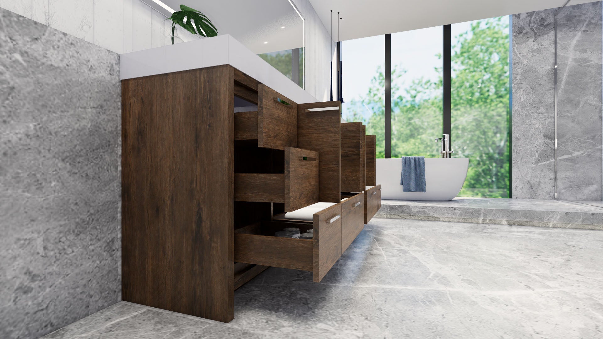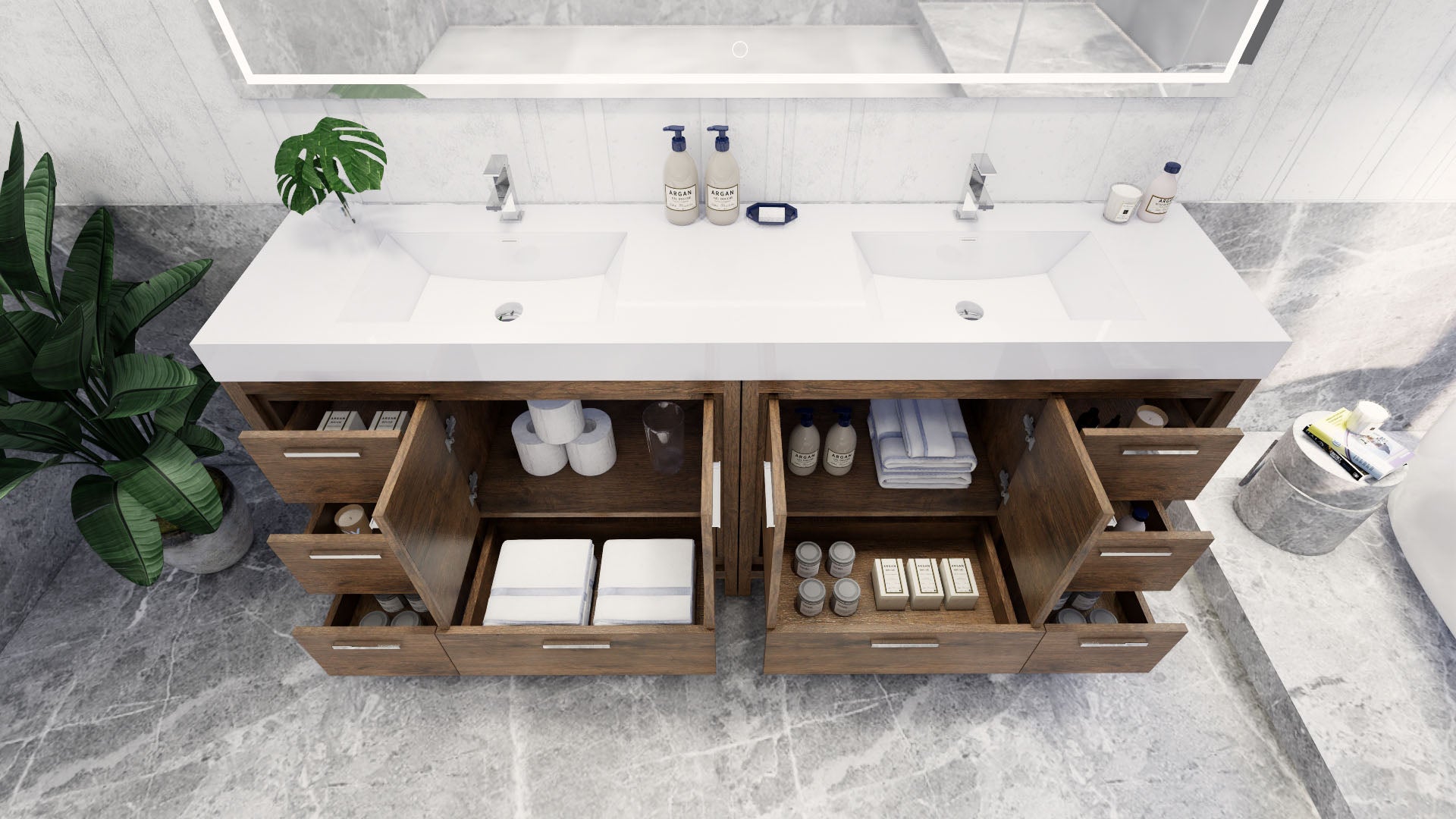 Azure 84" Rosewood Freestanding Vanity with Reinforced Acrylic Sinks