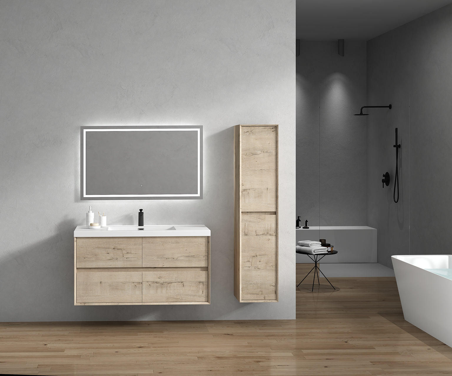 Kingdee 48" Light Oak Wall Mounted Vanity with Reinforced Acrylic Sink