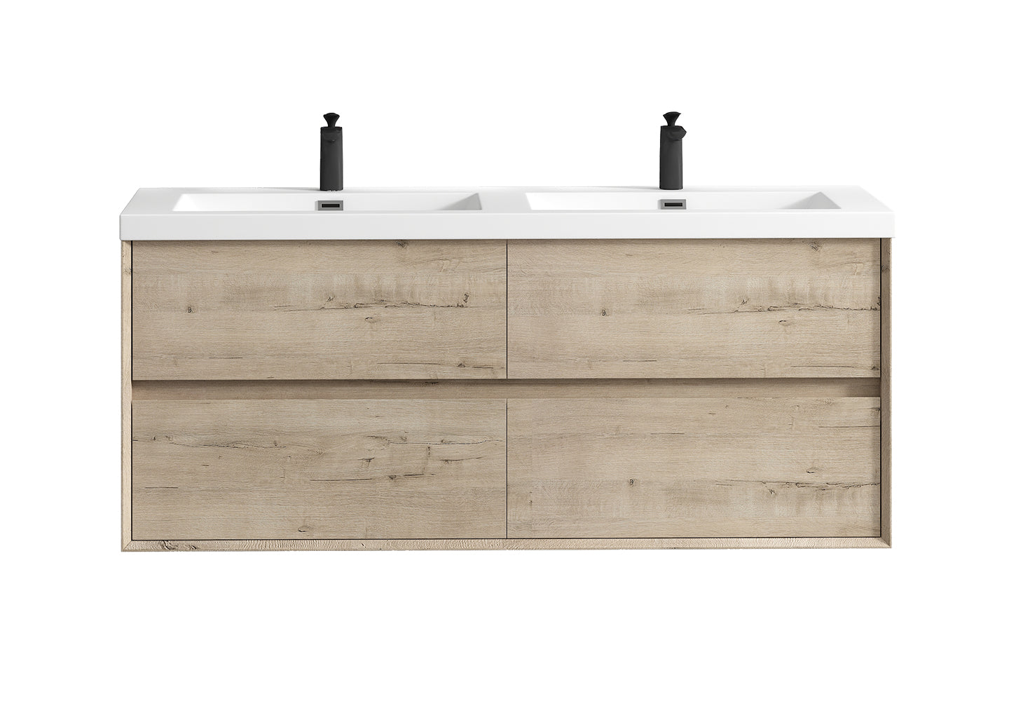 Kingdee 60" Light Oak Wall Mounted Vanity with Reinforced Acrylic Double Sinks