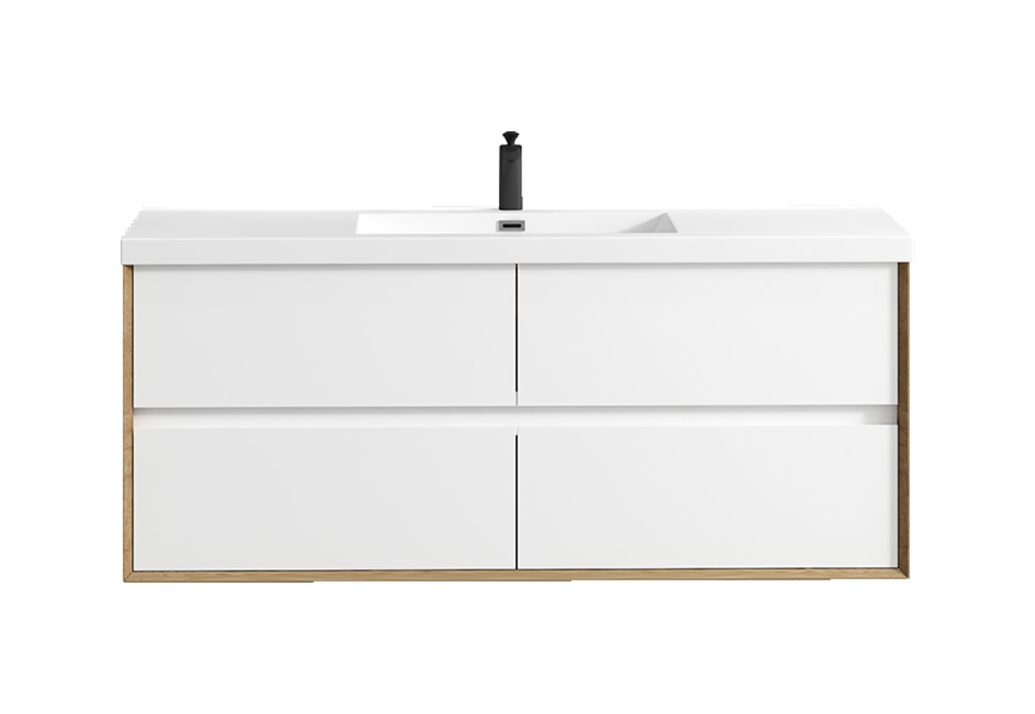 Kingdee 60" Glossy White Wall Mounted Vanity with Reinforced Acrylic Single Sink