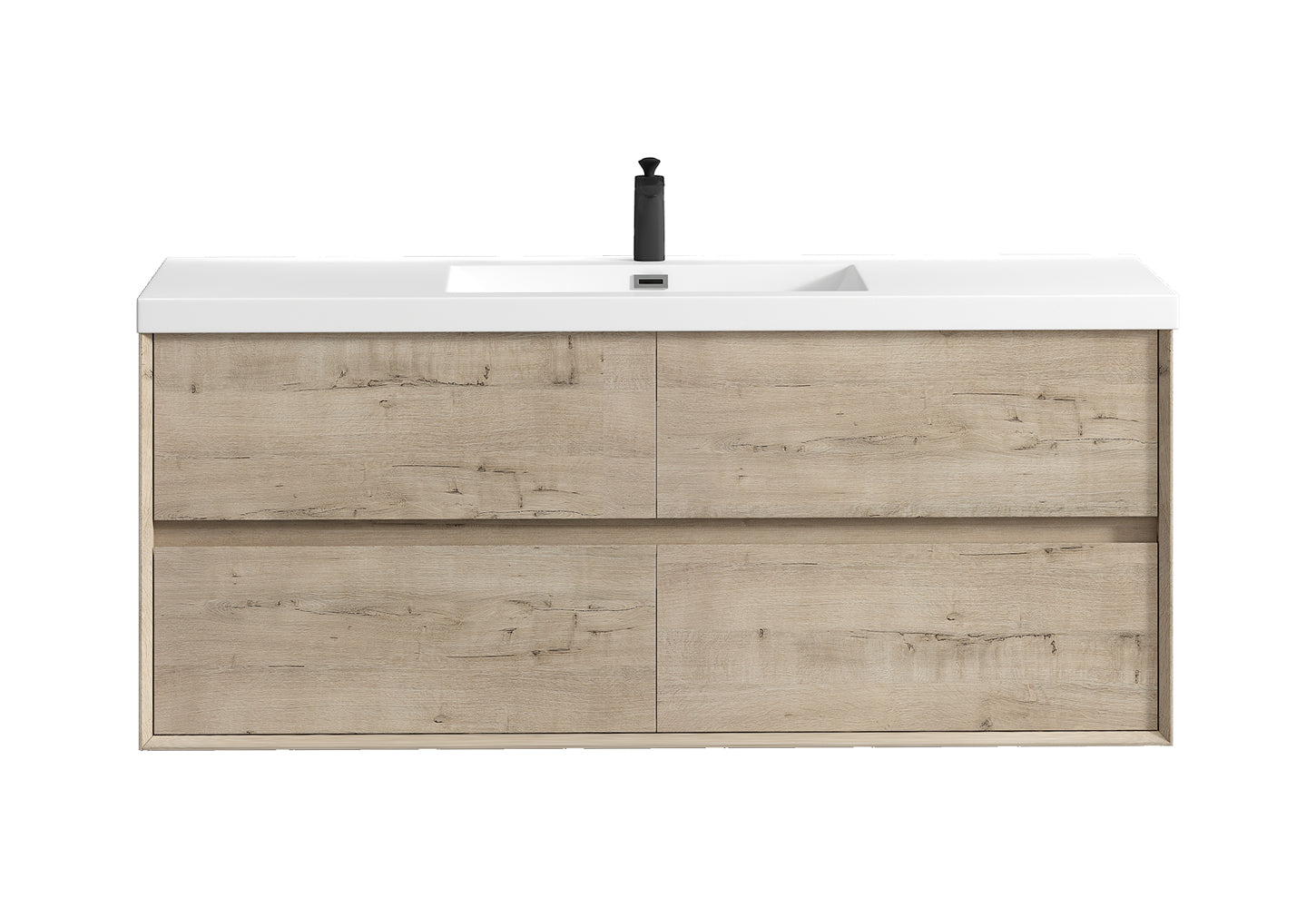 Kingdee 60" Light Oak Wall Mounted Vanity with Reinforced Acrylic Single Sink