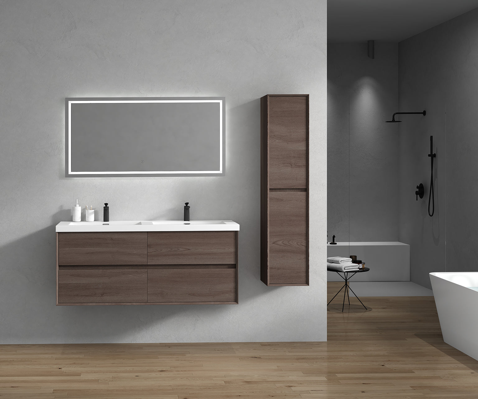 Kingdee 60" Red Oak Wall Mounted Vanity with Reinforced Acrylic Double Sinks