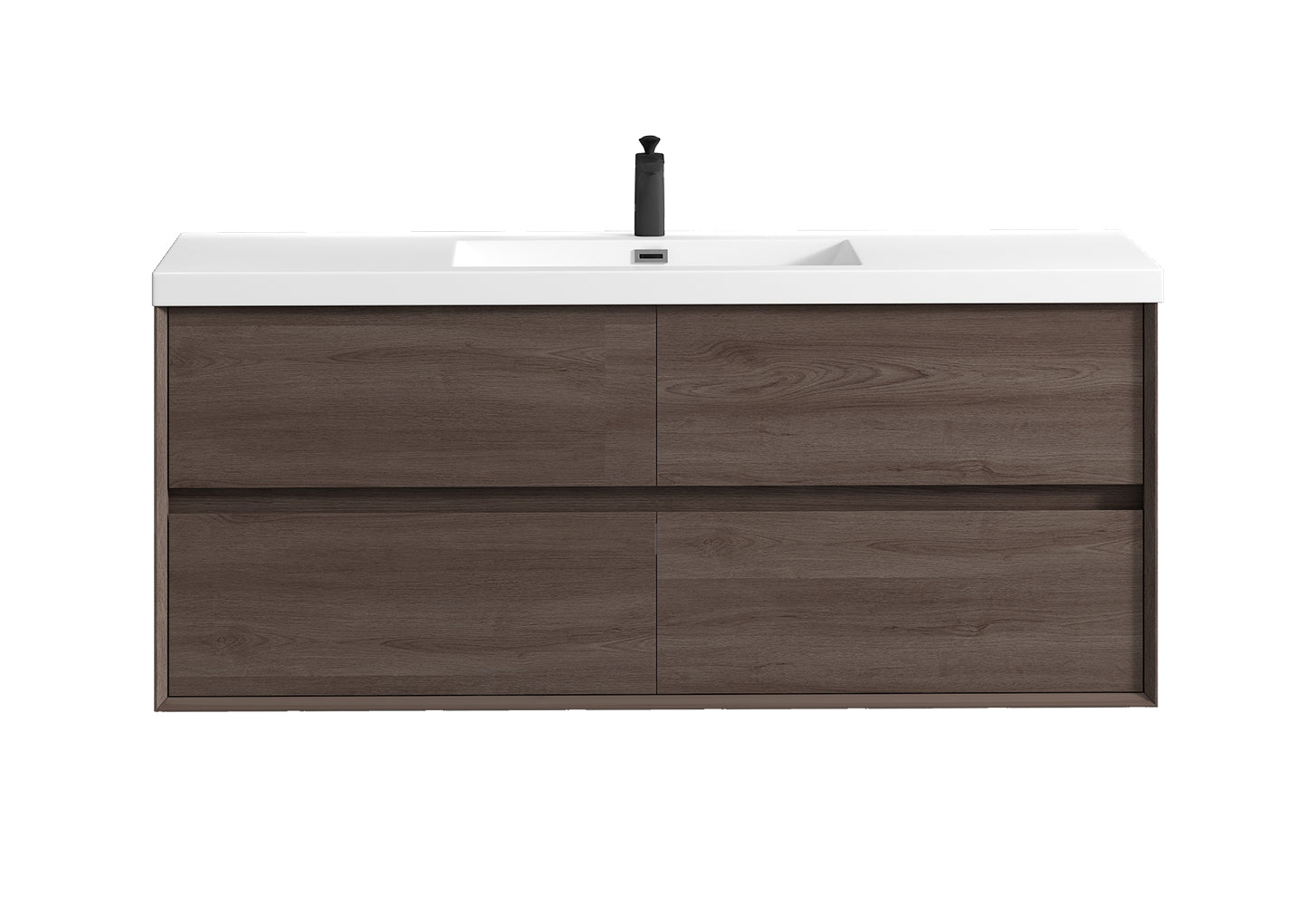 Kingdee 60" Red Oak Wall Mounted Vanity with Reinforced Acrylic Single Sink