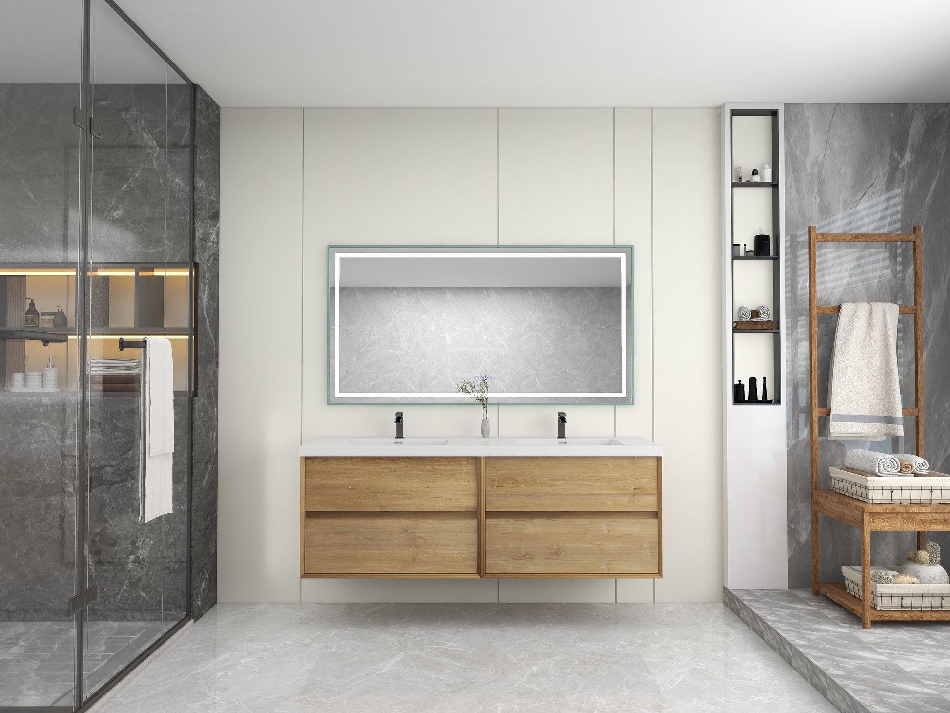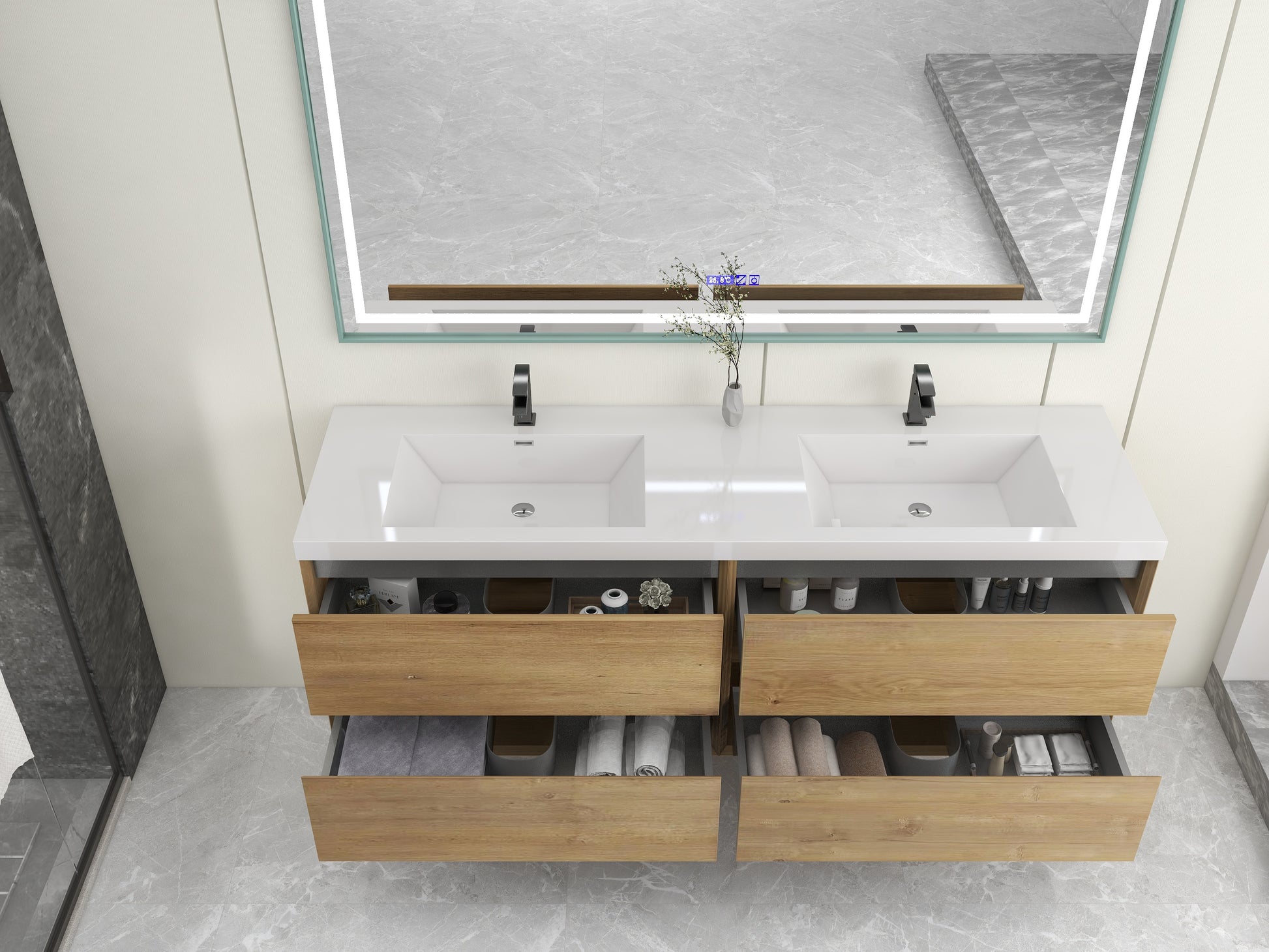 Kingdee 72" Oak Wall Mounted Vanity with Reinforced Acrylic Sinks