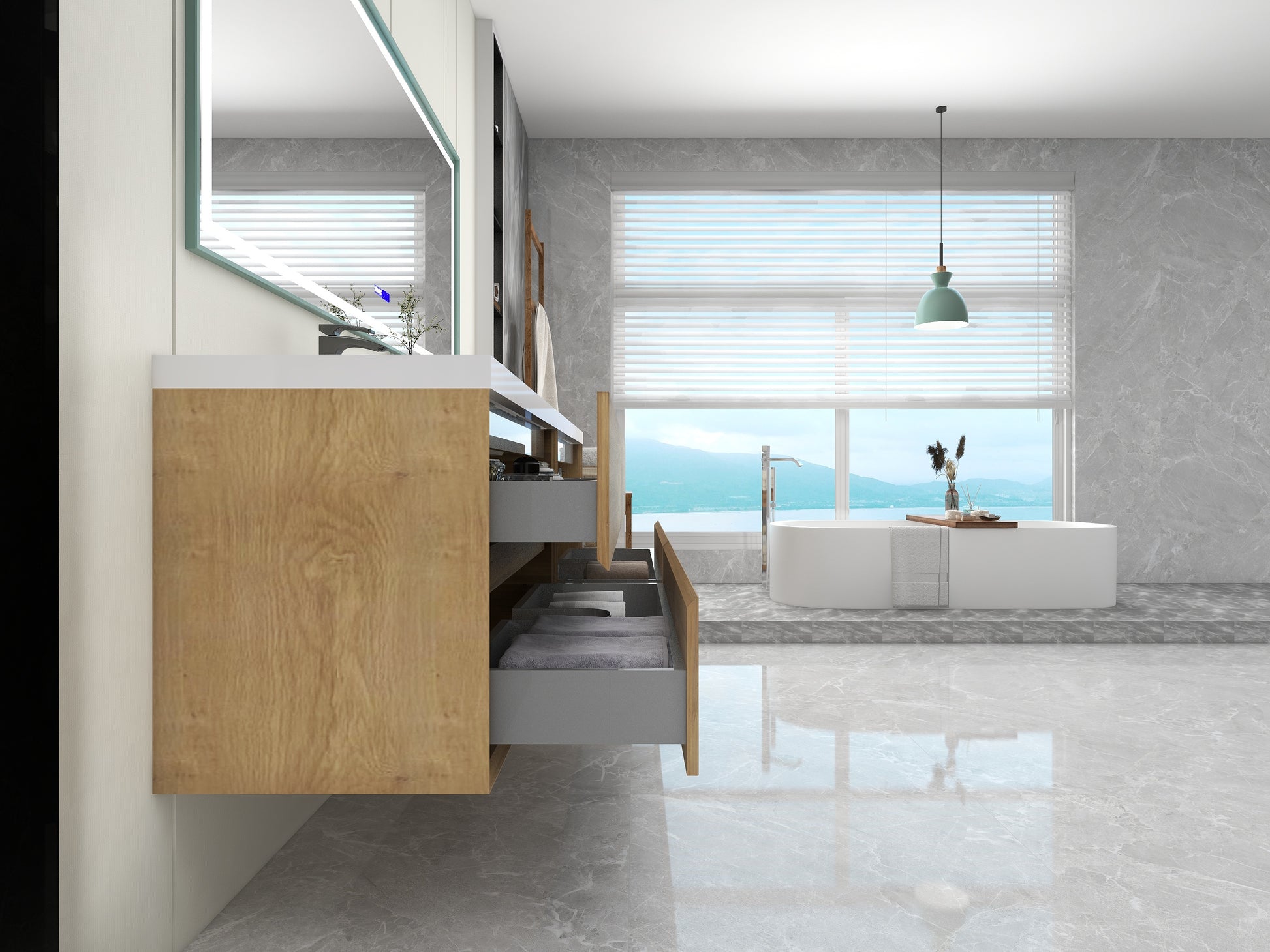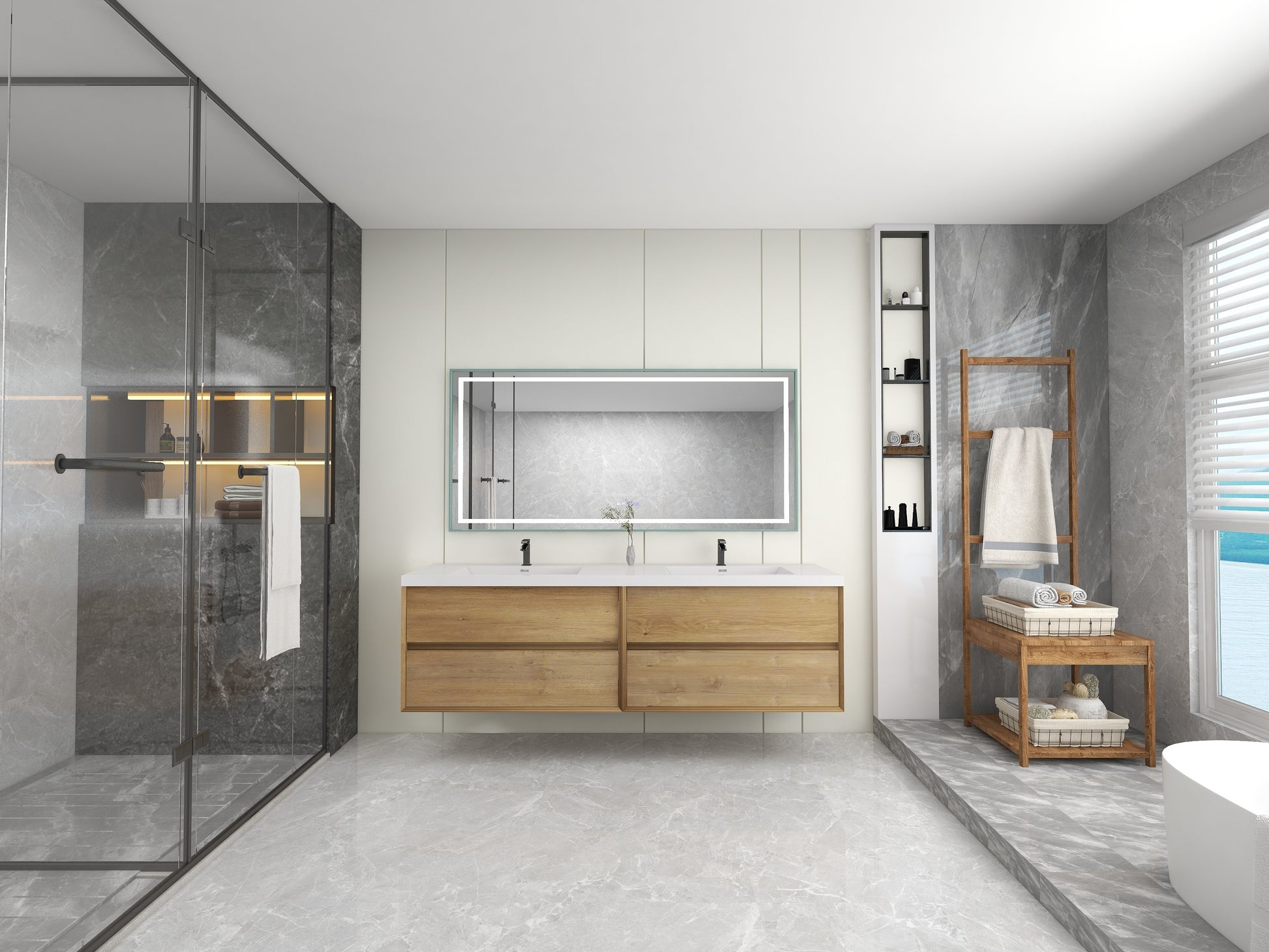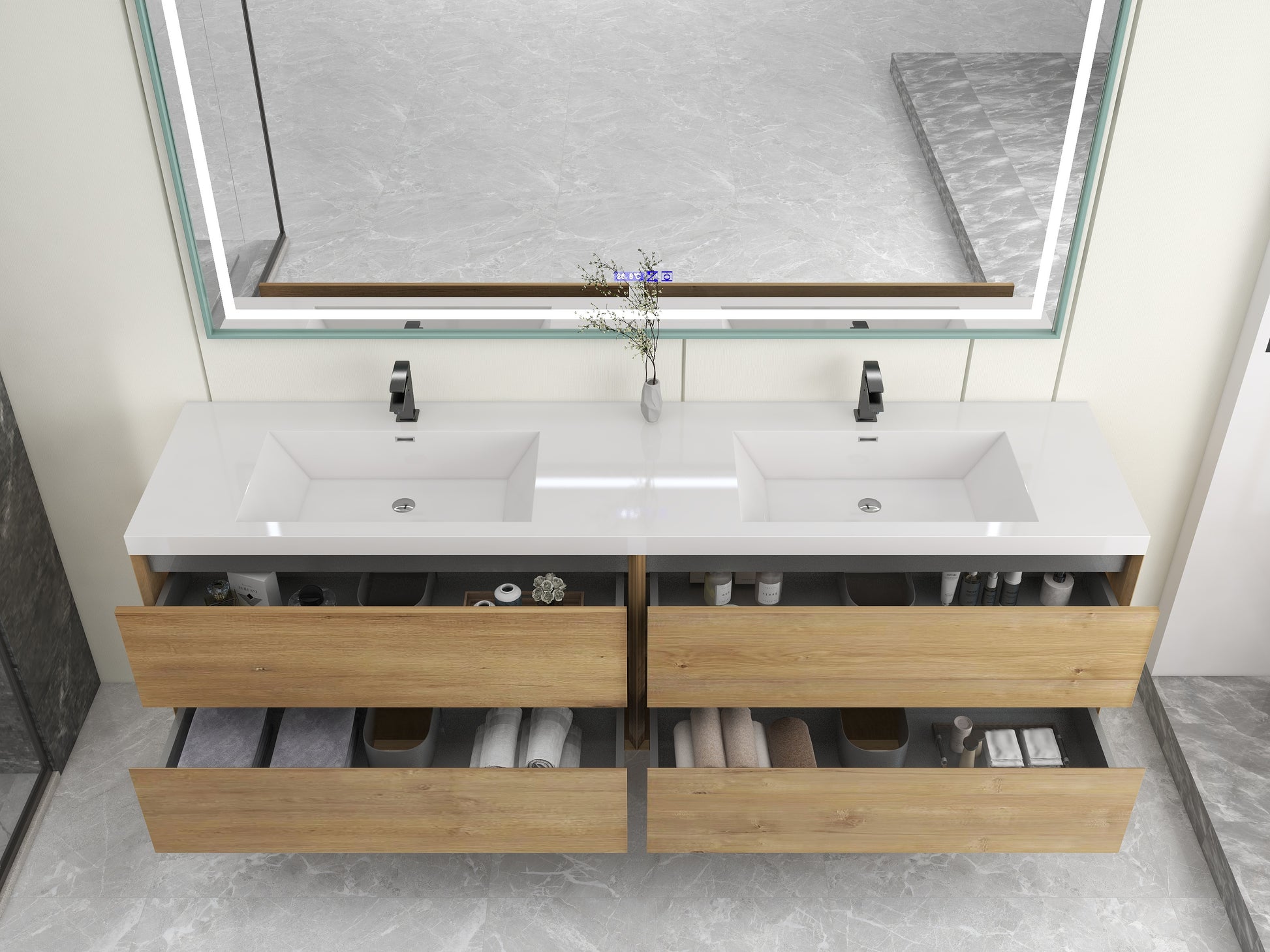 Kingdee 84" Oak Wall Mounted Vanity with Reinforced Acrylic Sinks