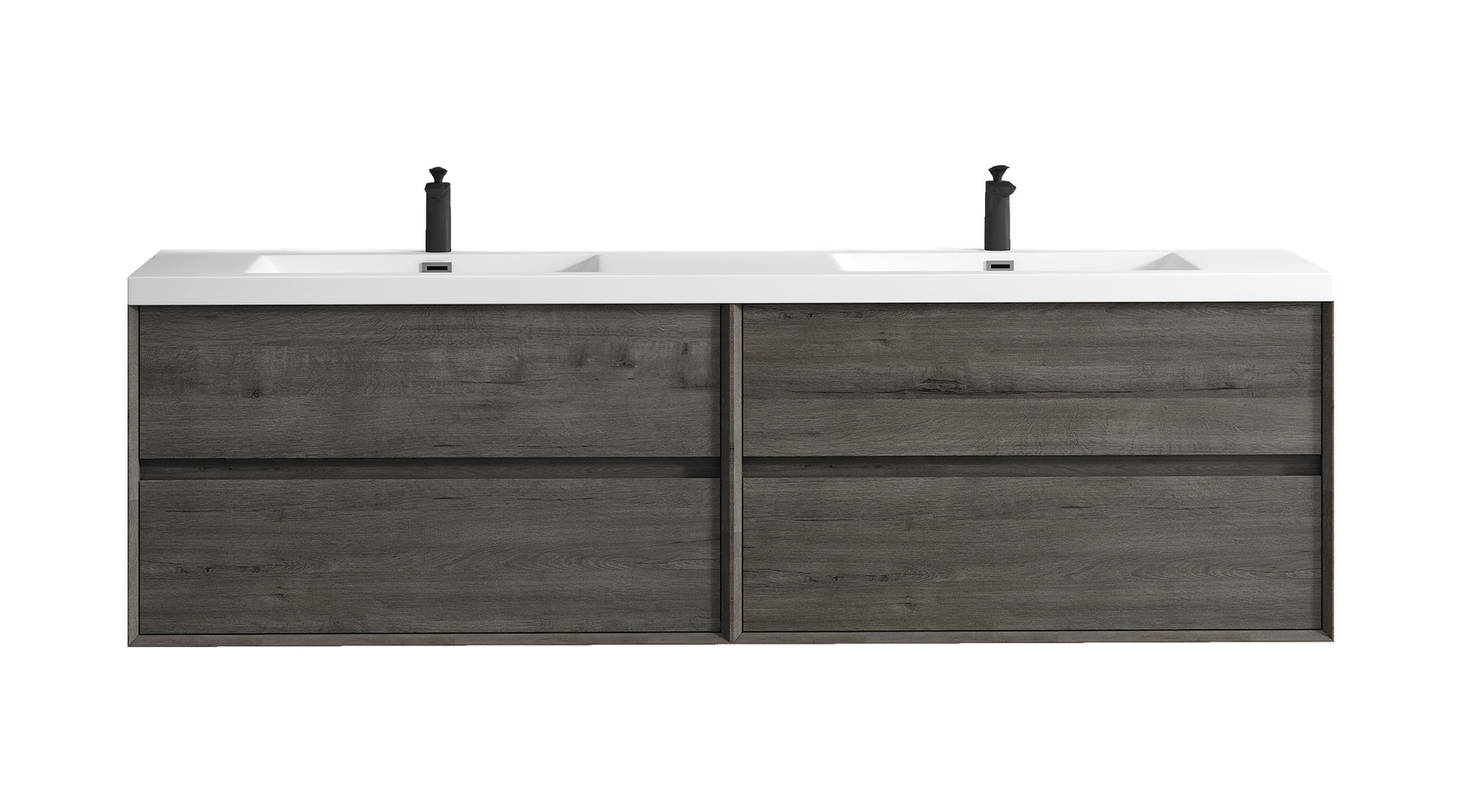 Kingdee 84" Smoke Oak Wall Mounted Vanity with Reinforced Acrylic Sinks