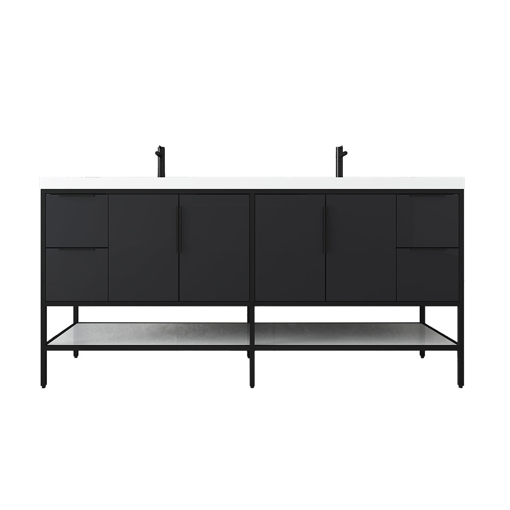 Matthew 72" Glossy Gray Freestanding Vanity with Reinforced Acrylic Sinks