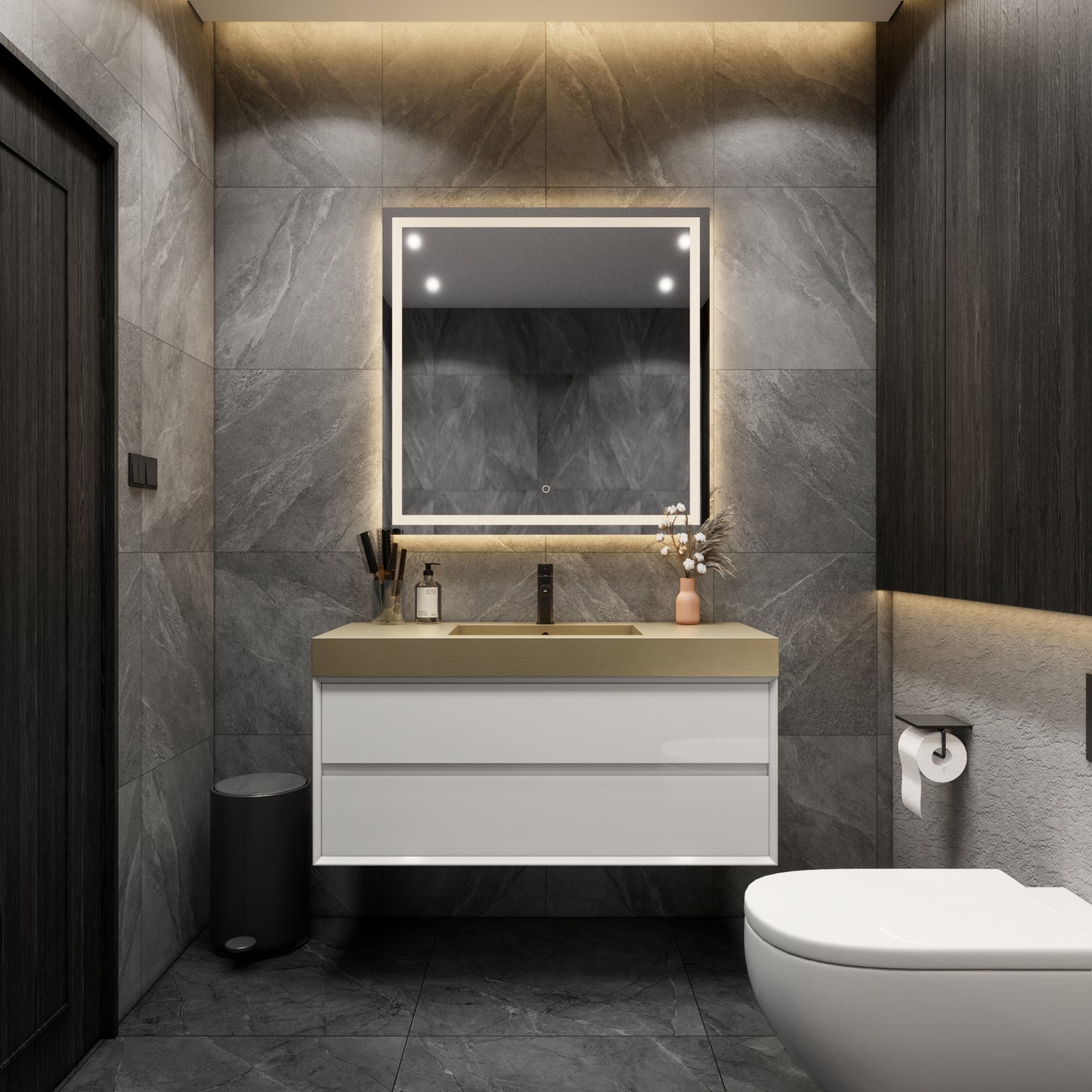 *Any mirrors, faucets, and pop drains shown in photos are not included.
