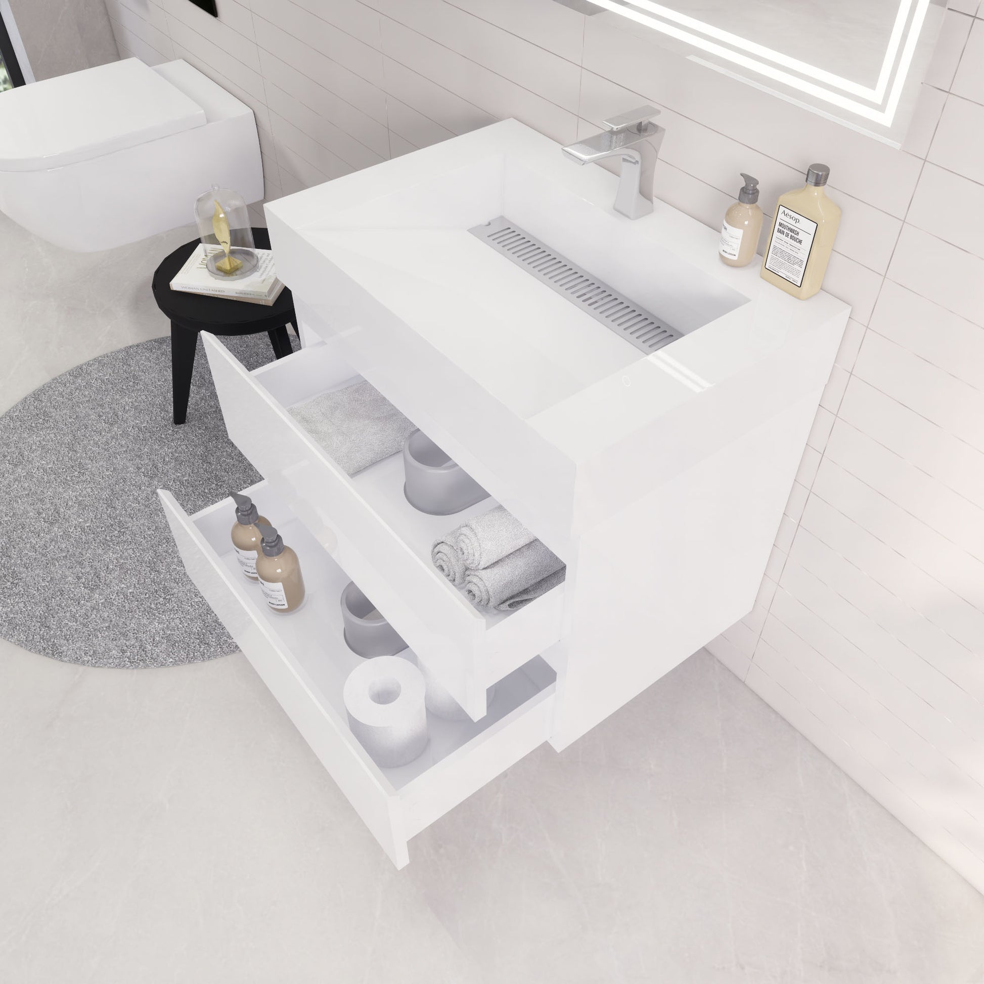 Monterey 30" Glossy White Wall Mounted Vanity with Reinforced Acrylic Sink