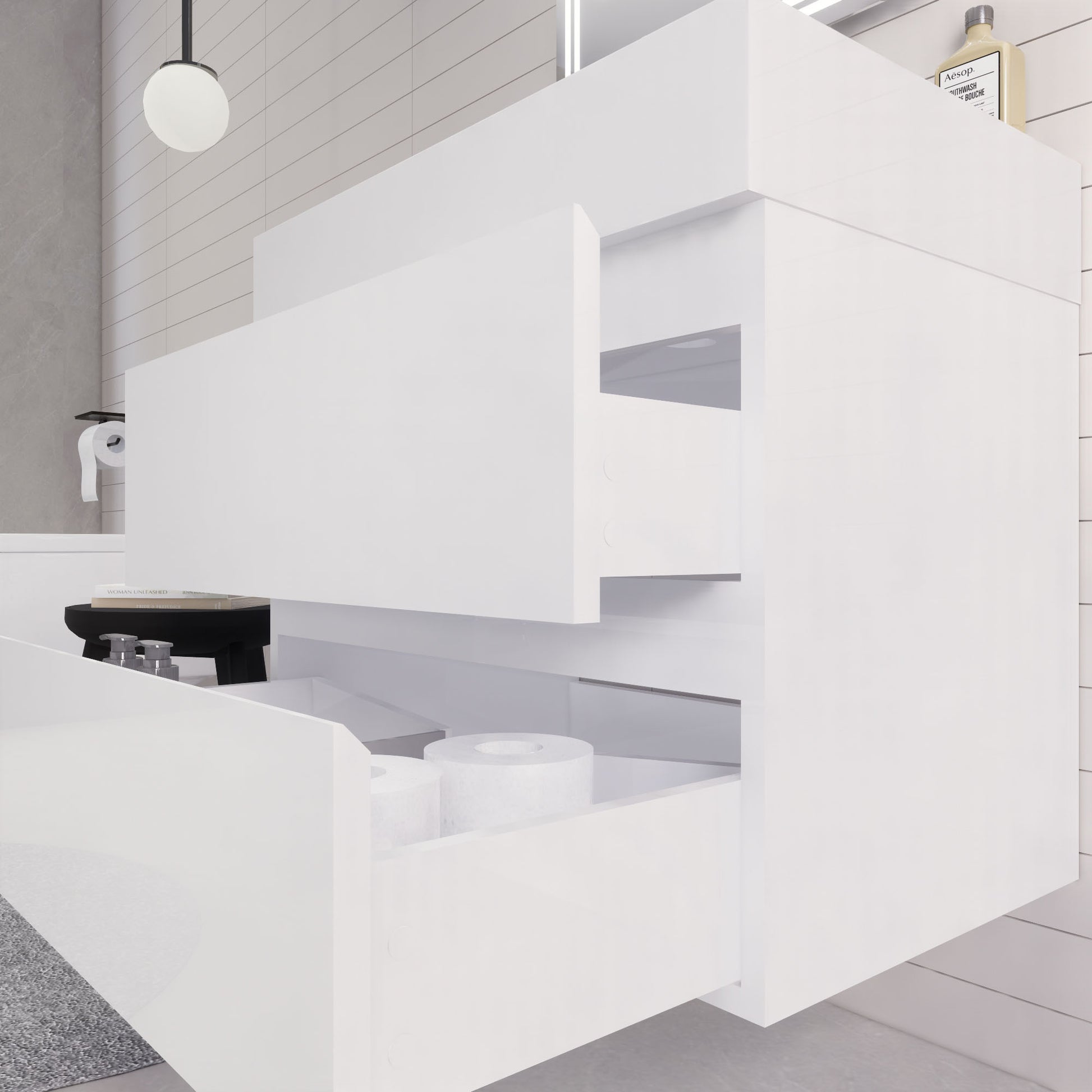 • Integrated European soft-closing hardware