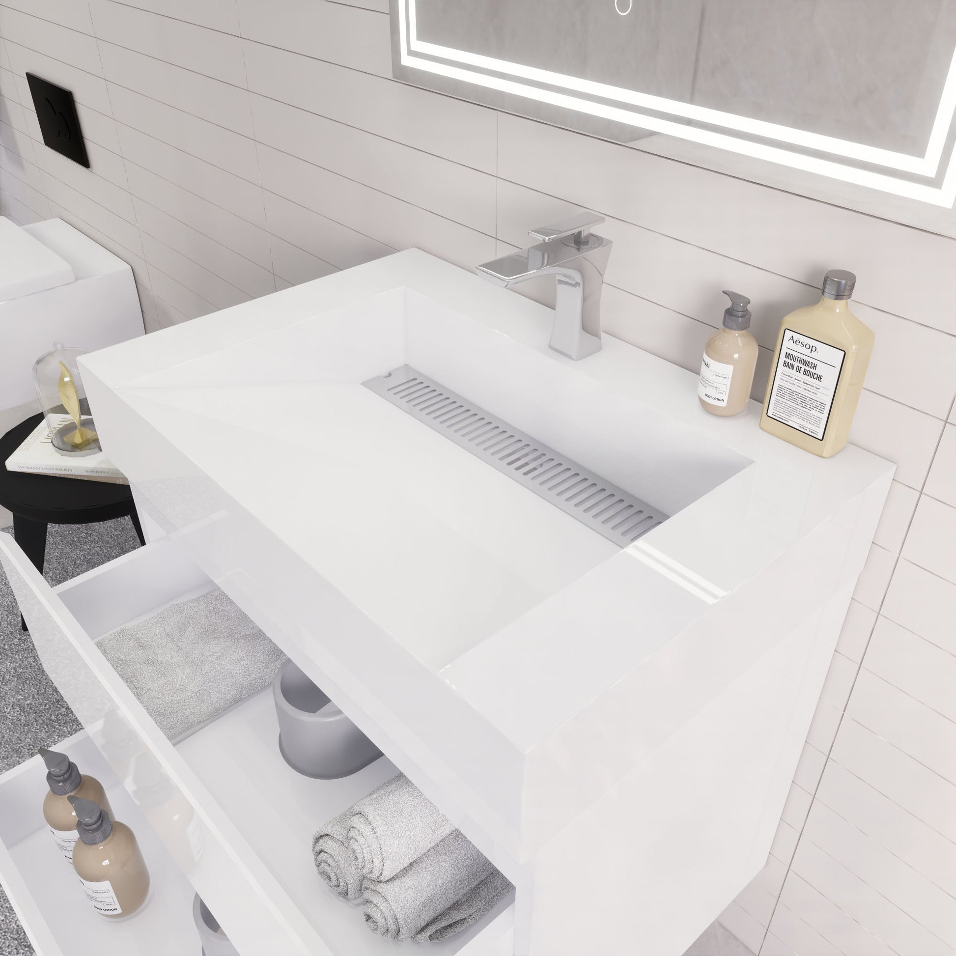 • Reinforced acrylic sink top