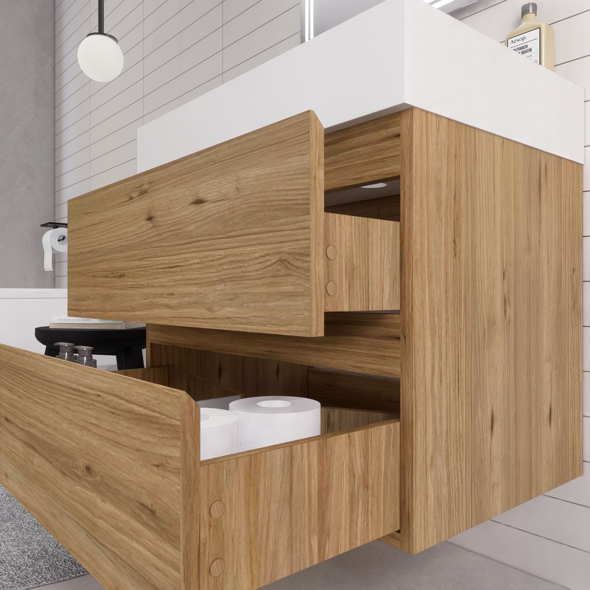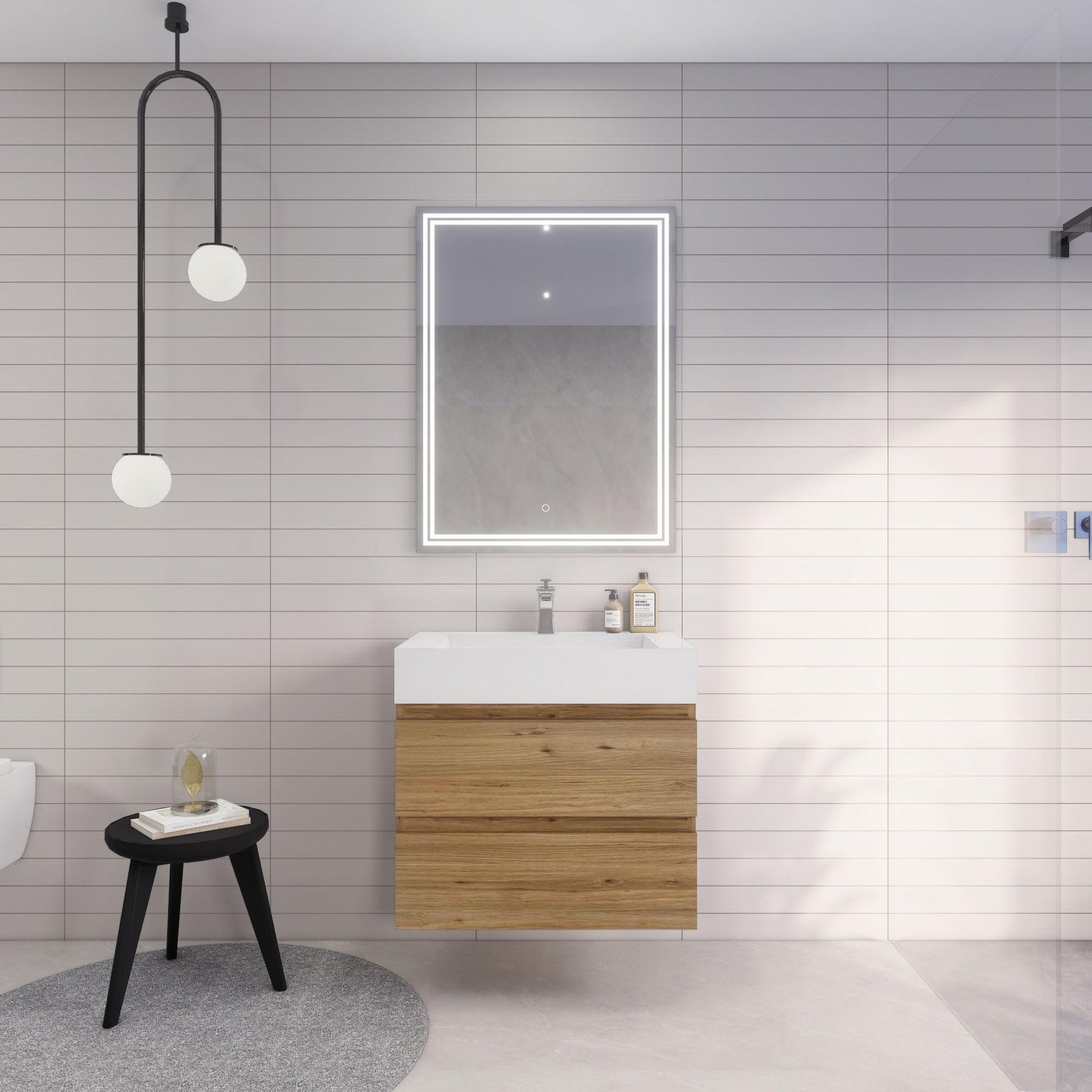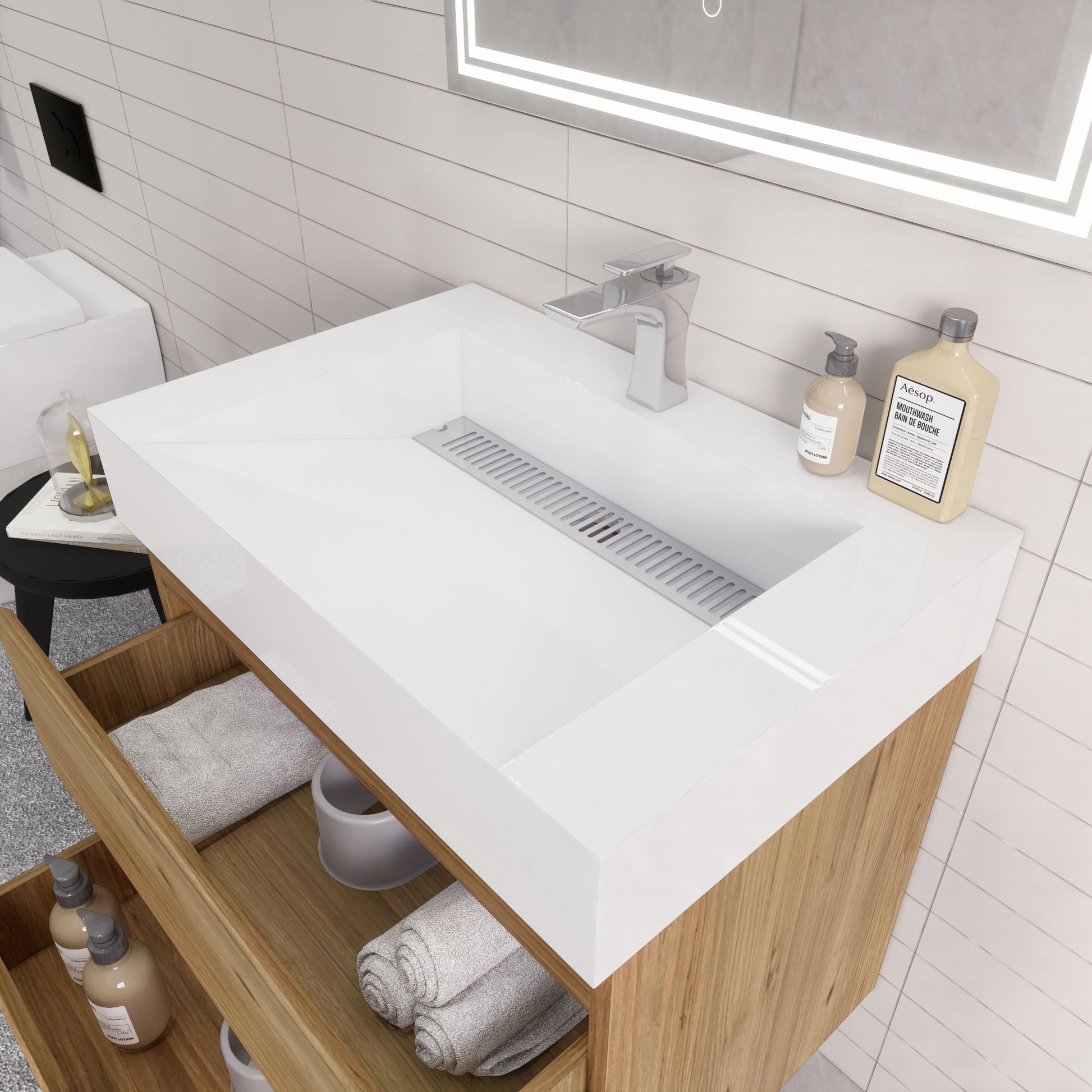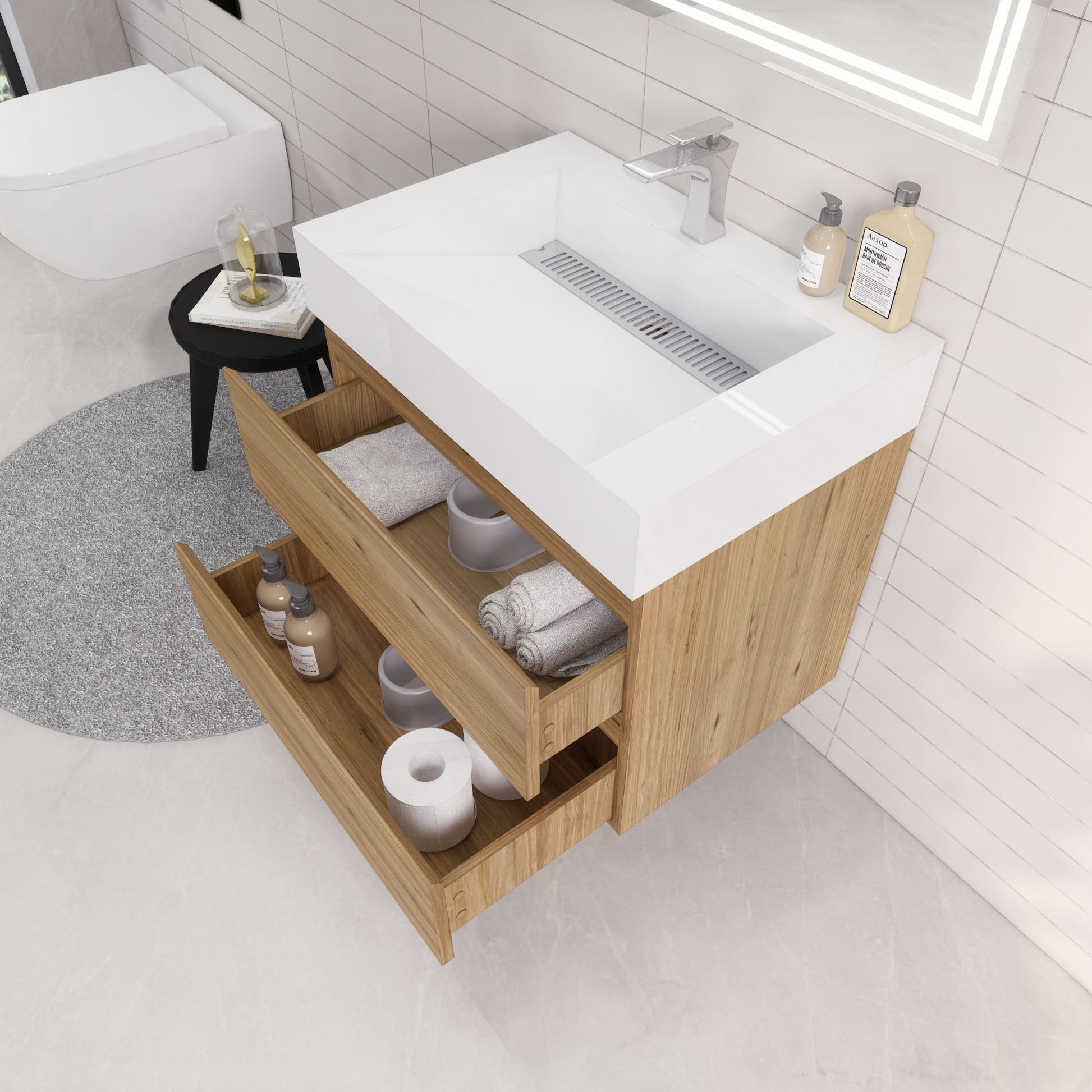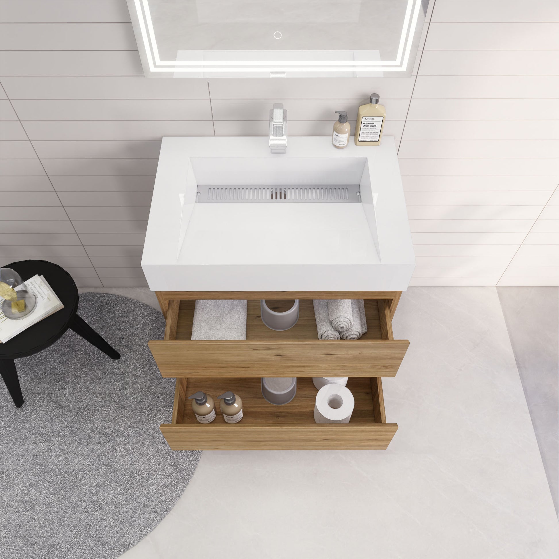Monterey 30" Natural Oak Wall Mounted Vanity with Reinforced Acrylic Sink