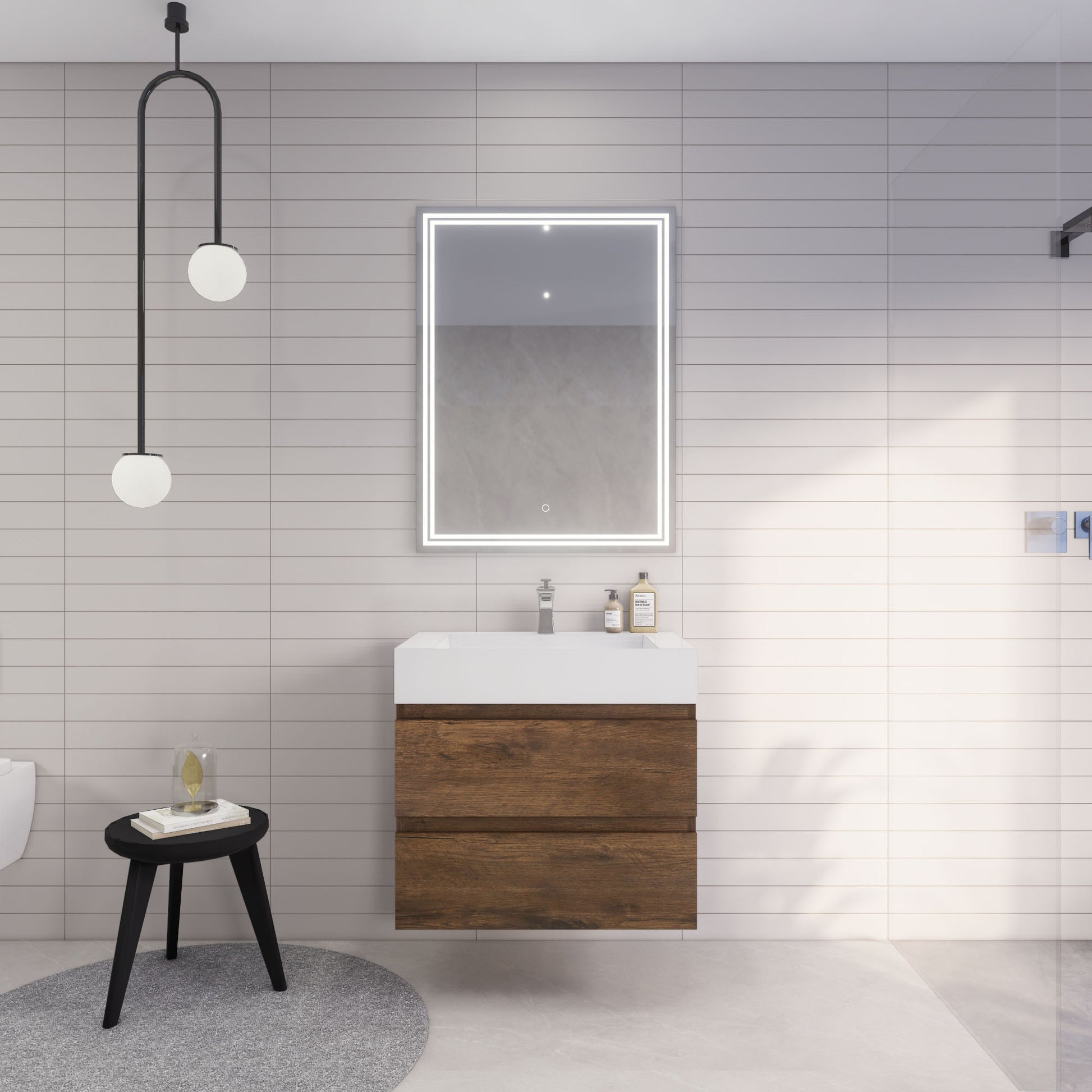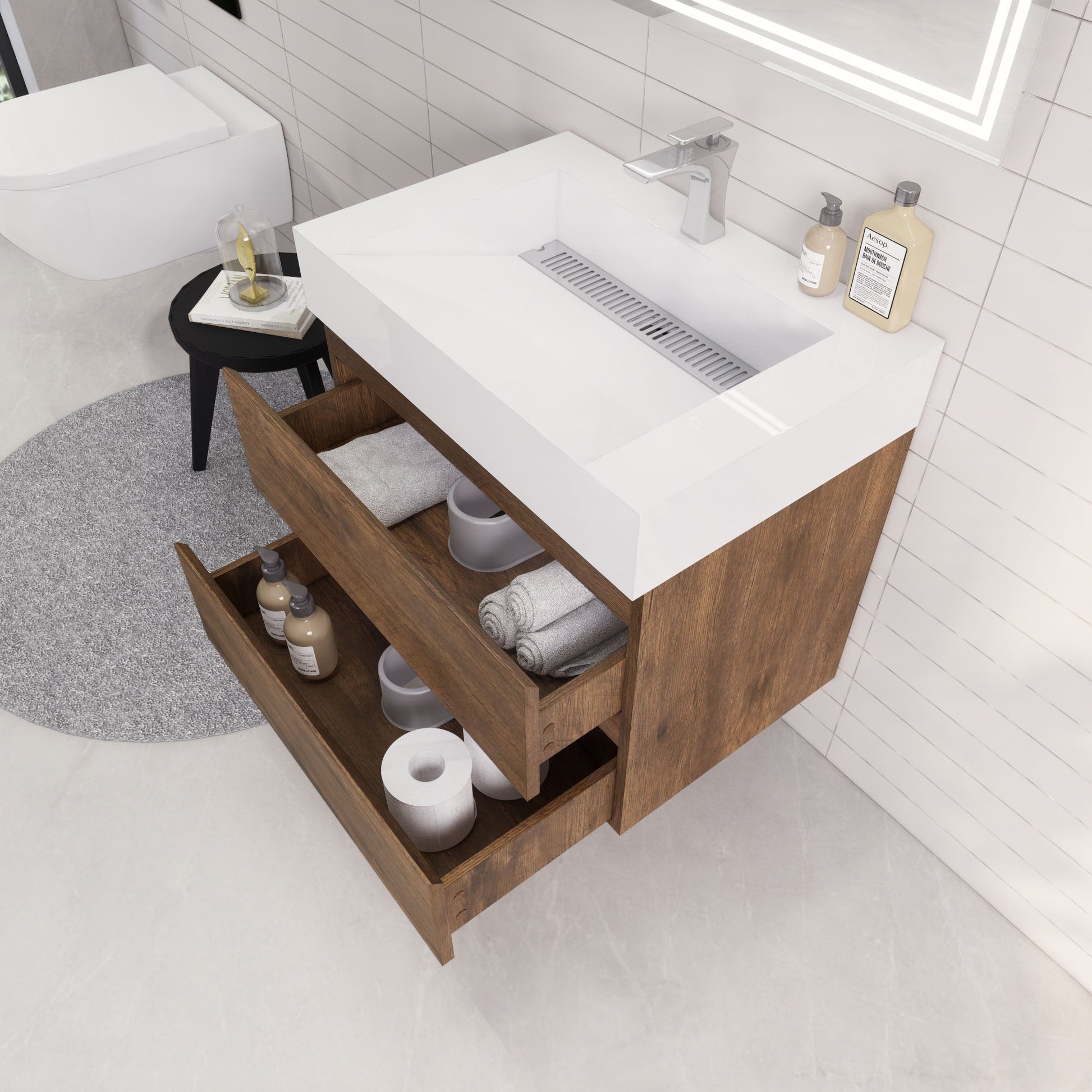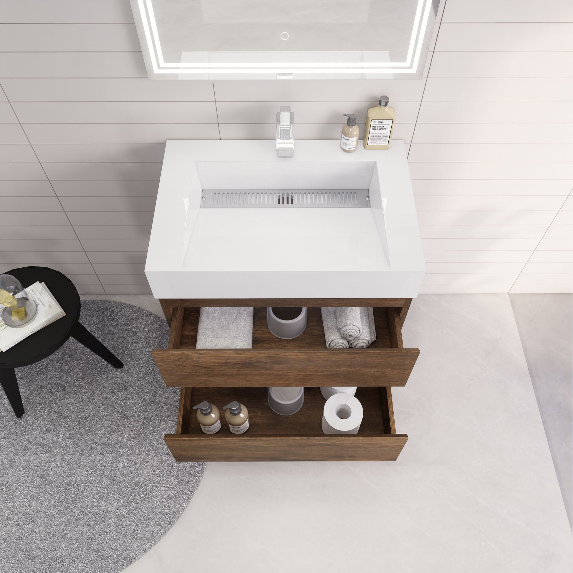 Monterey 30" Rosewood Wall Mounted Vanity with Reinforced Acrylic Sink