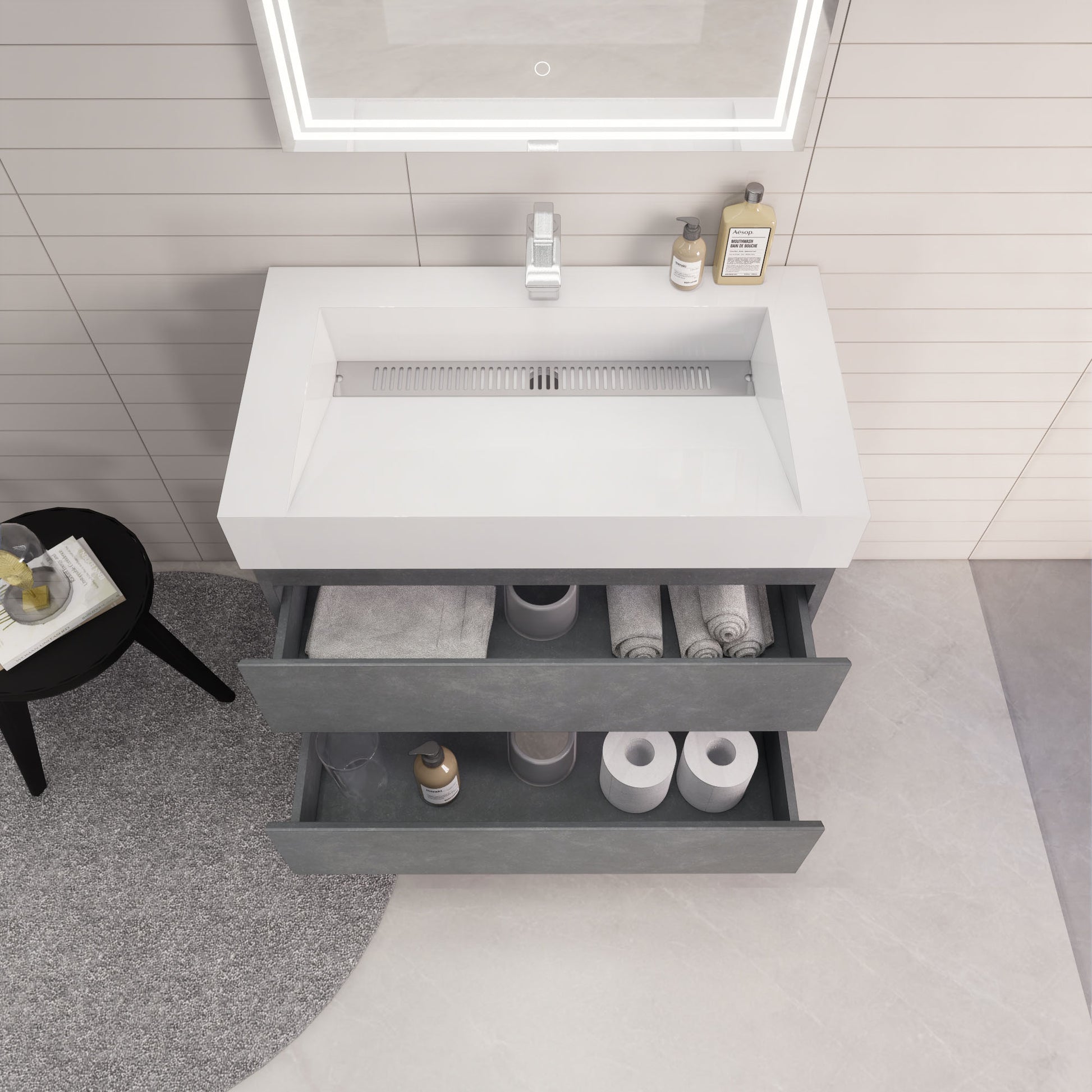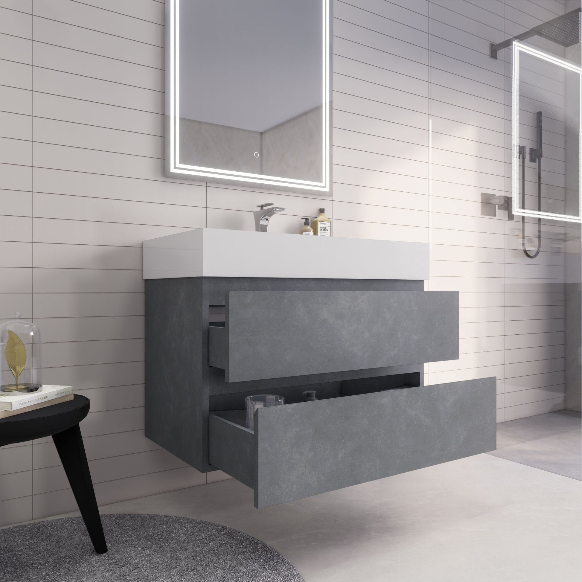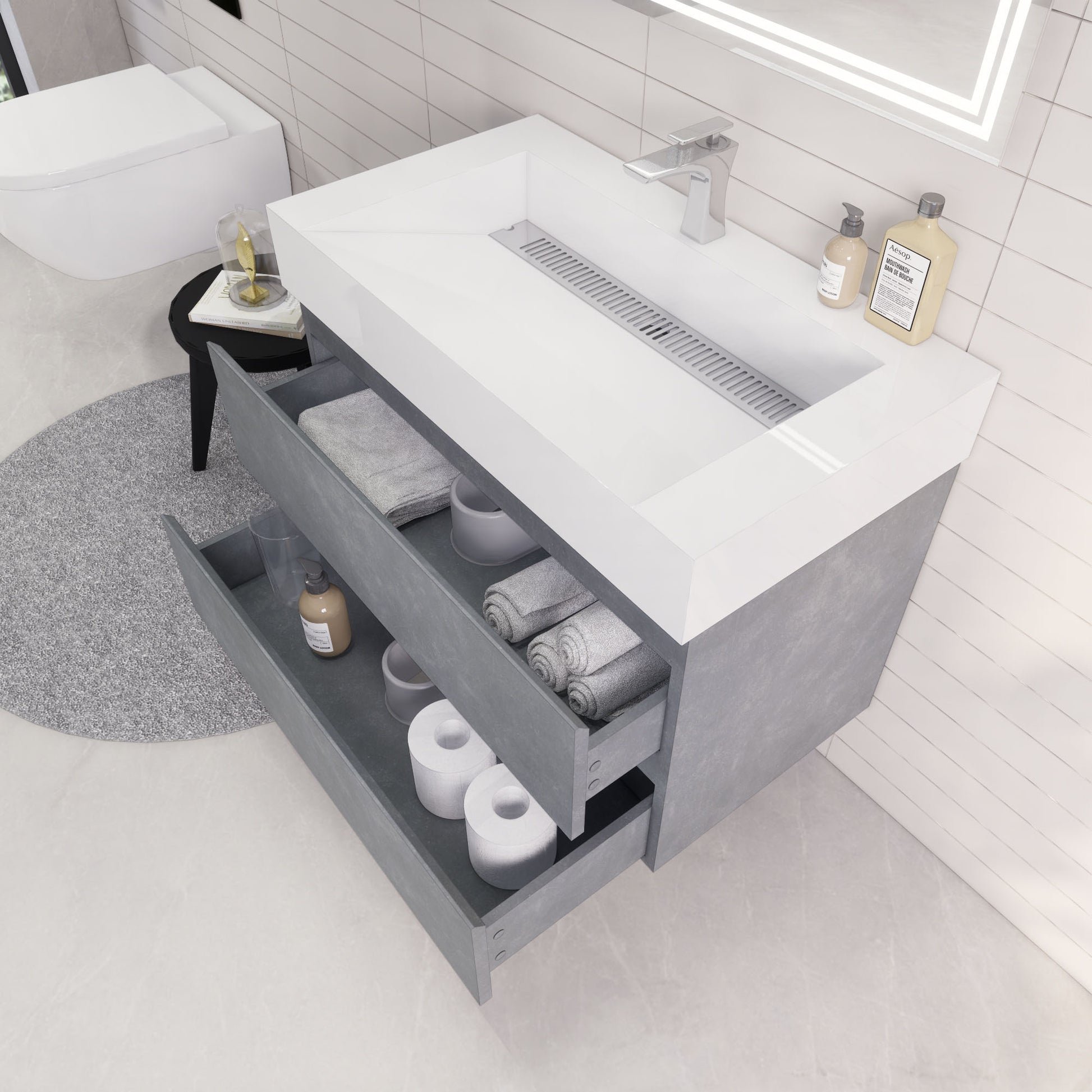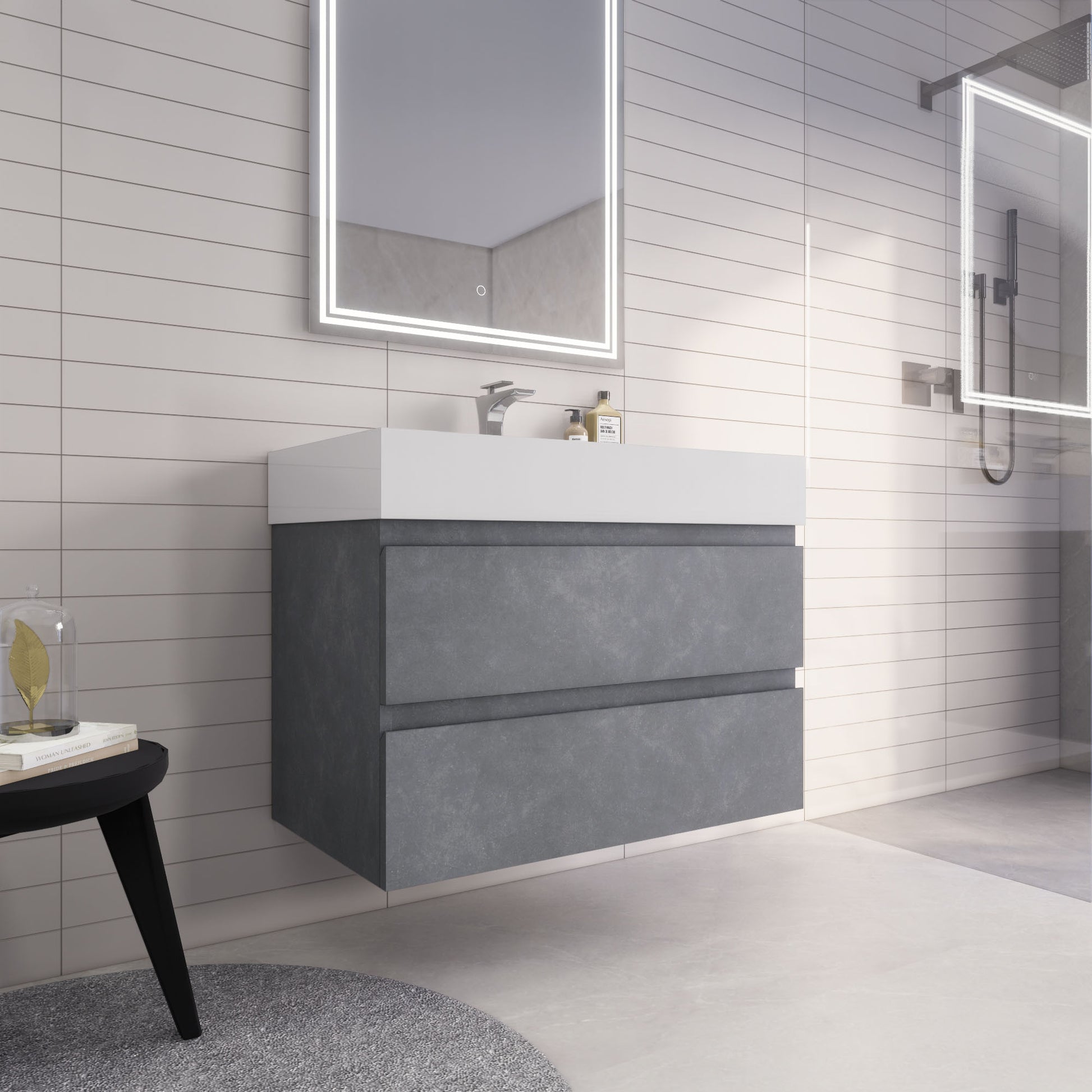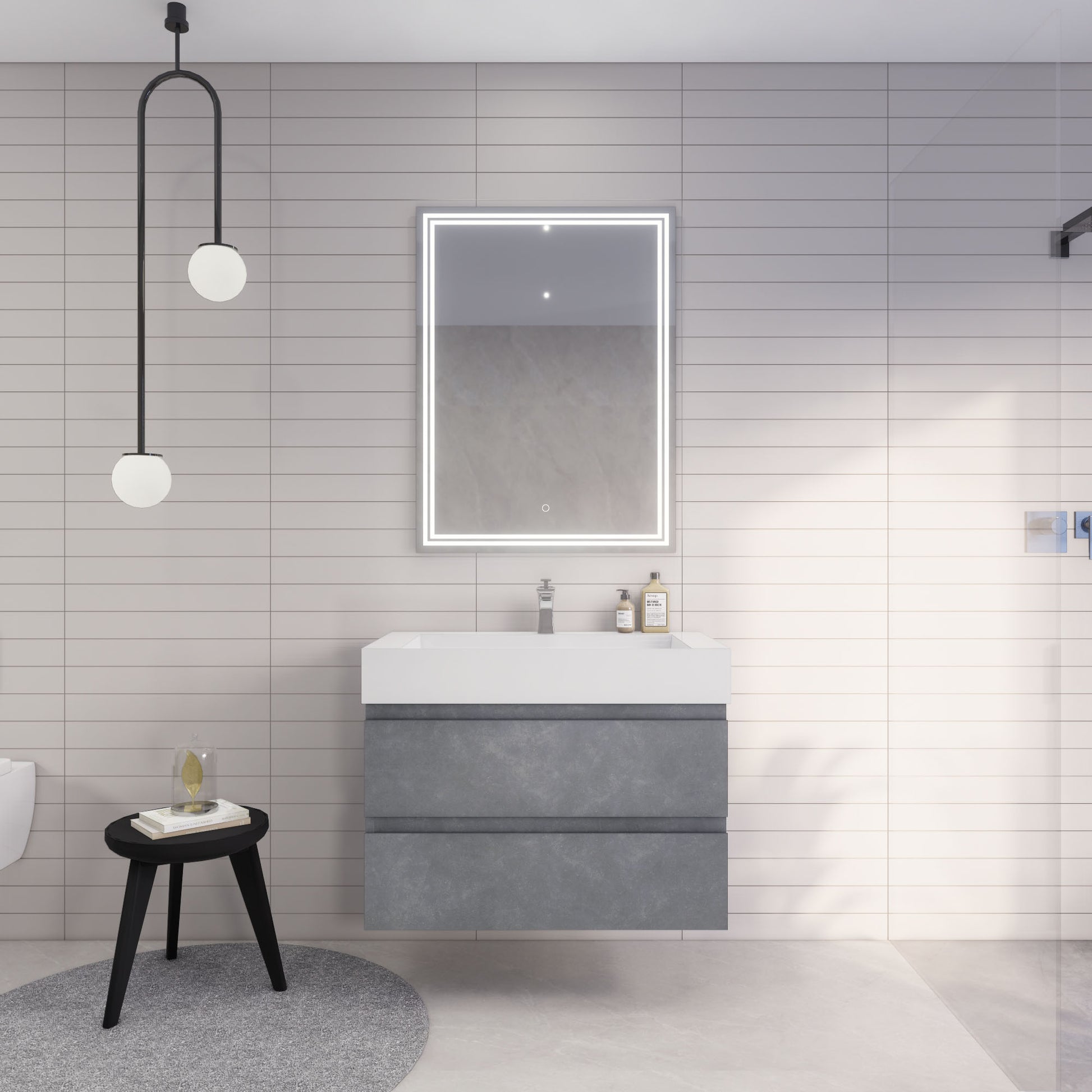 Monterey 36" Cement Gray Wall Mounted Vanity with Reinforced Acrylic Sink