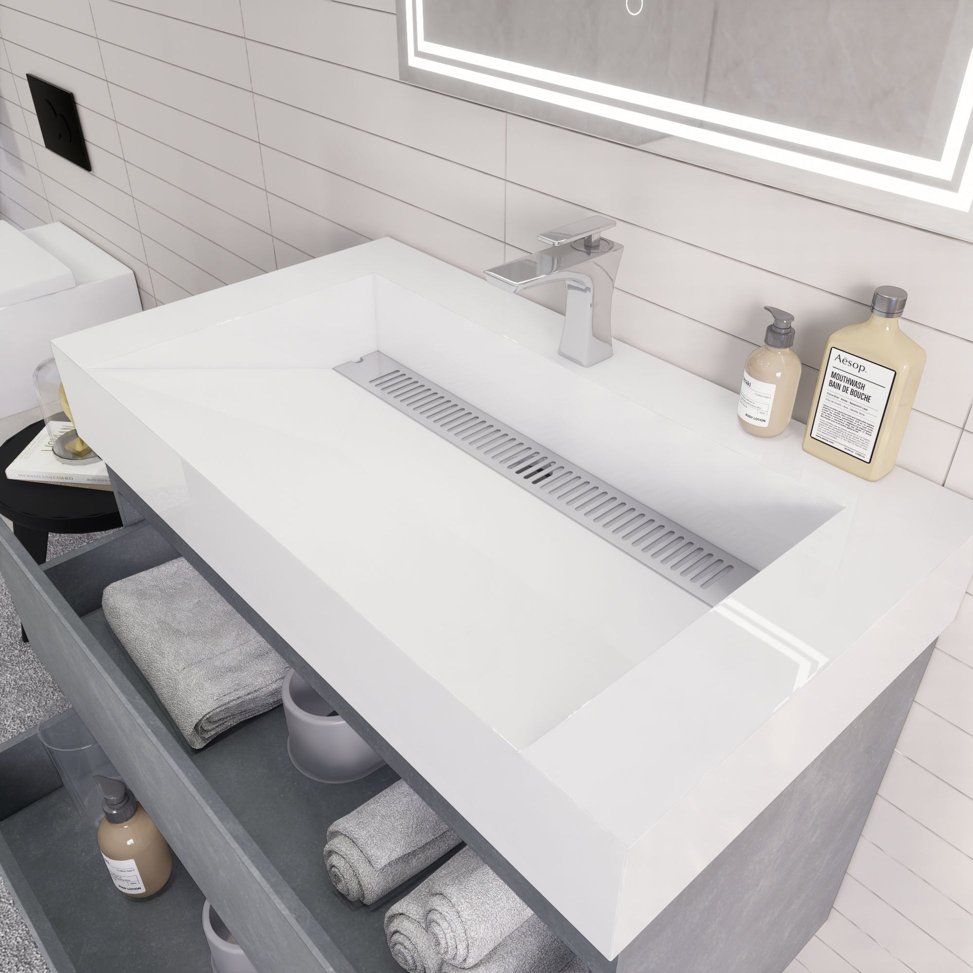 • Reinforced acrylic sink top
