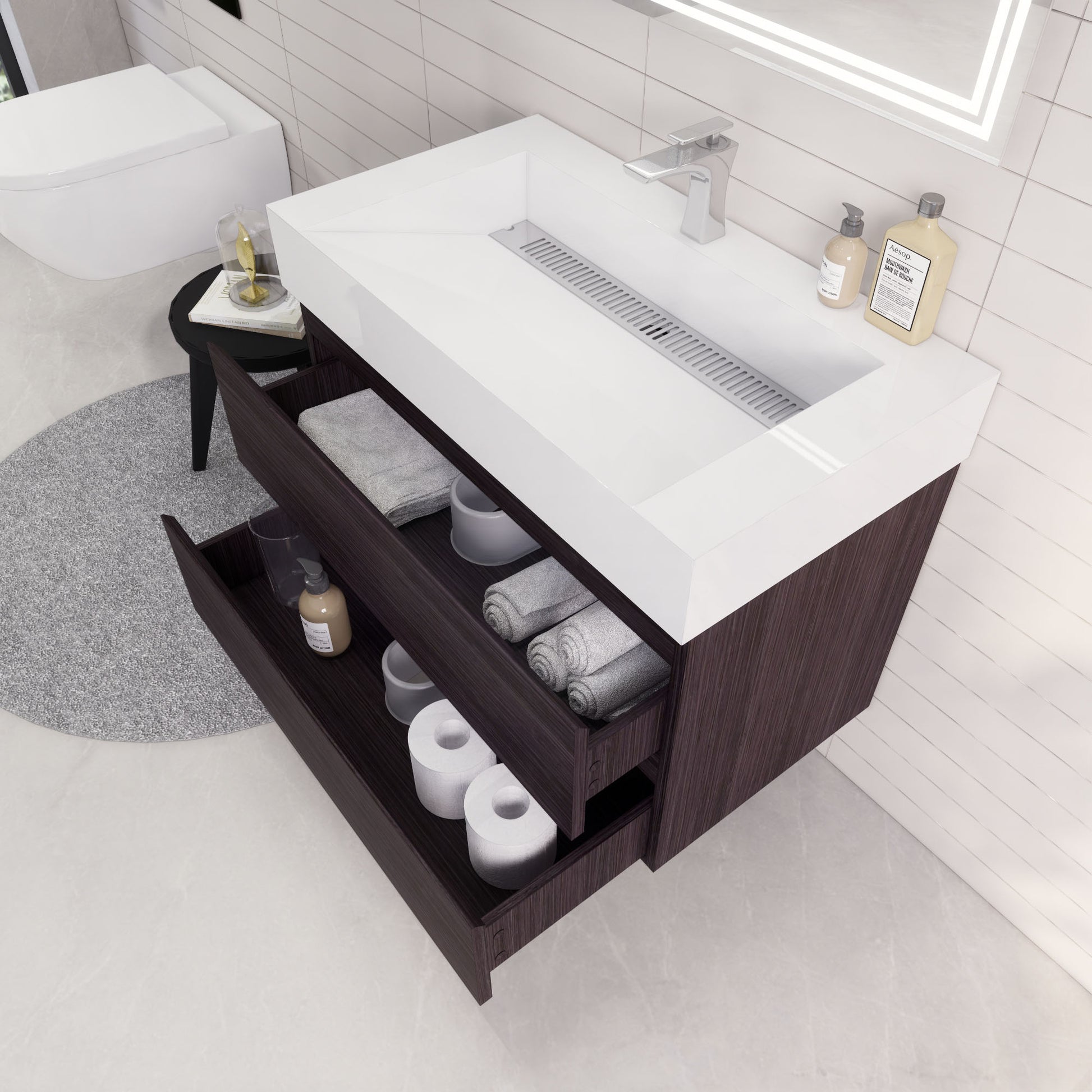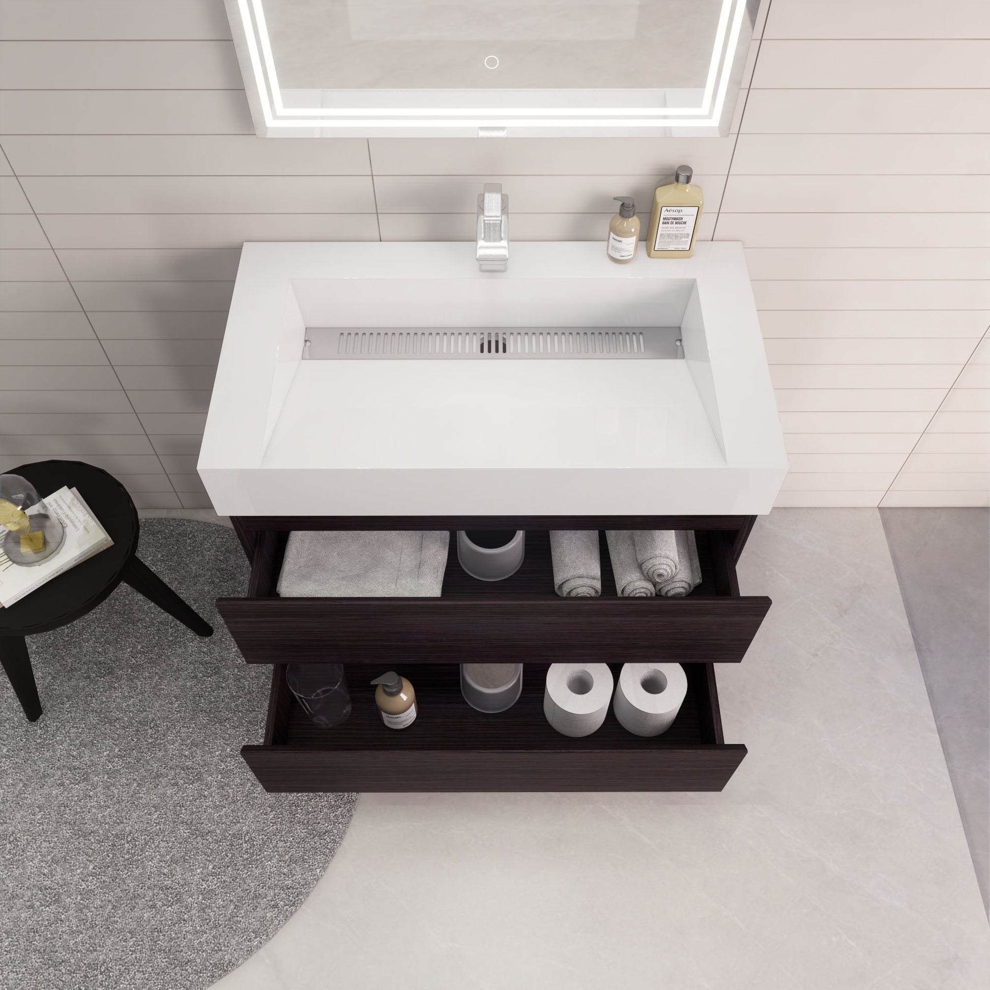 Monterey 36" Dark Gray Oak Wall Mounted Vanity with Reinforced Acrylic Sink