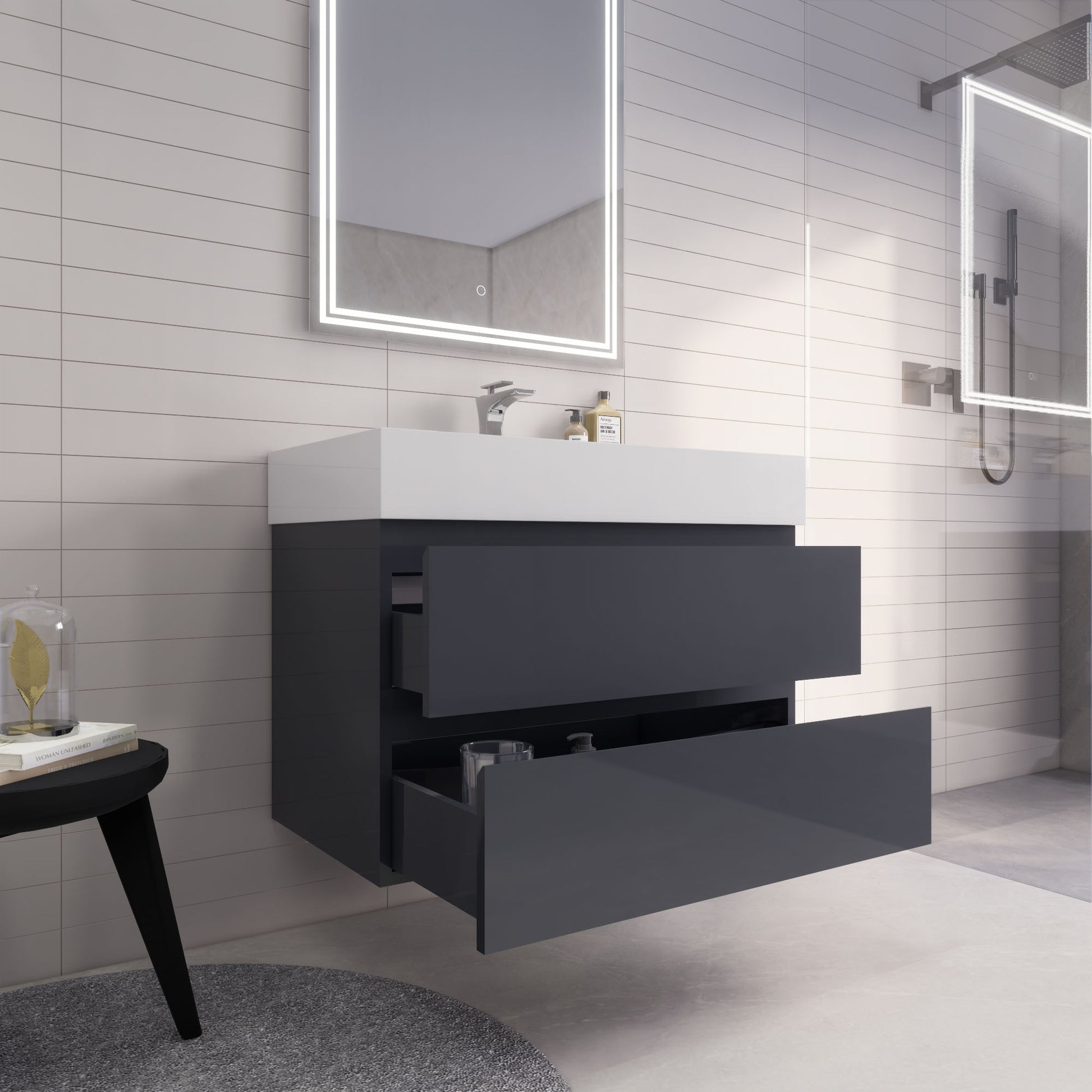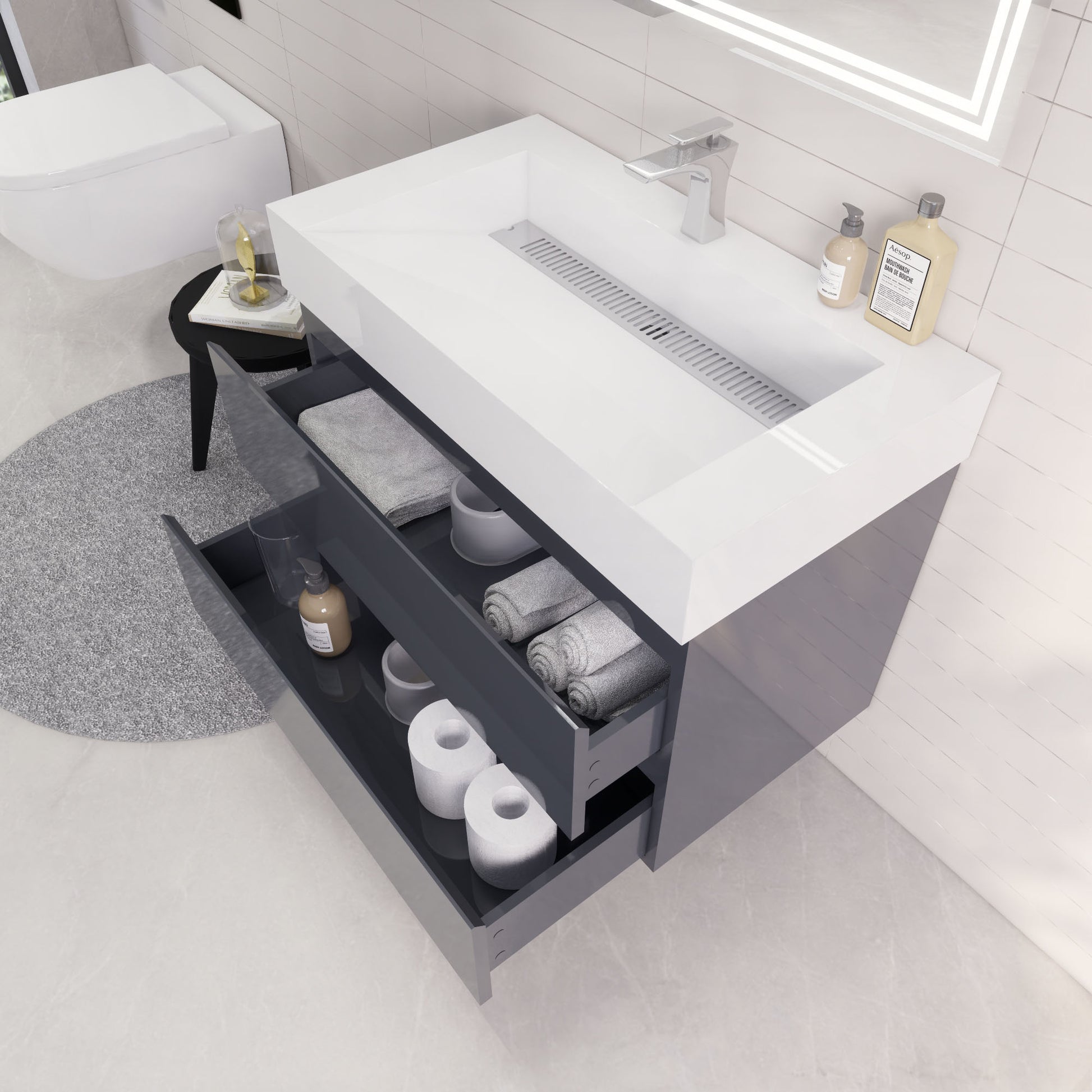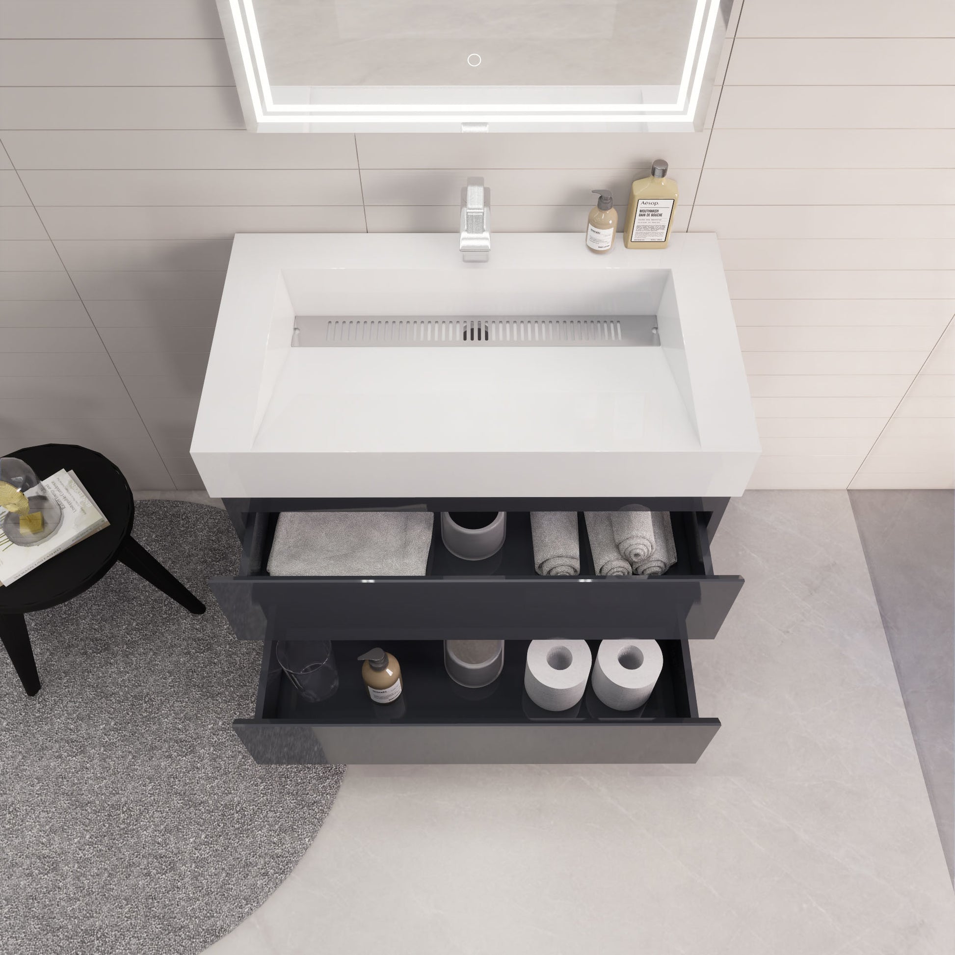 Monterey 36" Glossy Gray Wall Mounted Vanity with Reinforced Acrylic Sink
