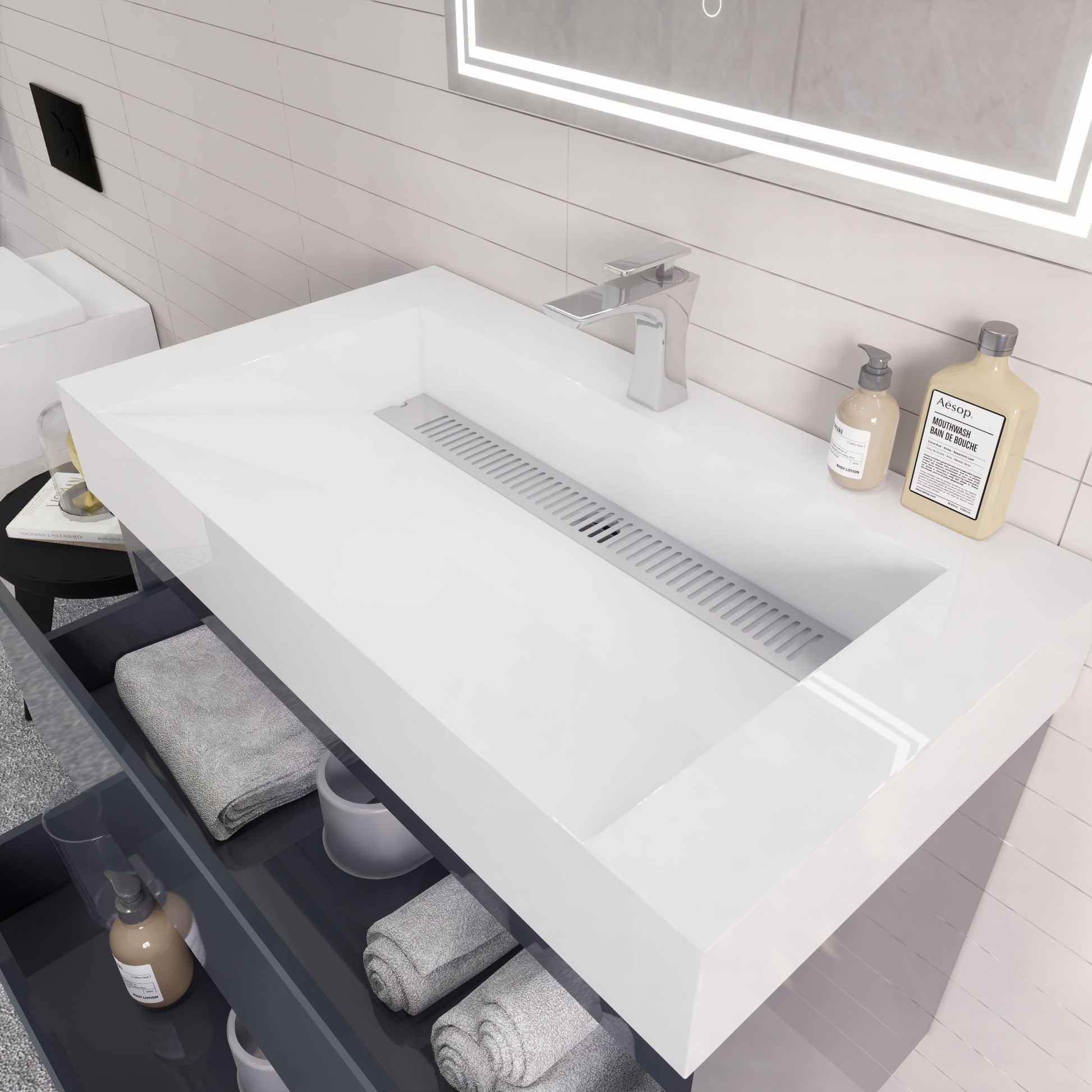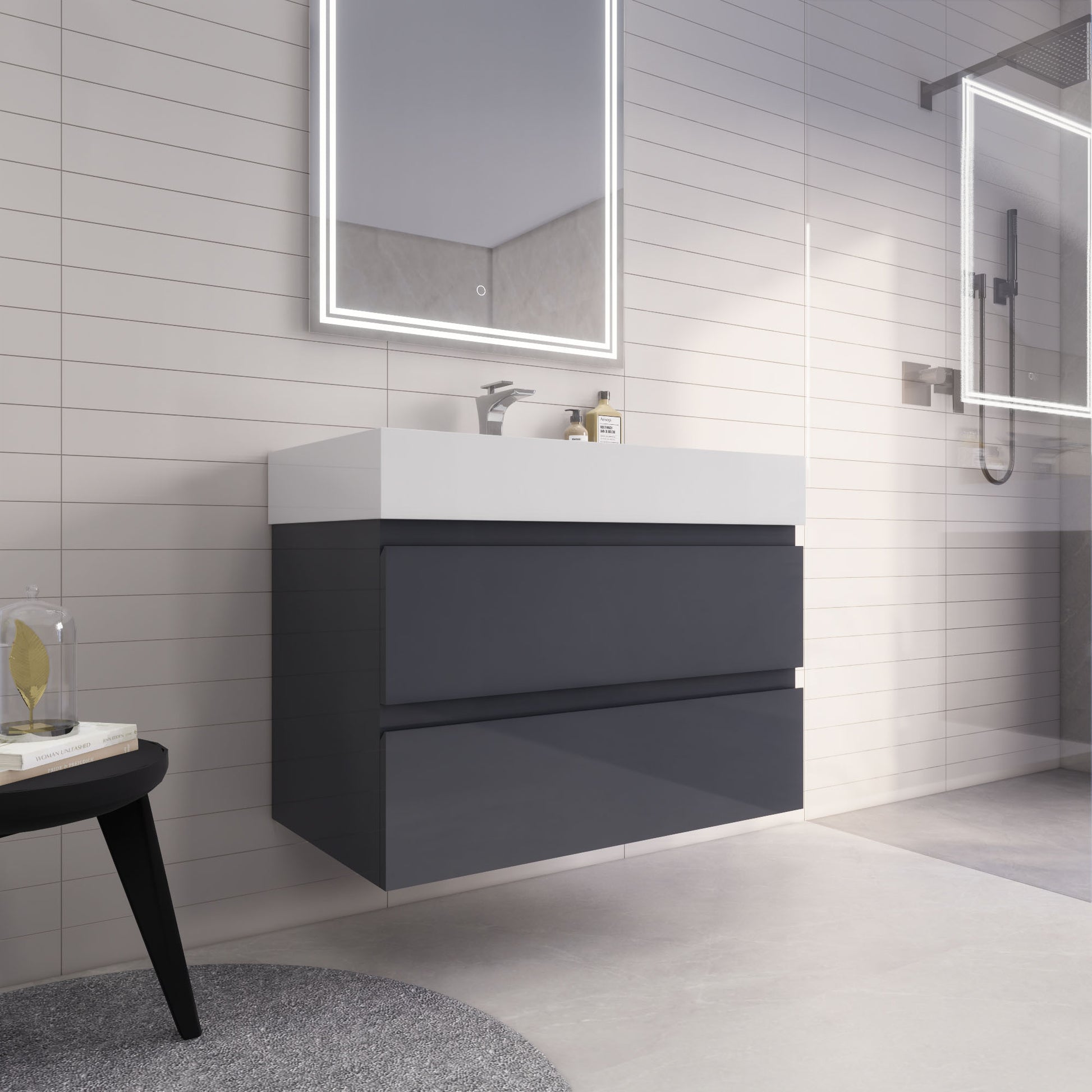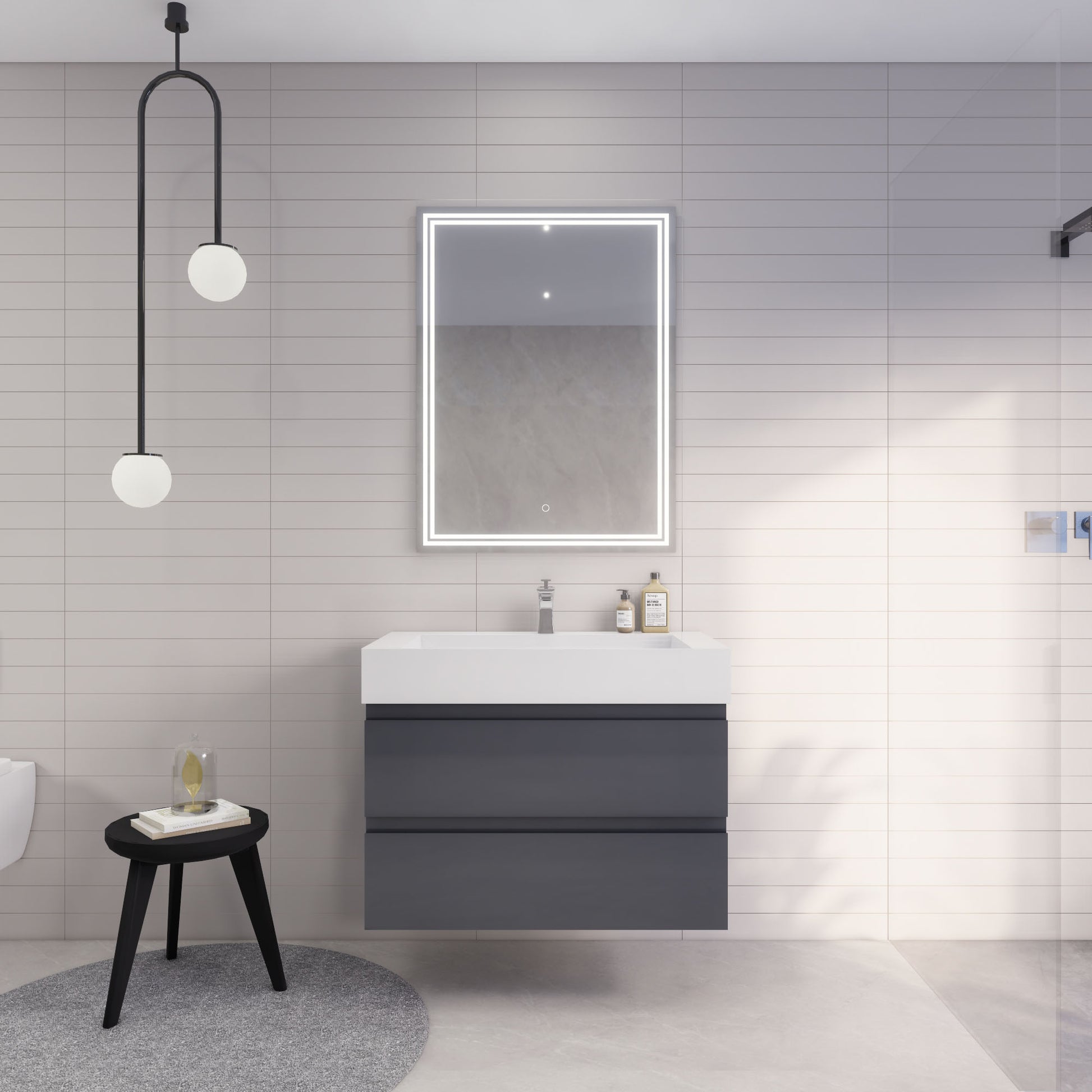 Monterey 36" Glossy Gray Wall Mounted Vanity with Reinforced Acrylic Sink