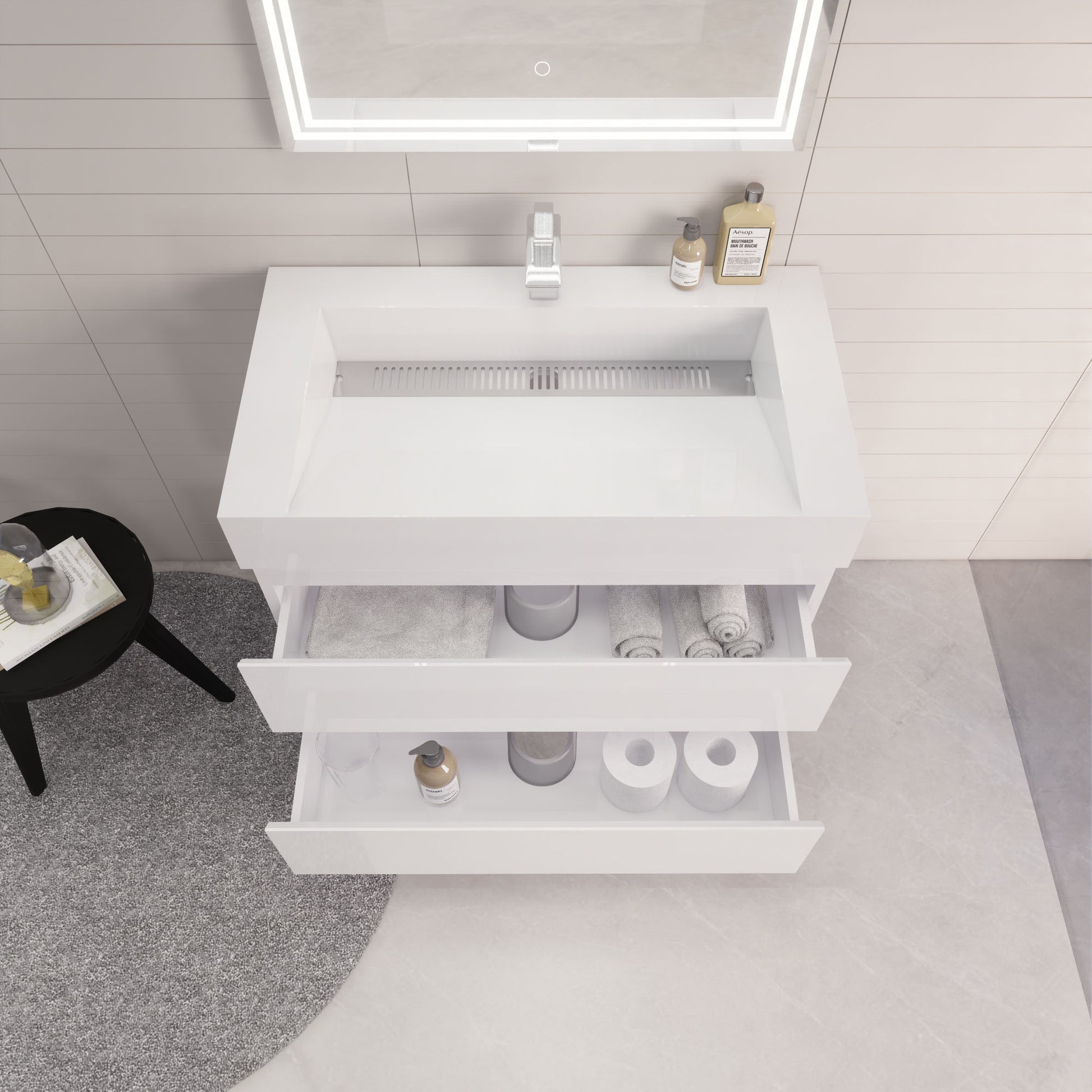 Monterey 36" Glossy White Wall Mounted Vanity with Reinforced Acrylic Sink