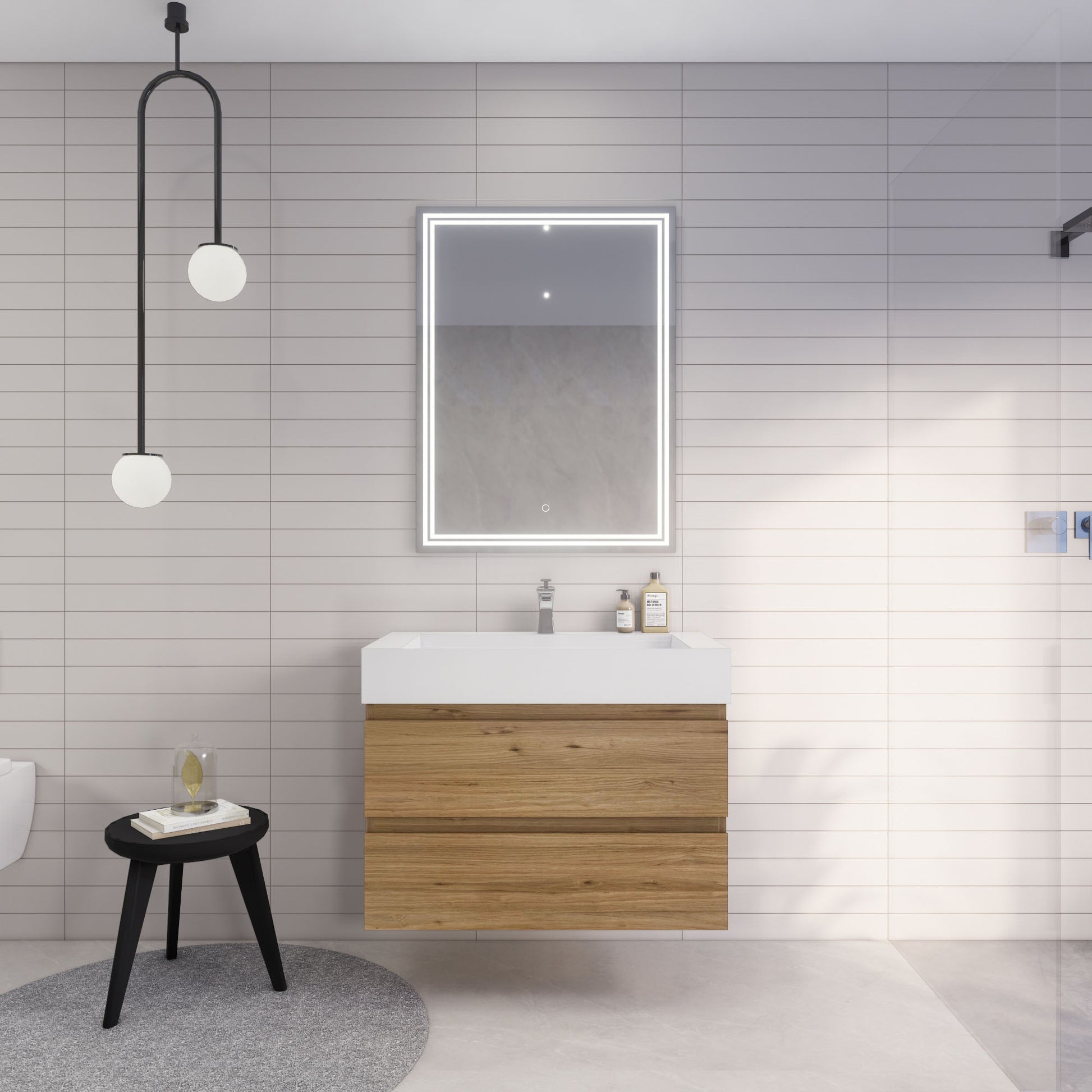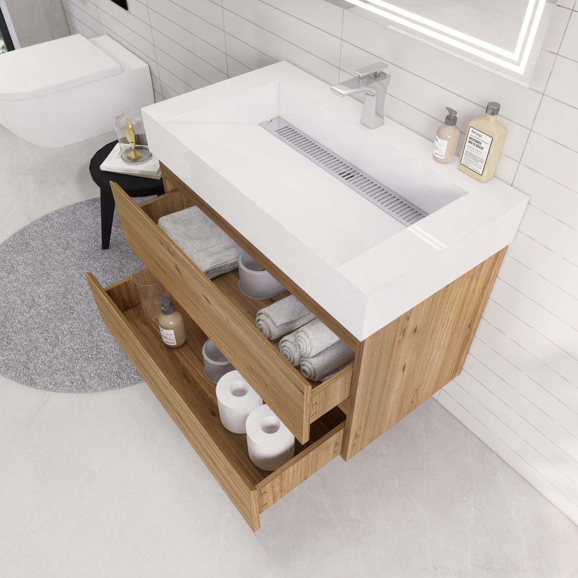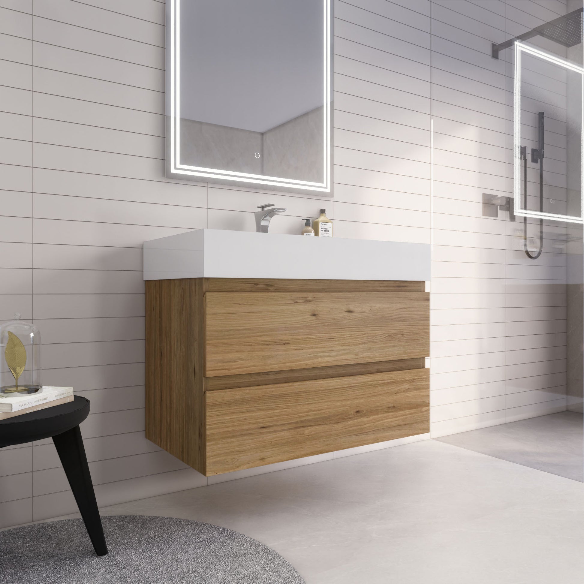 Monterey 36" Natural Oak Wall Mounted Vanity with Reinforced Acrylic Sink