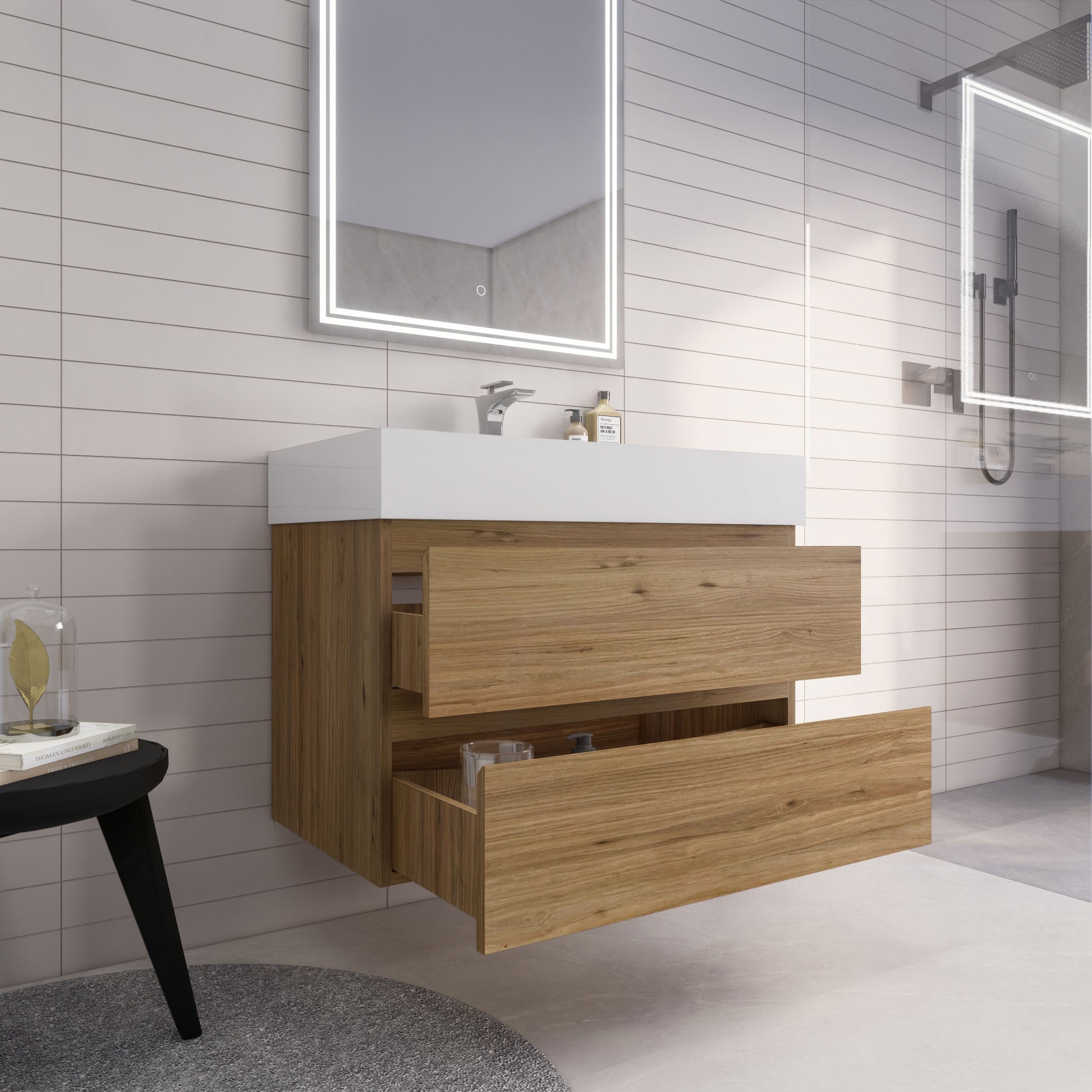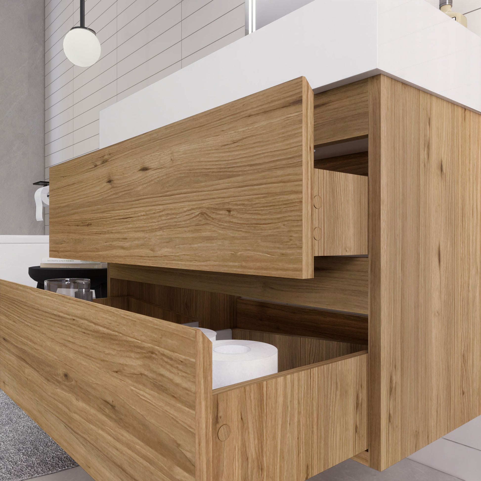 • Integrated European soft-closing hardware