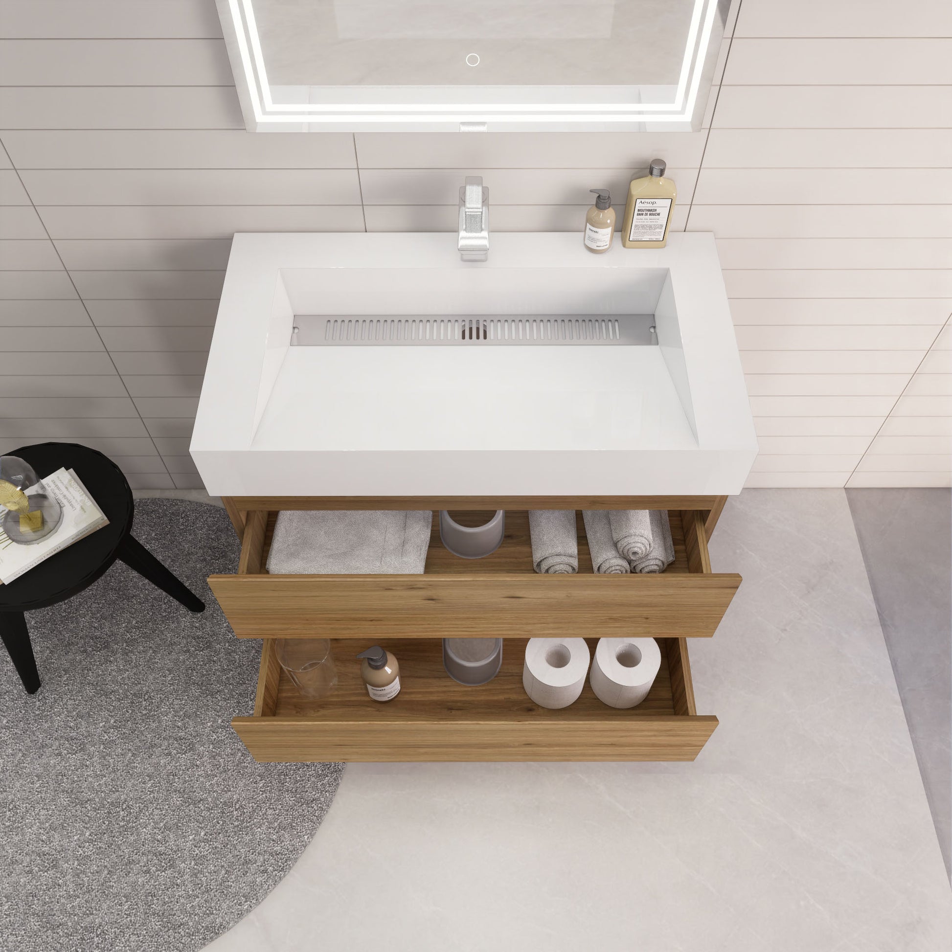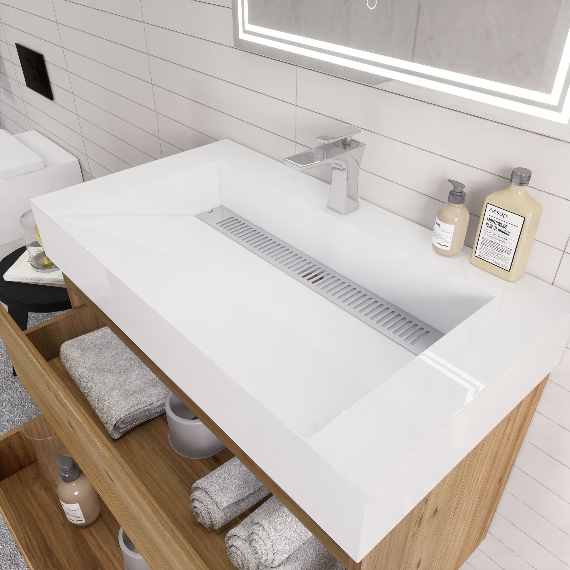 • Reinforced acrylic sink top