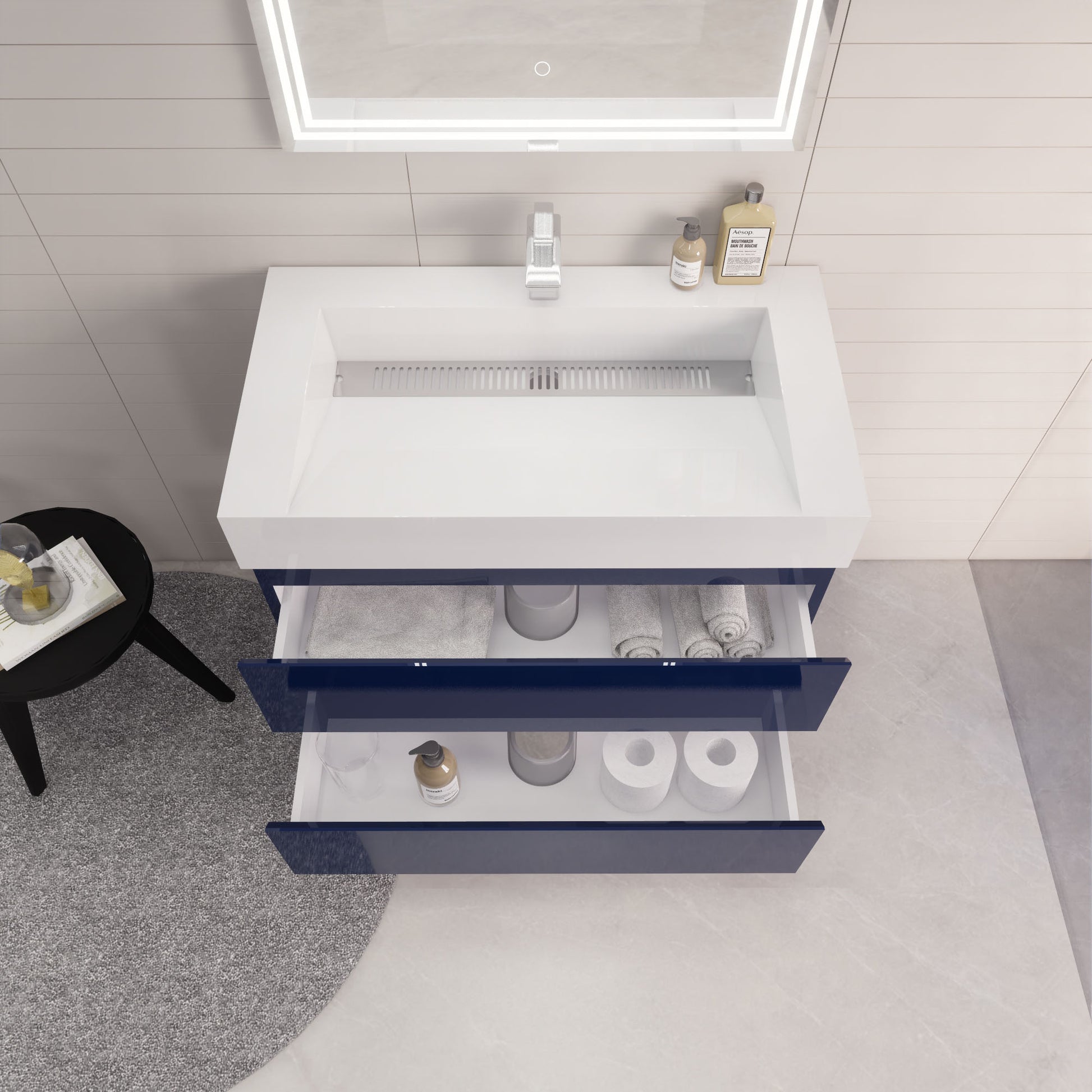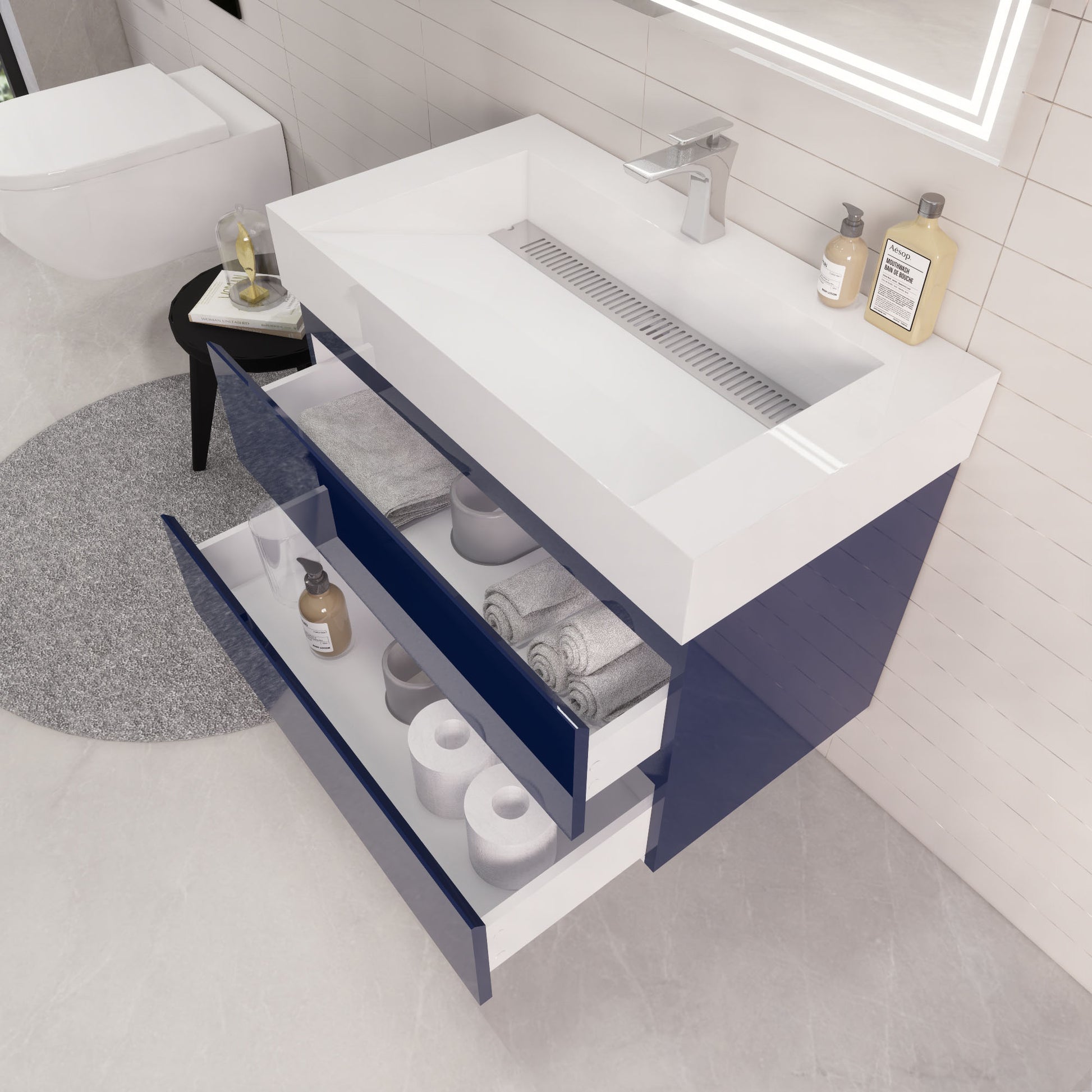 Monterey 36" Night Blue Wall Mounted Vanity with Reinforced Acrylic Sink