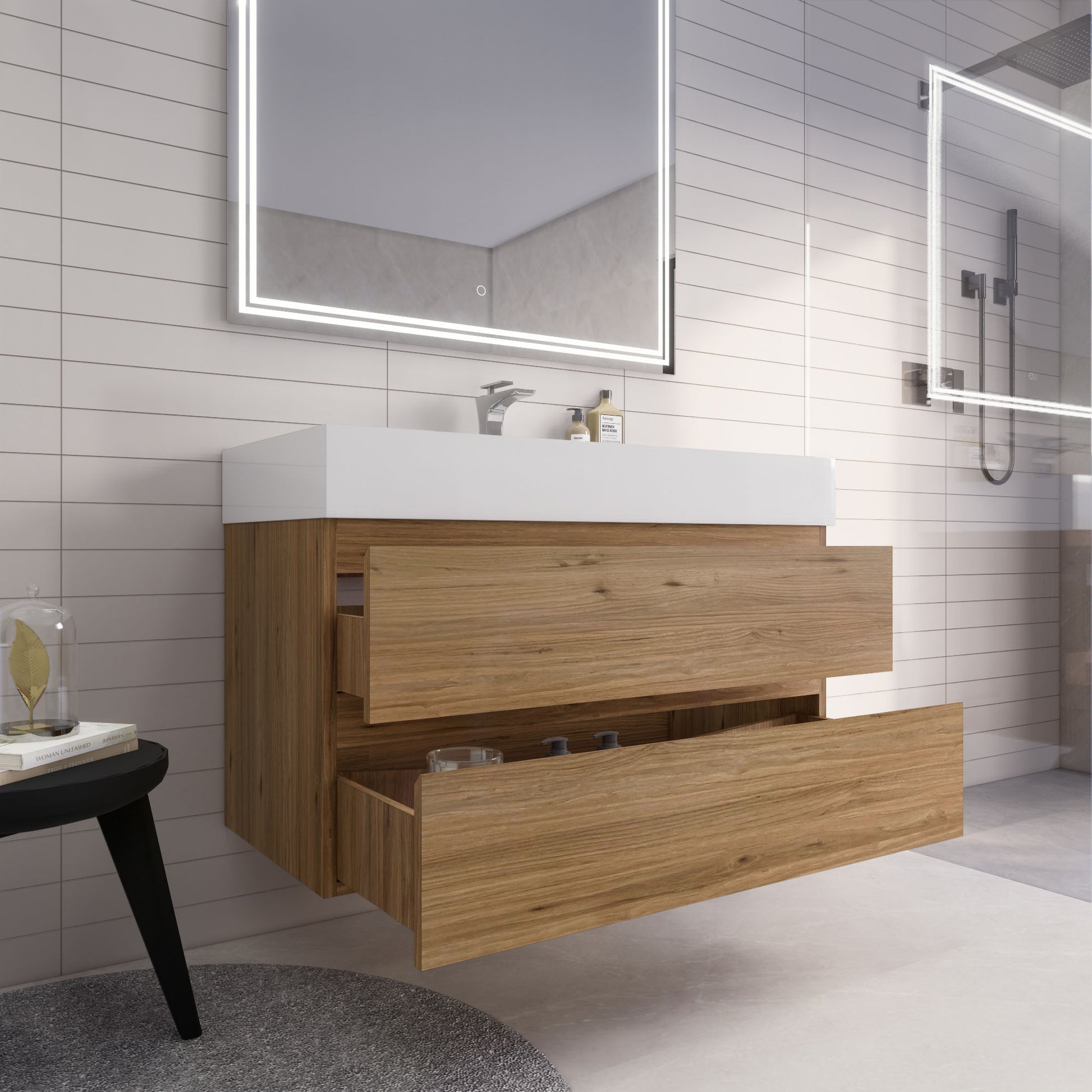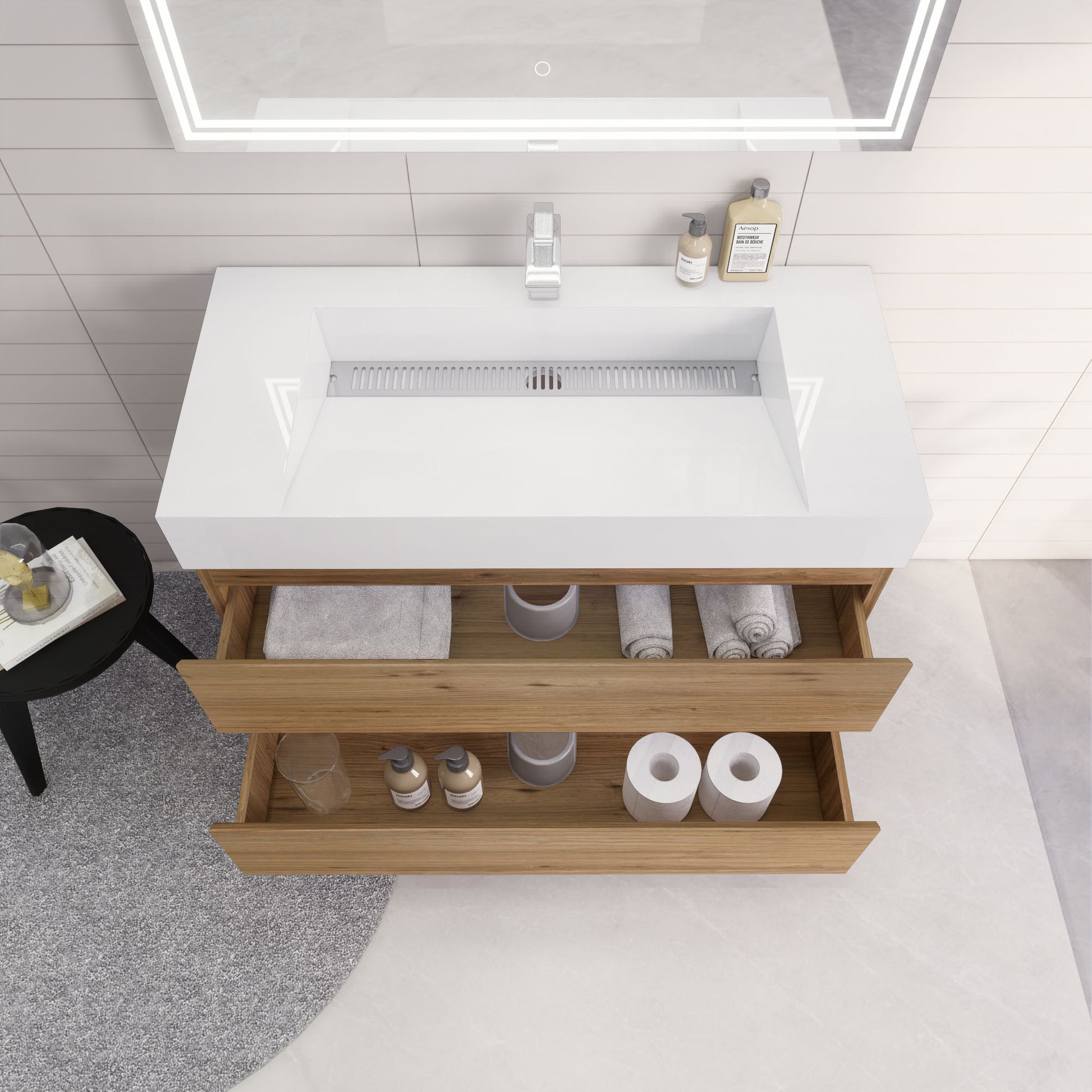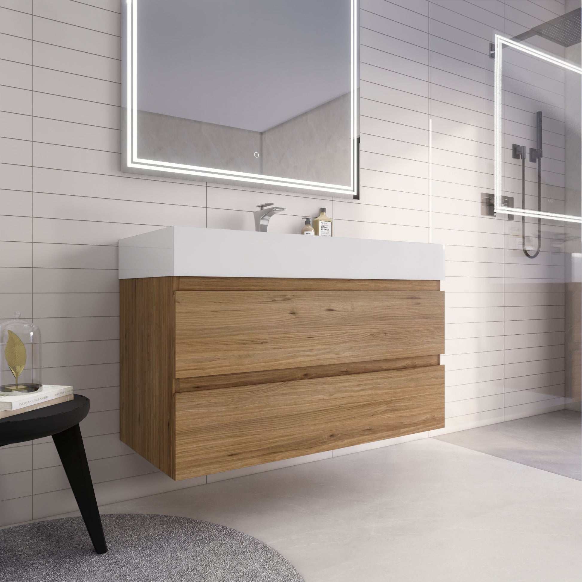 Monterey 42" Natural Oak Wall Mounted Vanity with Reinforced Acrylic Sink
