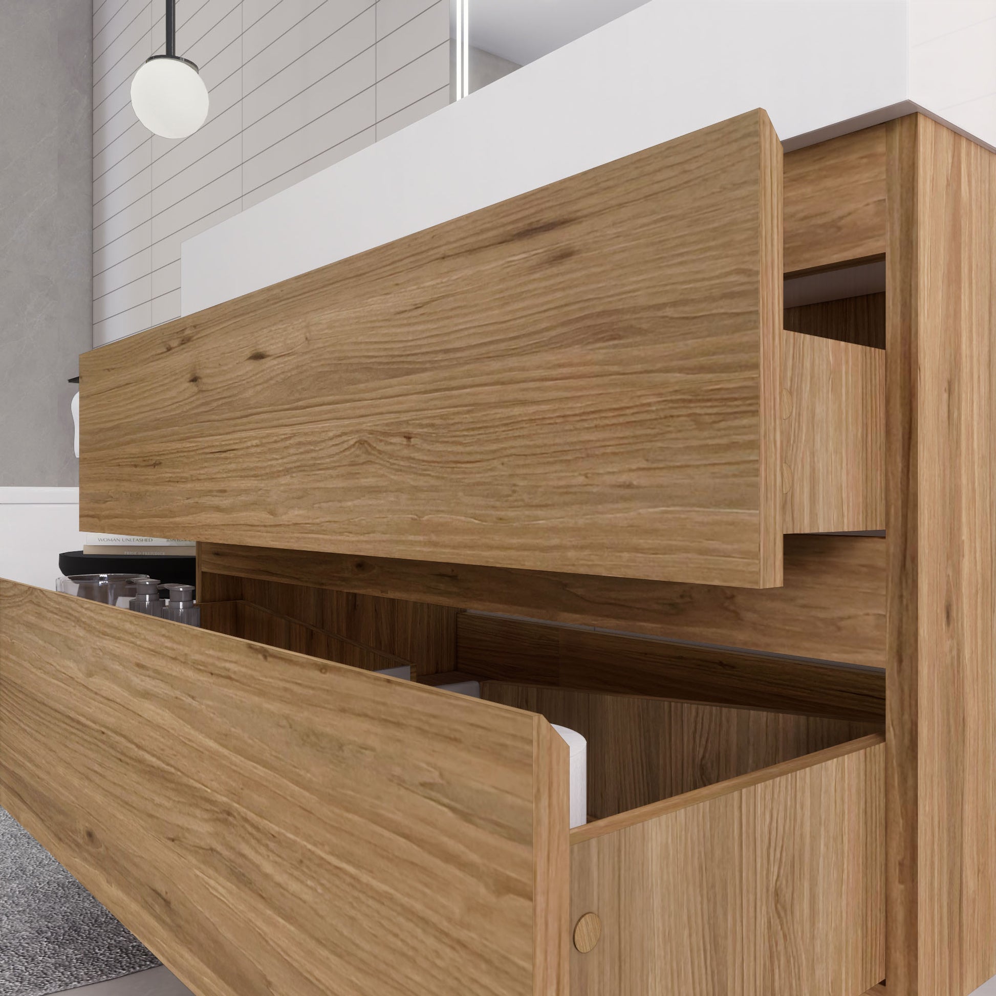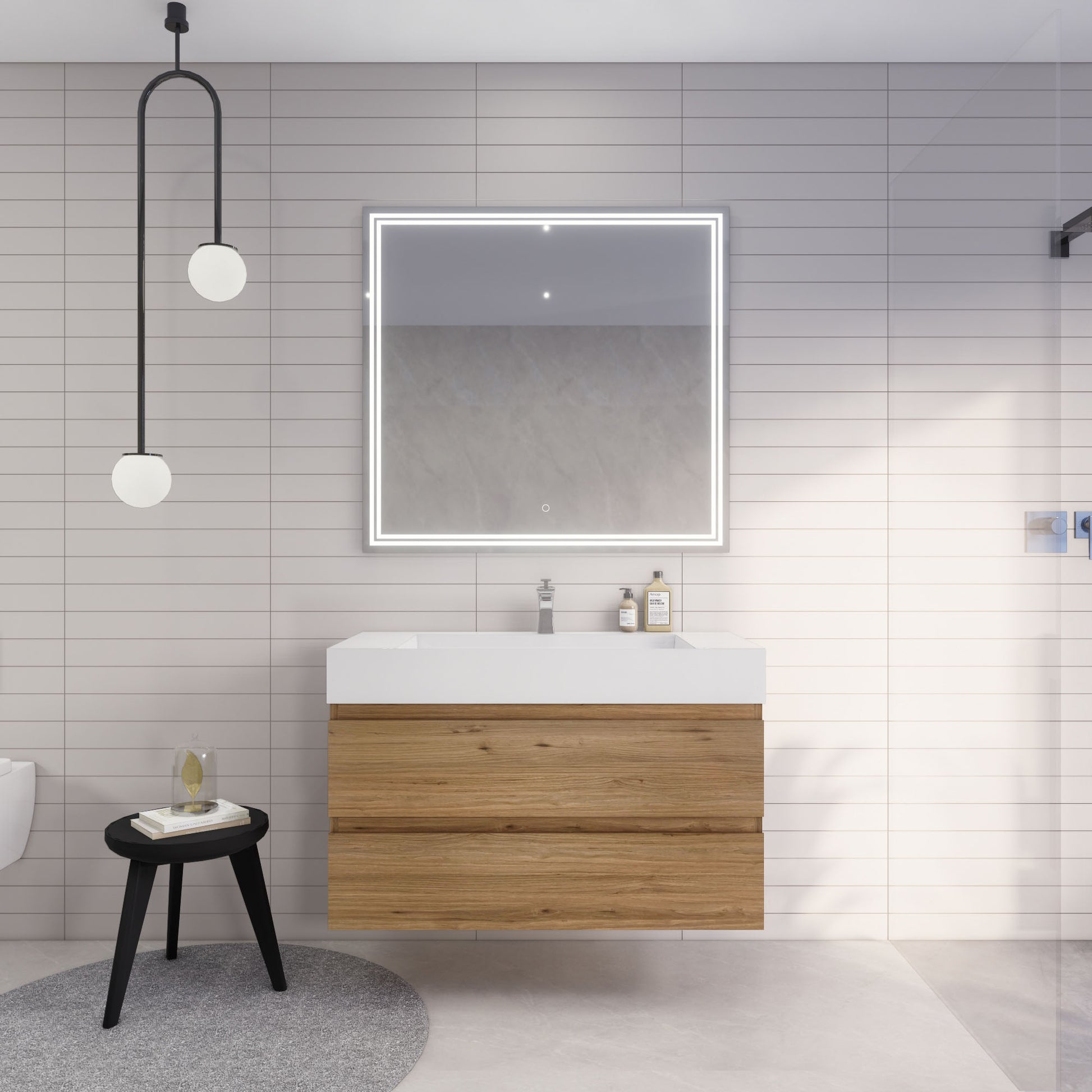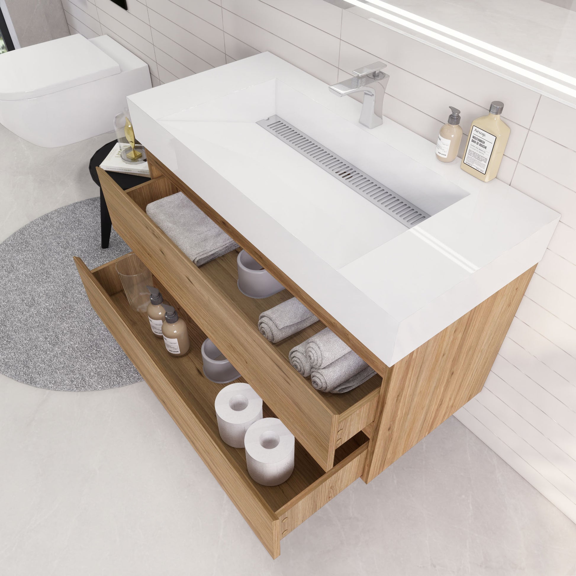 Monterey 42" Natural Oak Wall Mounted Vanity with Reinforced Acrylic Sink