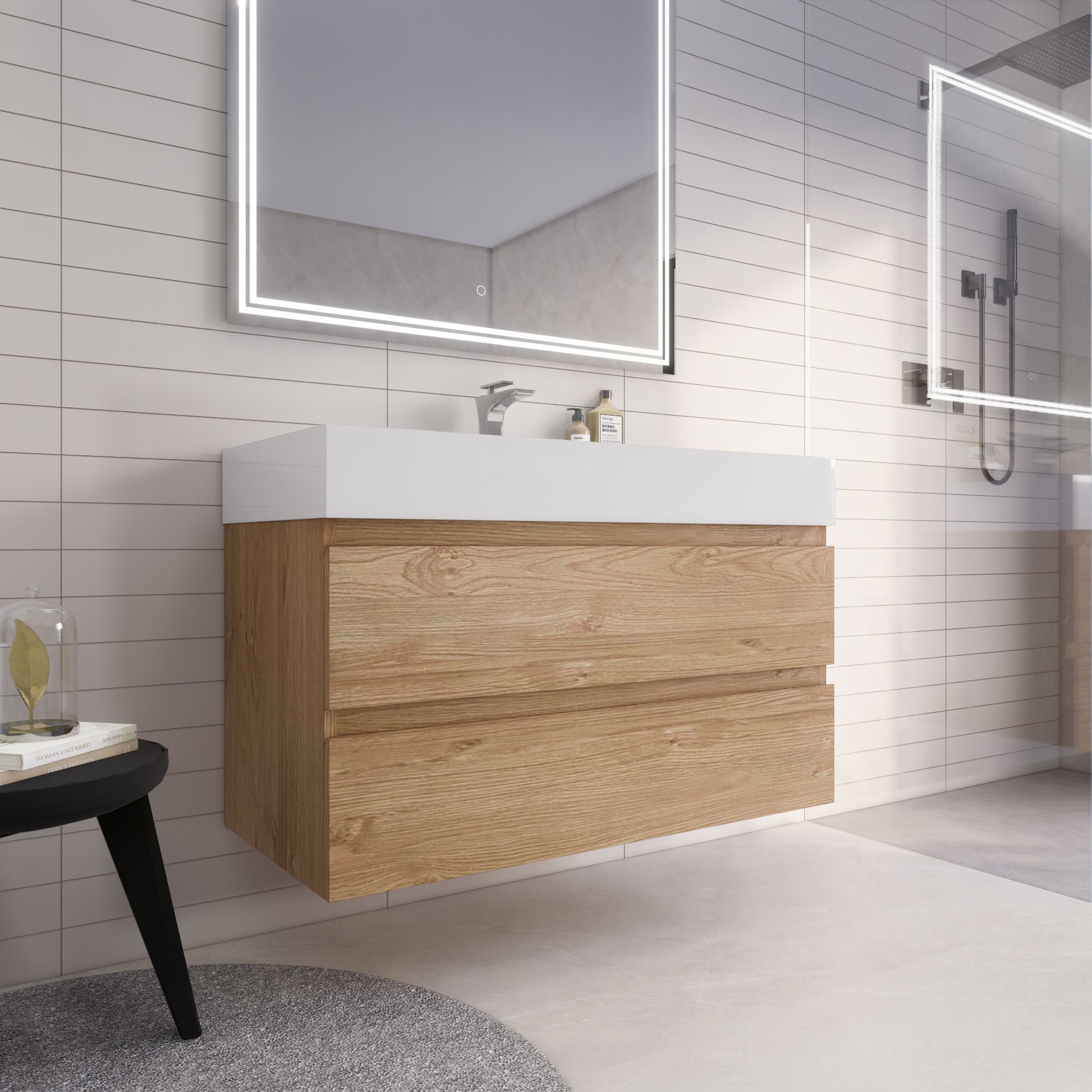Monterey 42" New England Oak Wall Mounted Vanity with Reinforced Acrylic Sink