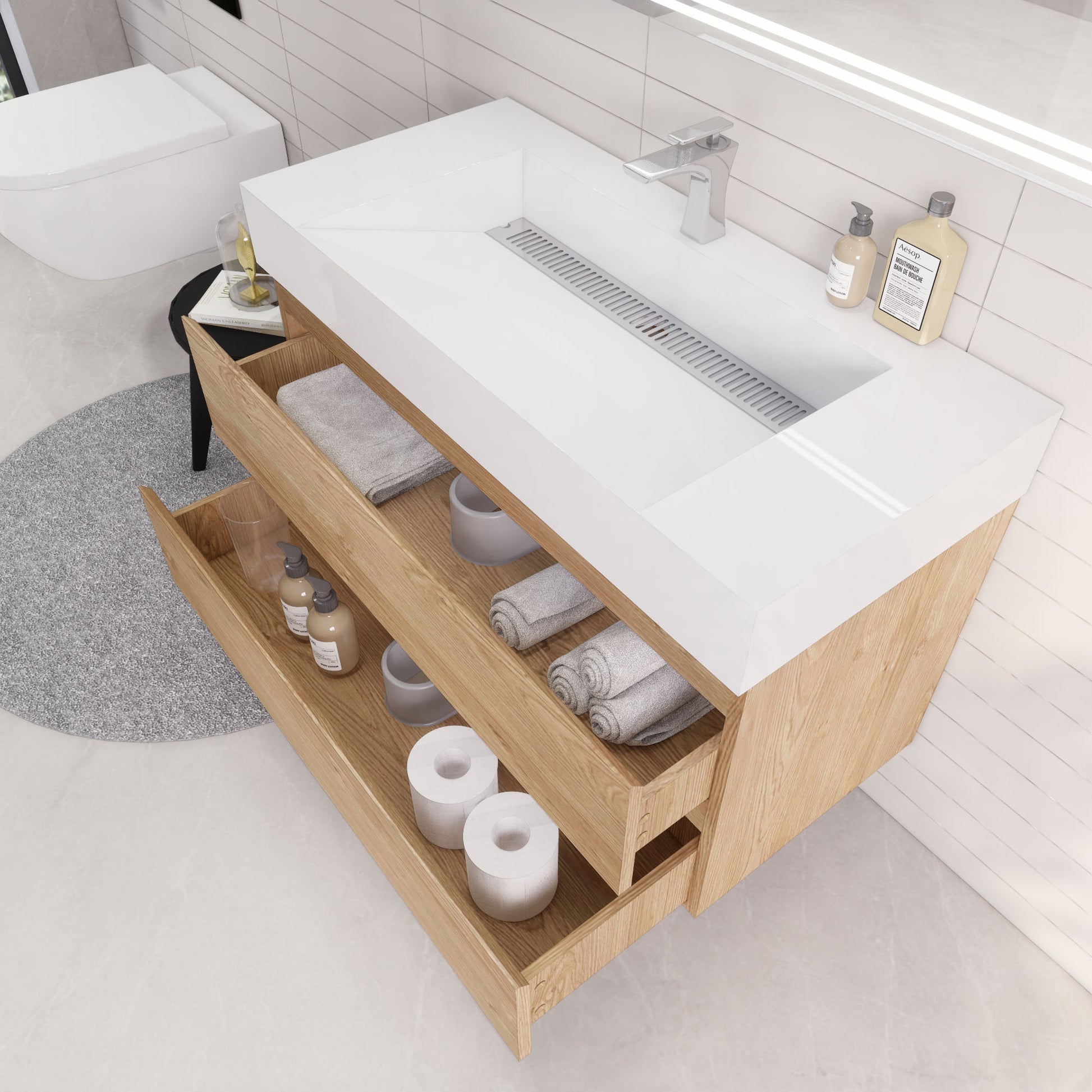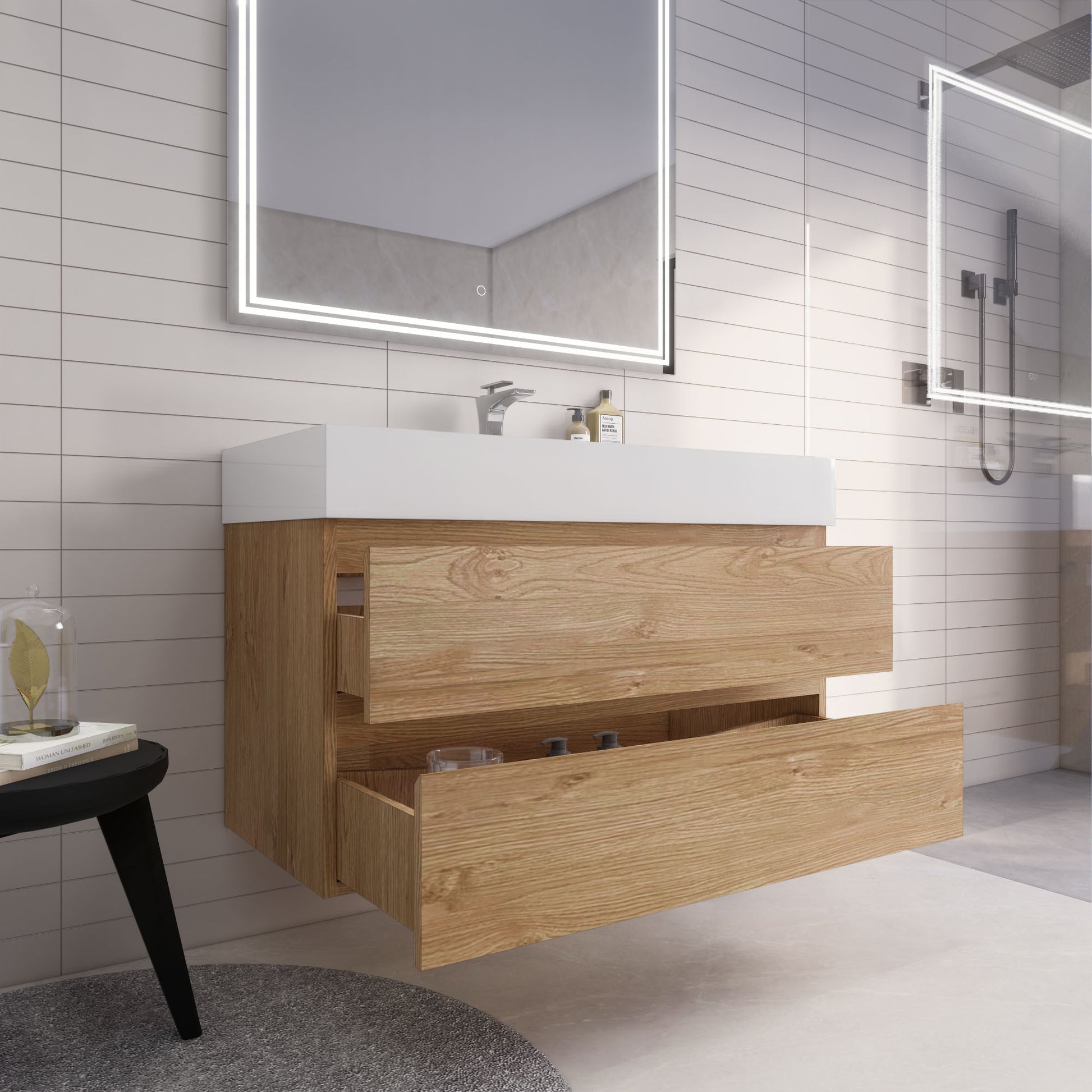• Integrated European soft-closing hardware