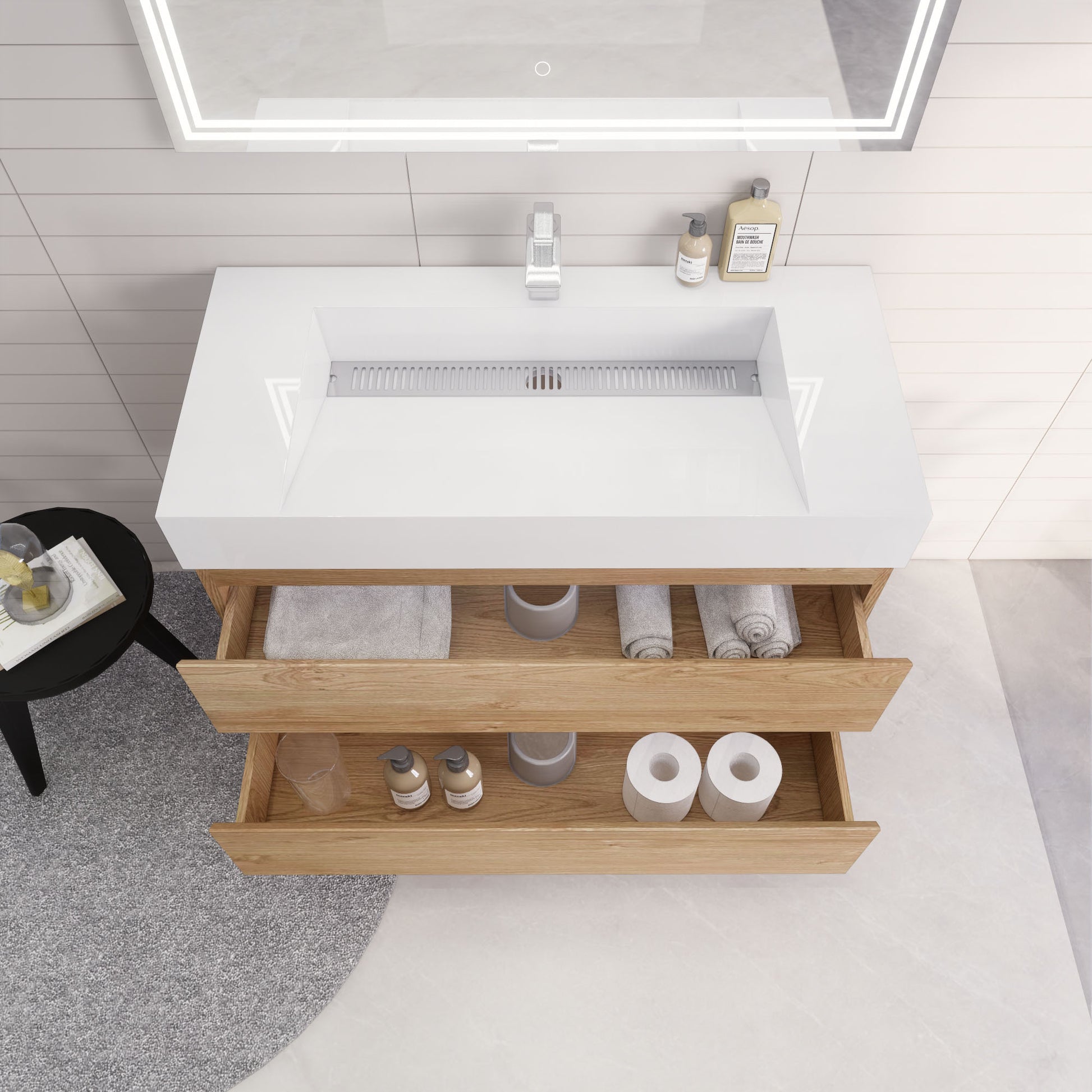 • Reinforced acrylic sink top