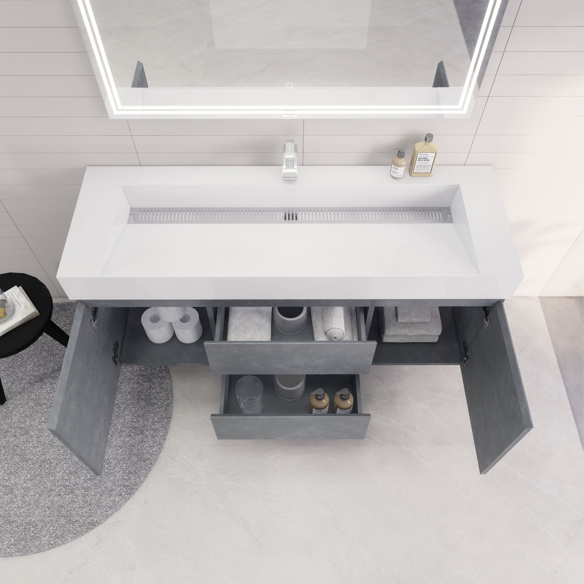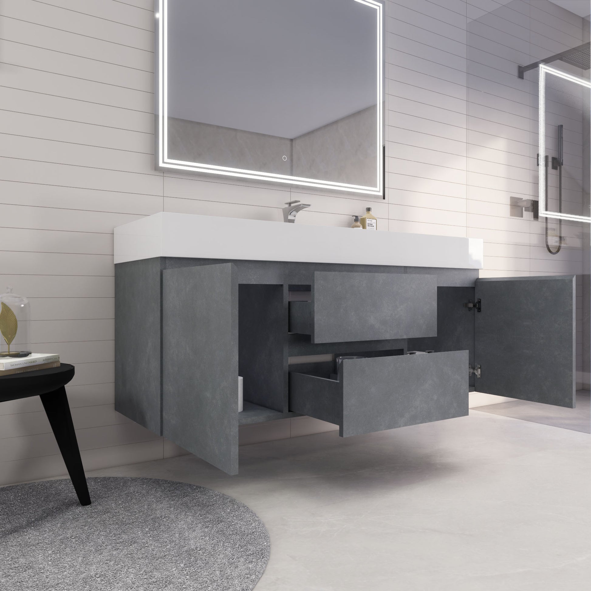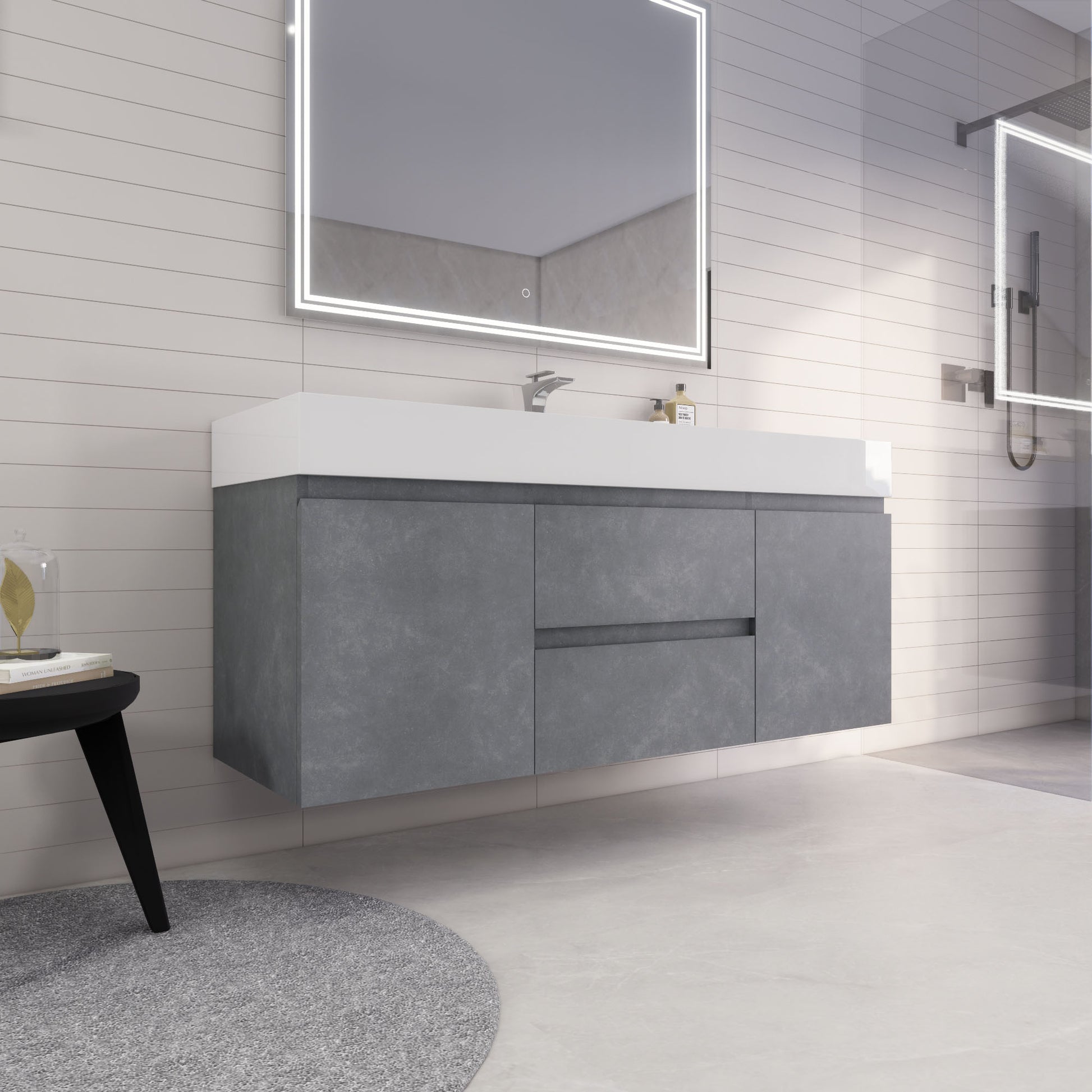 Monterey 60" Cement Gray Wall Mounted Vanity with Reinforced Acrylic Sink