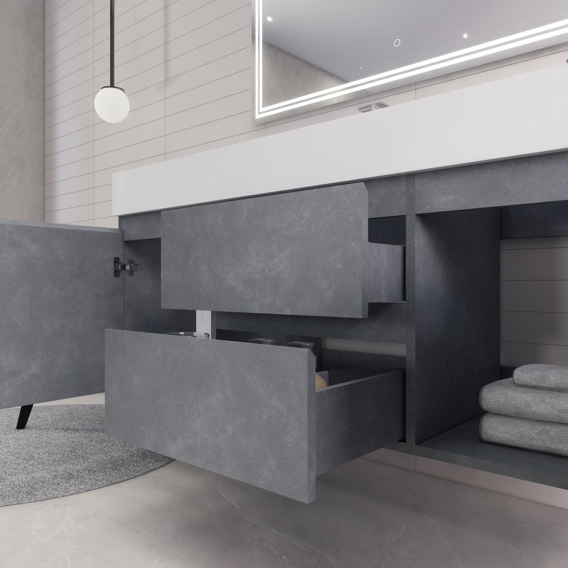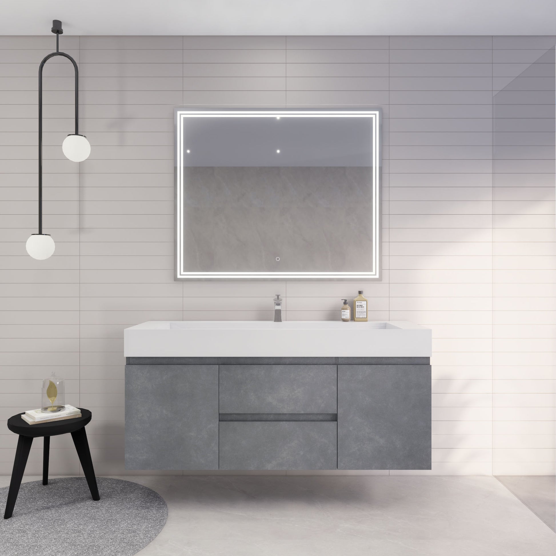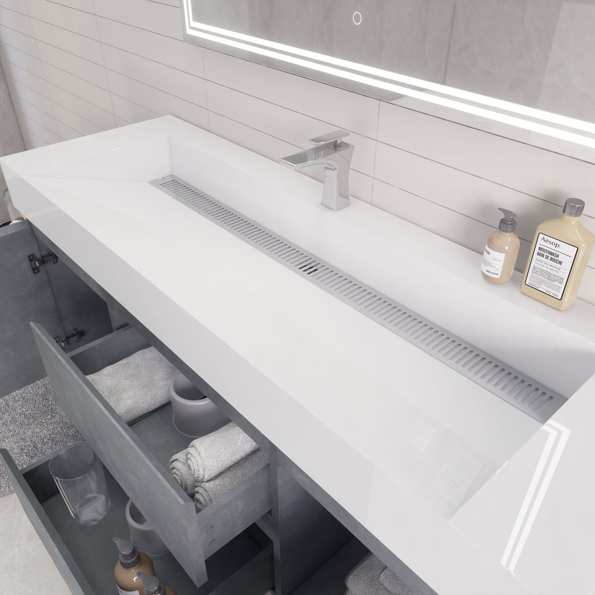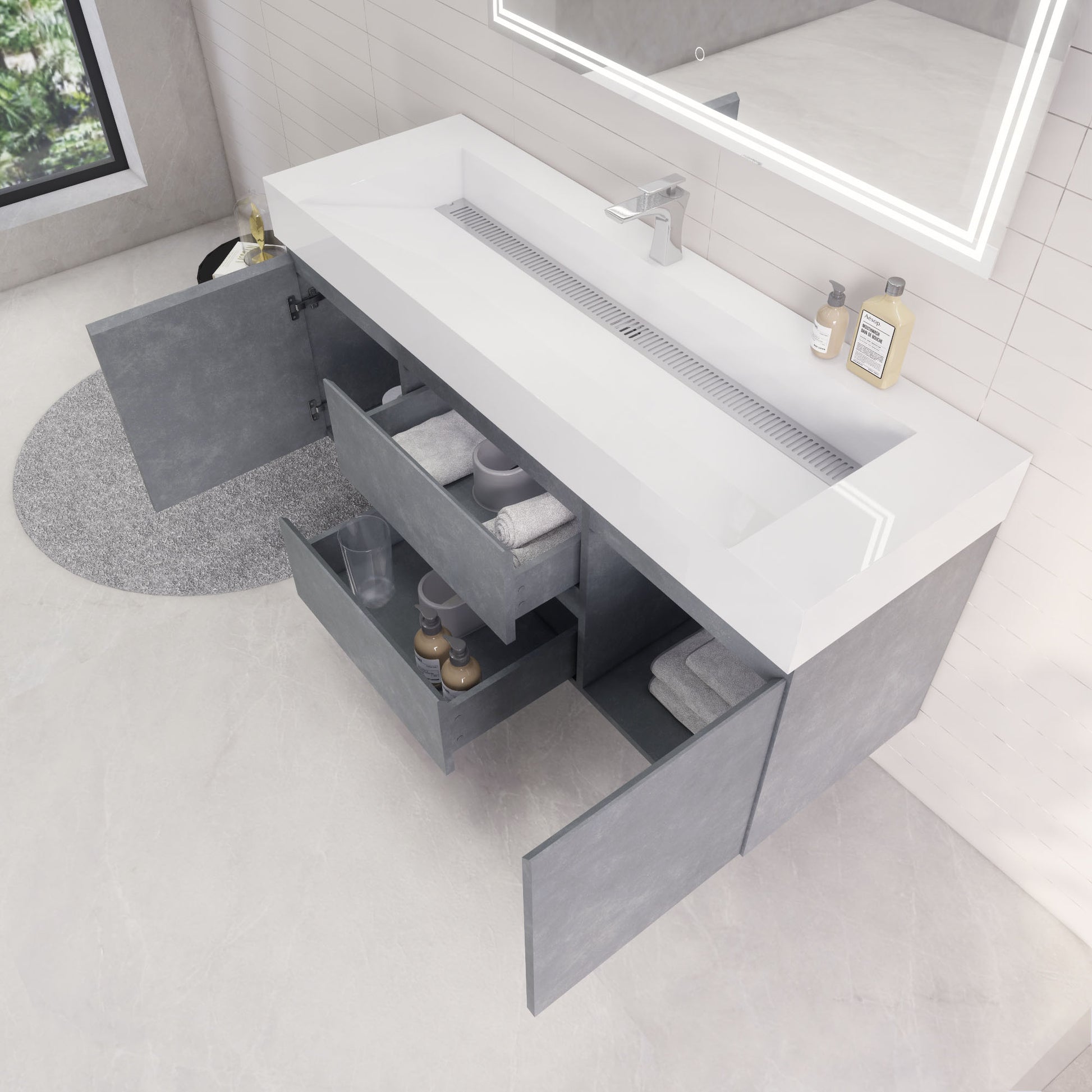 Monterey 60" Cement Gray Wall Mounted Vanity with Reinforced Acrylic Sink