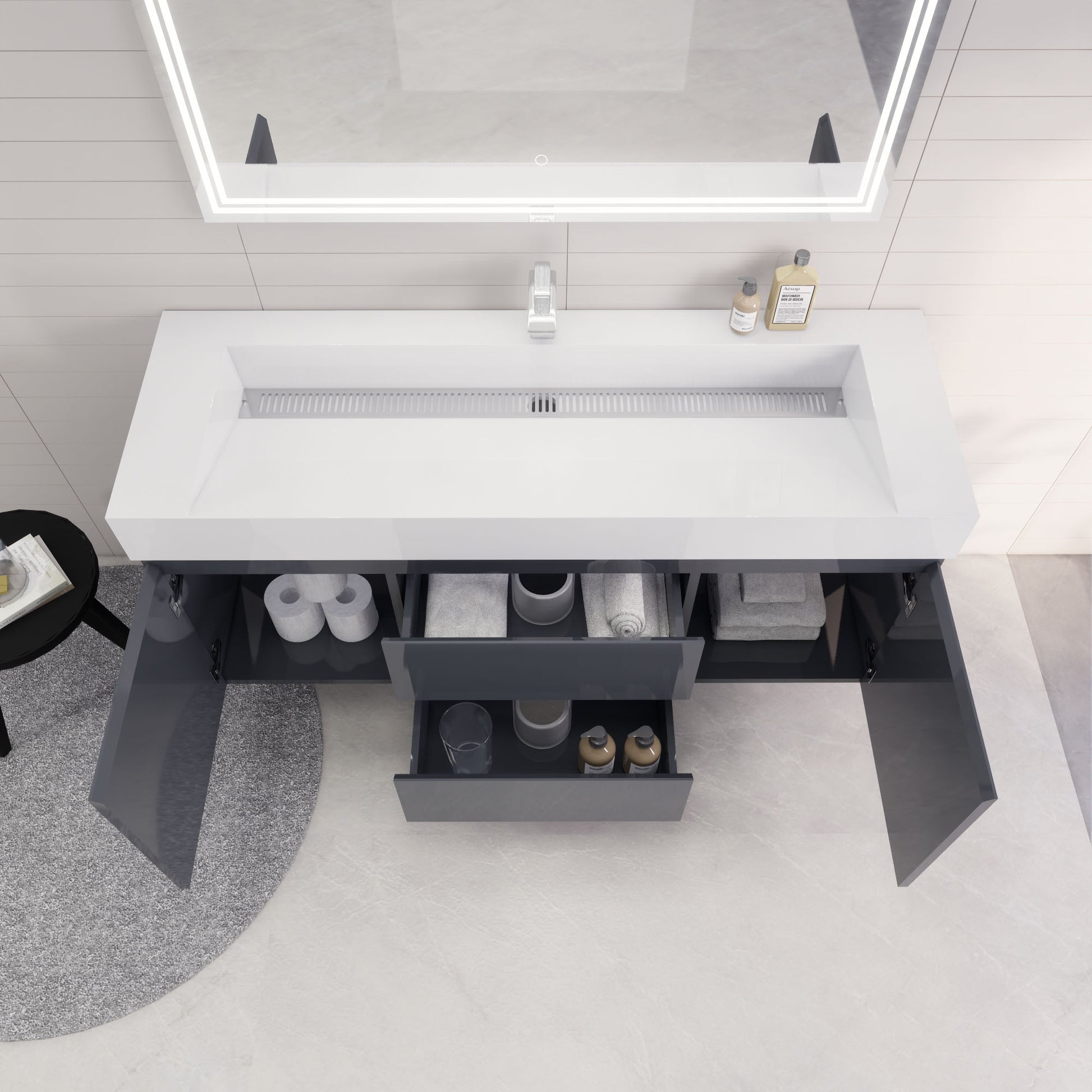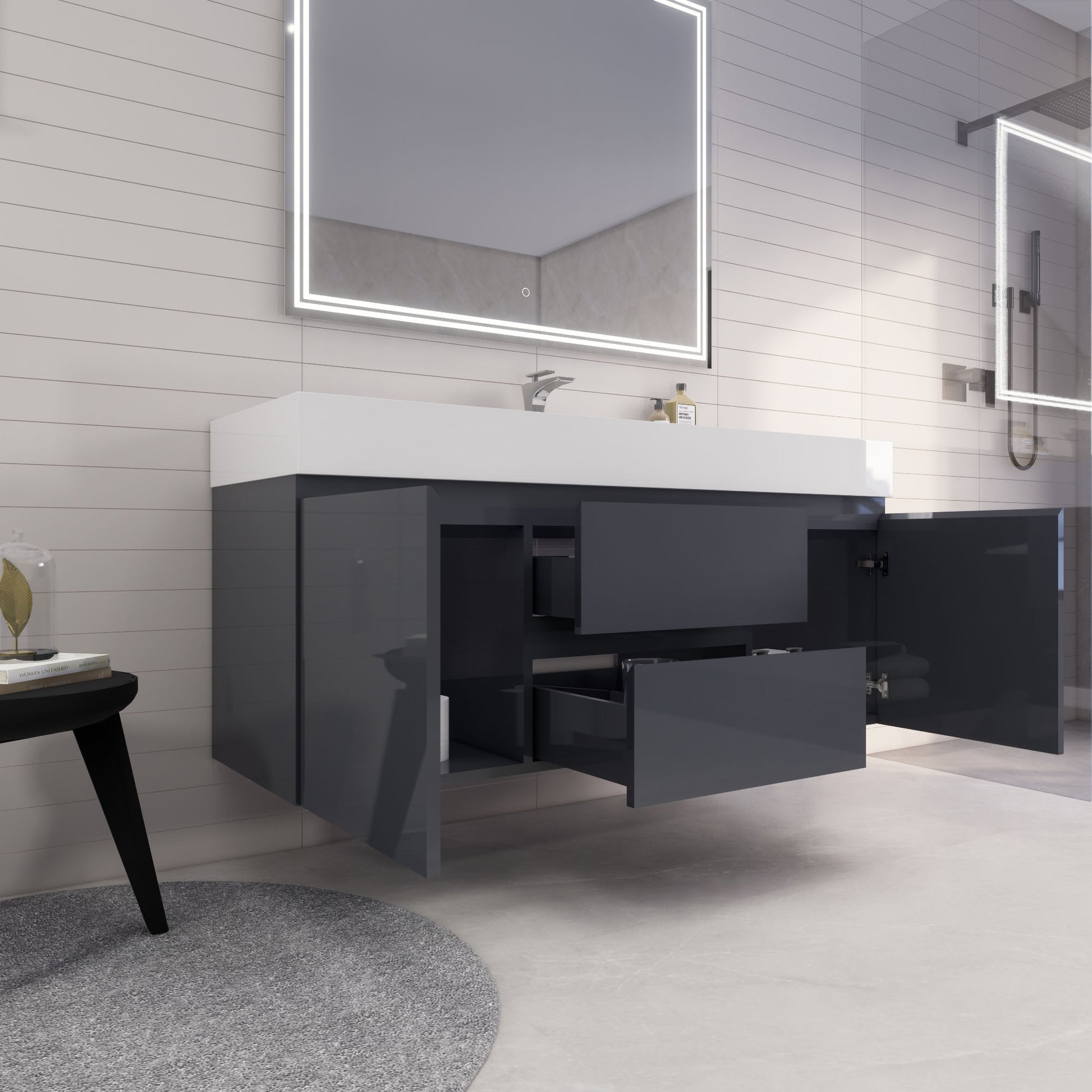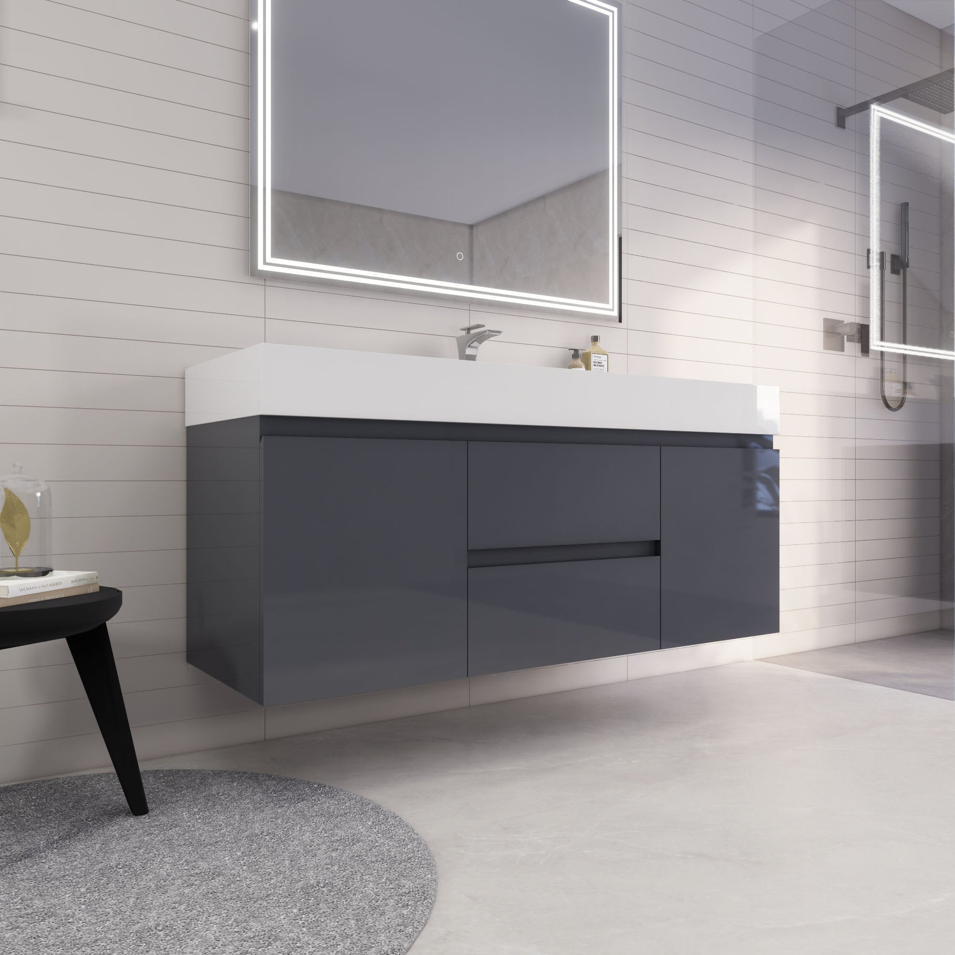 Monterey 60" Glossy Gray Wall Mounted Vanity with Reinforced Acrylic Sink